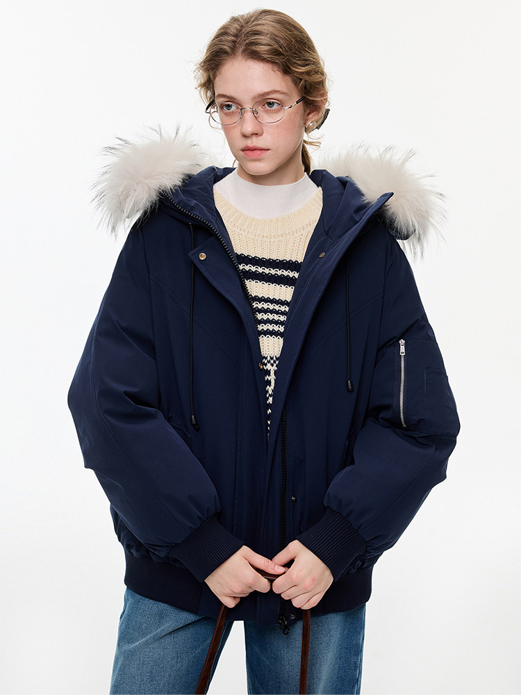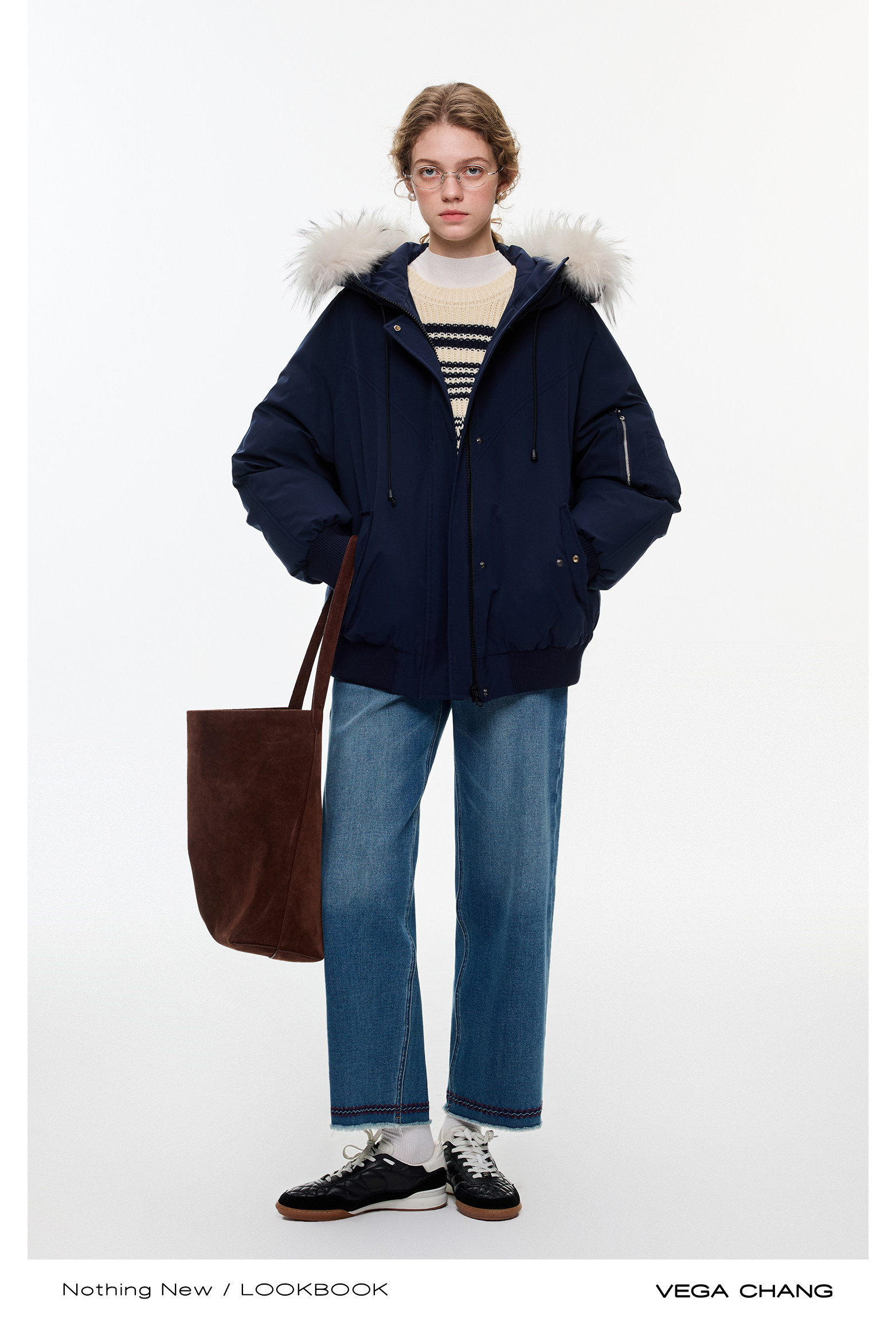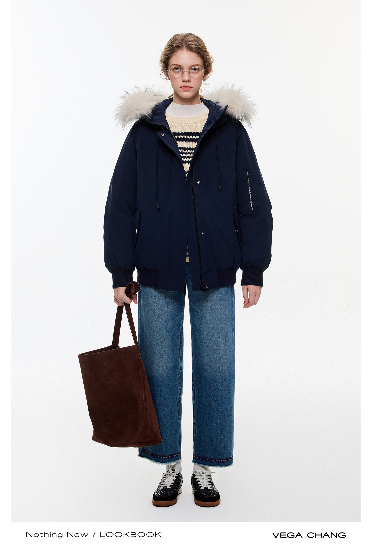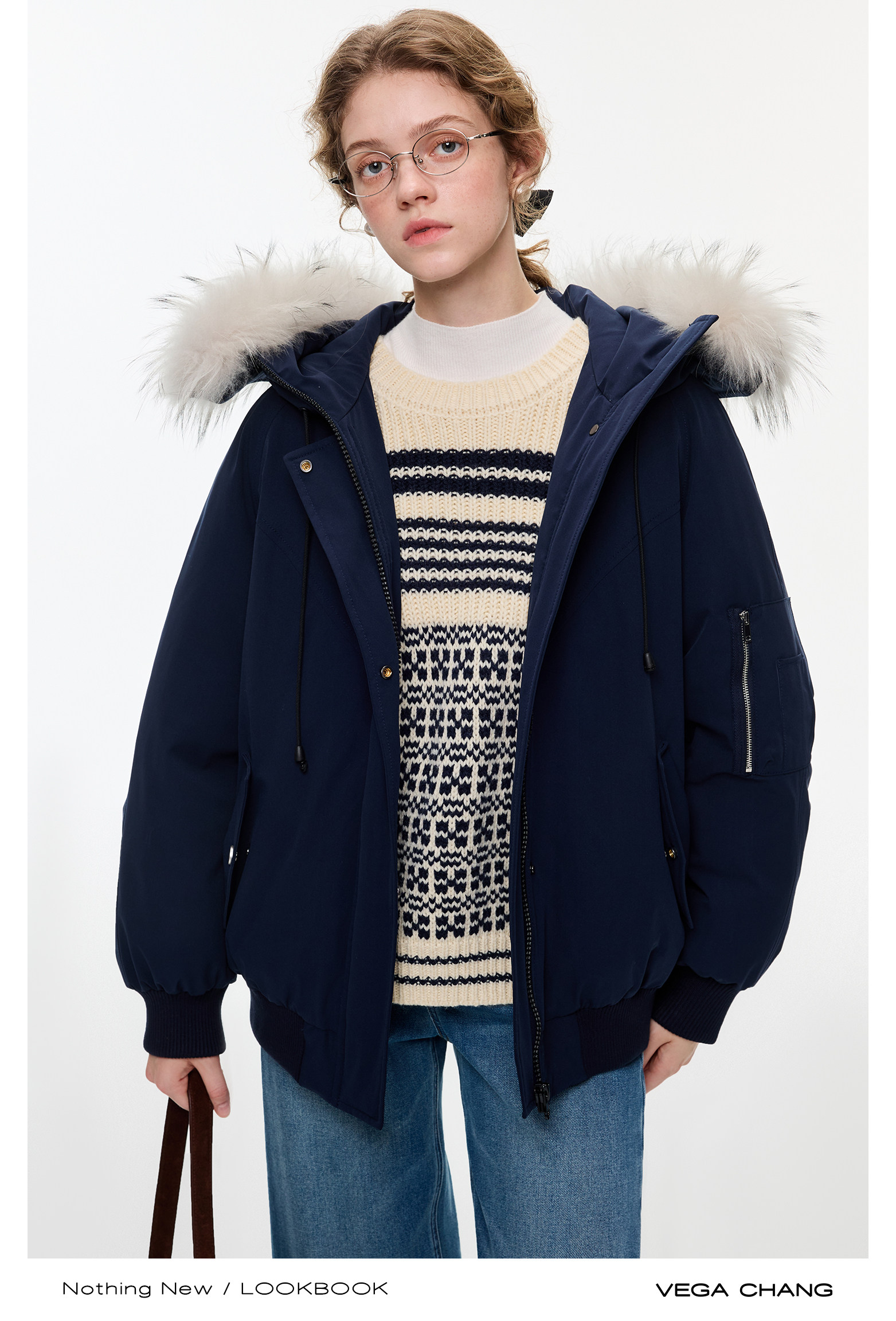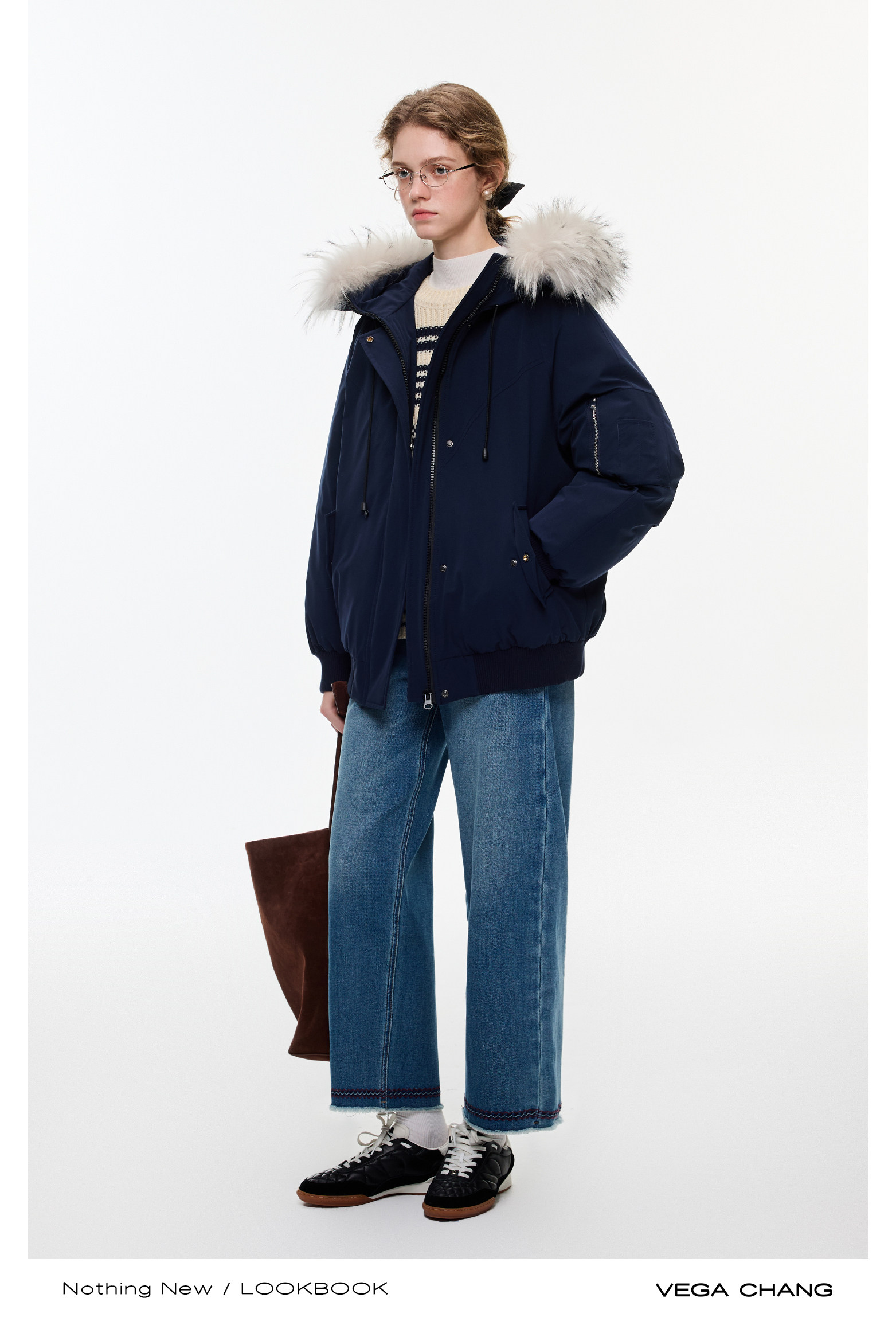 VEGA CHANG removable raccoon fur collar down jacket women's winter warm jacket