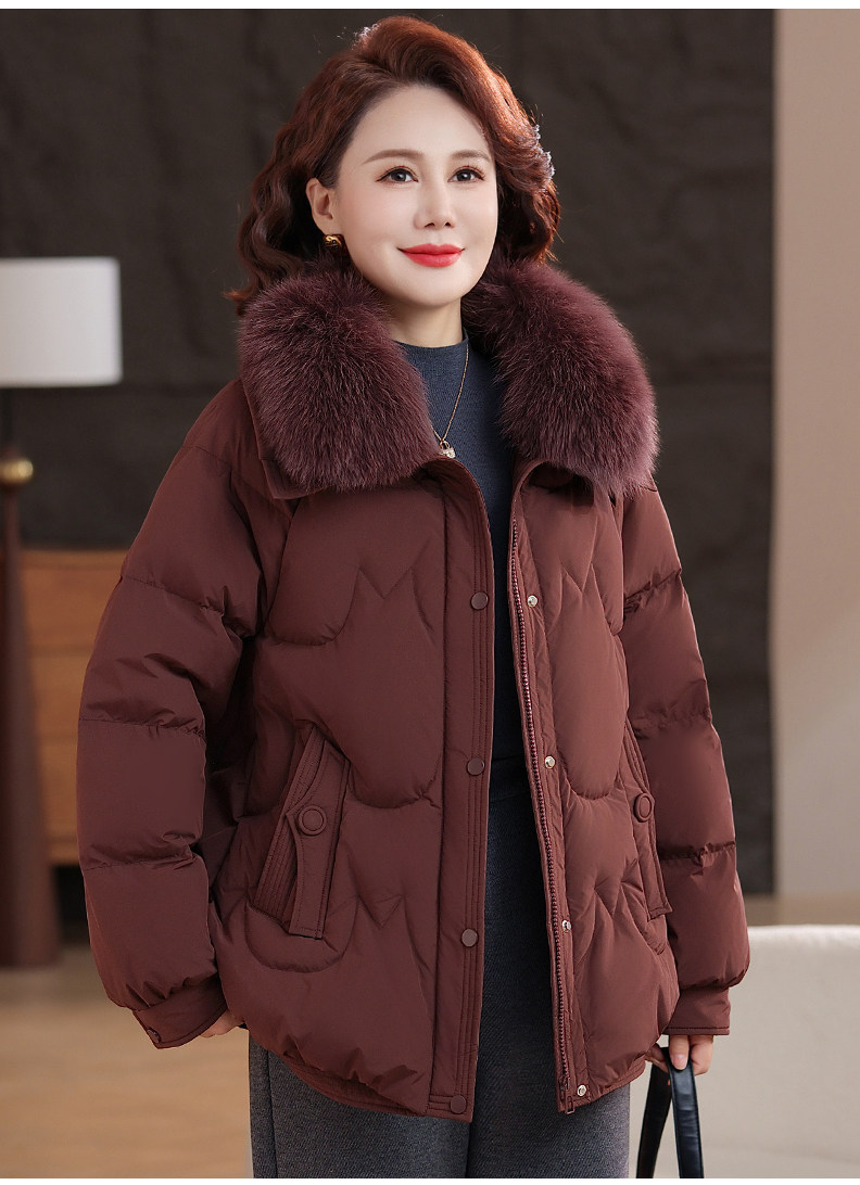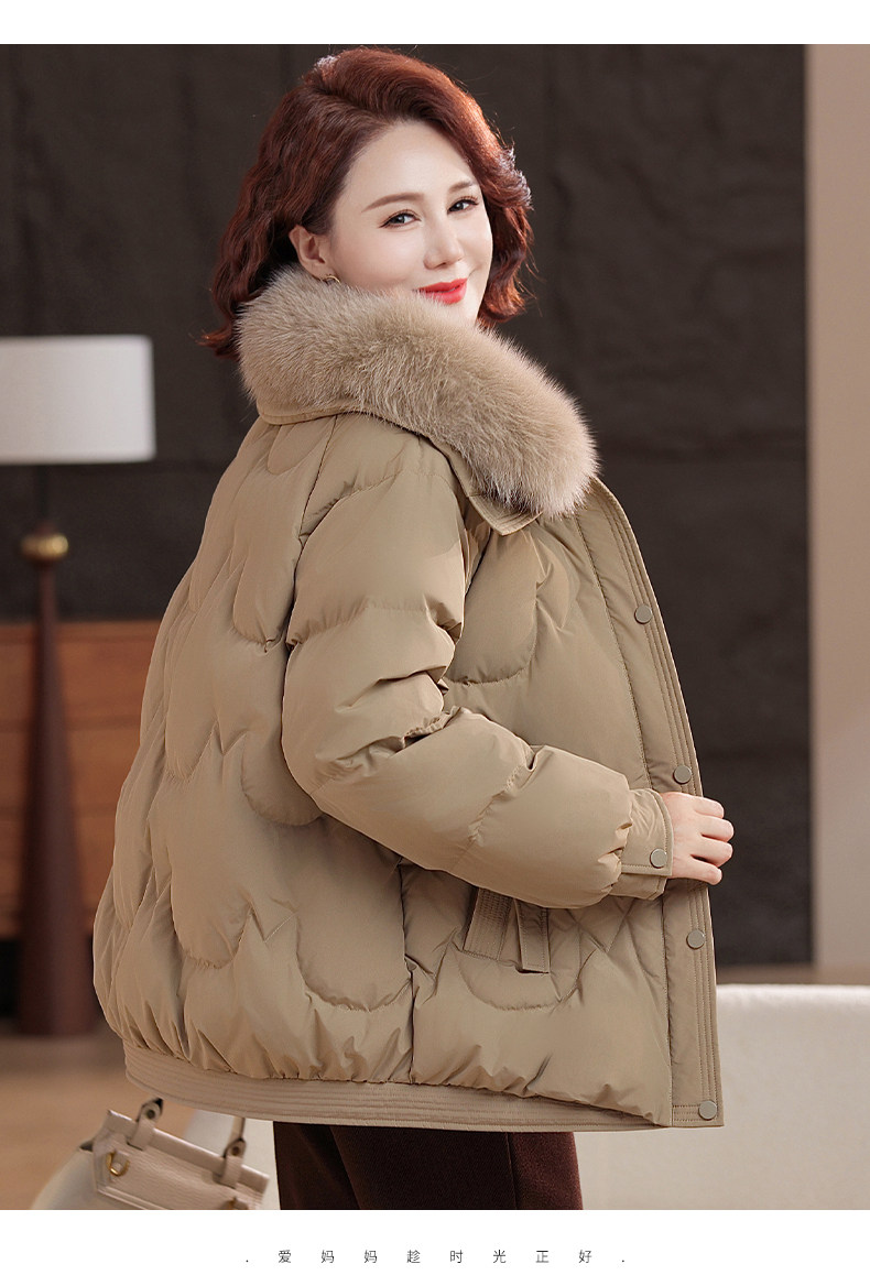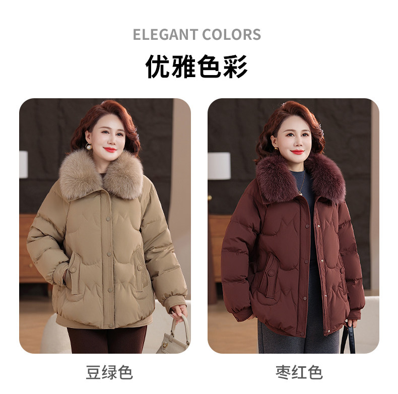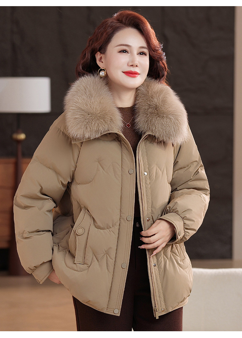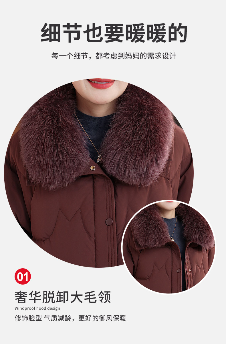Woodpecker down Jacket for Mom Winter Clothing Fox Fur Collar Warm Coat Middle-Aged and Elderly Women's Elegant Duck down Top N