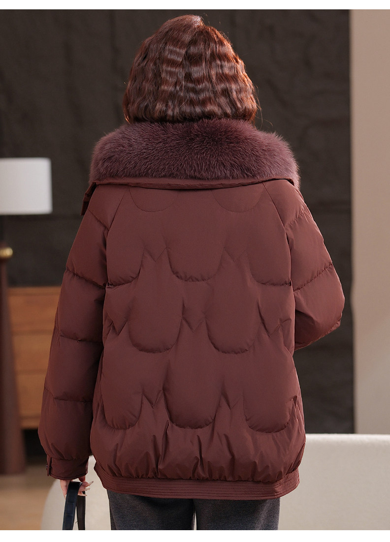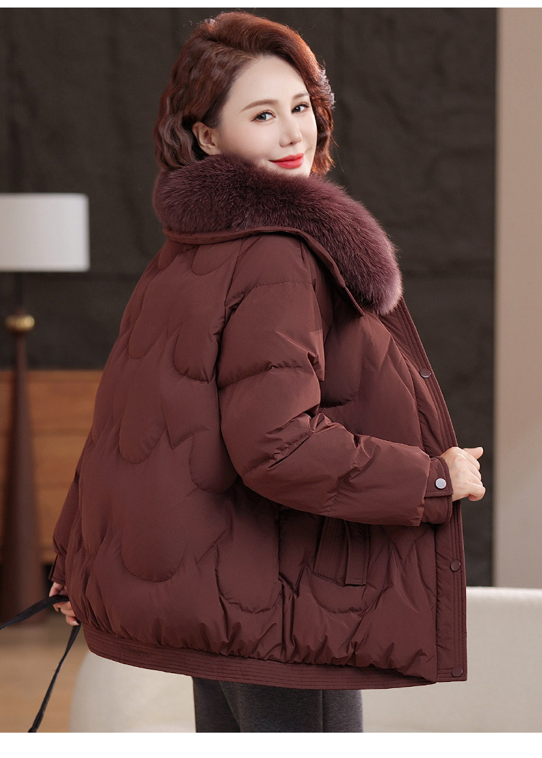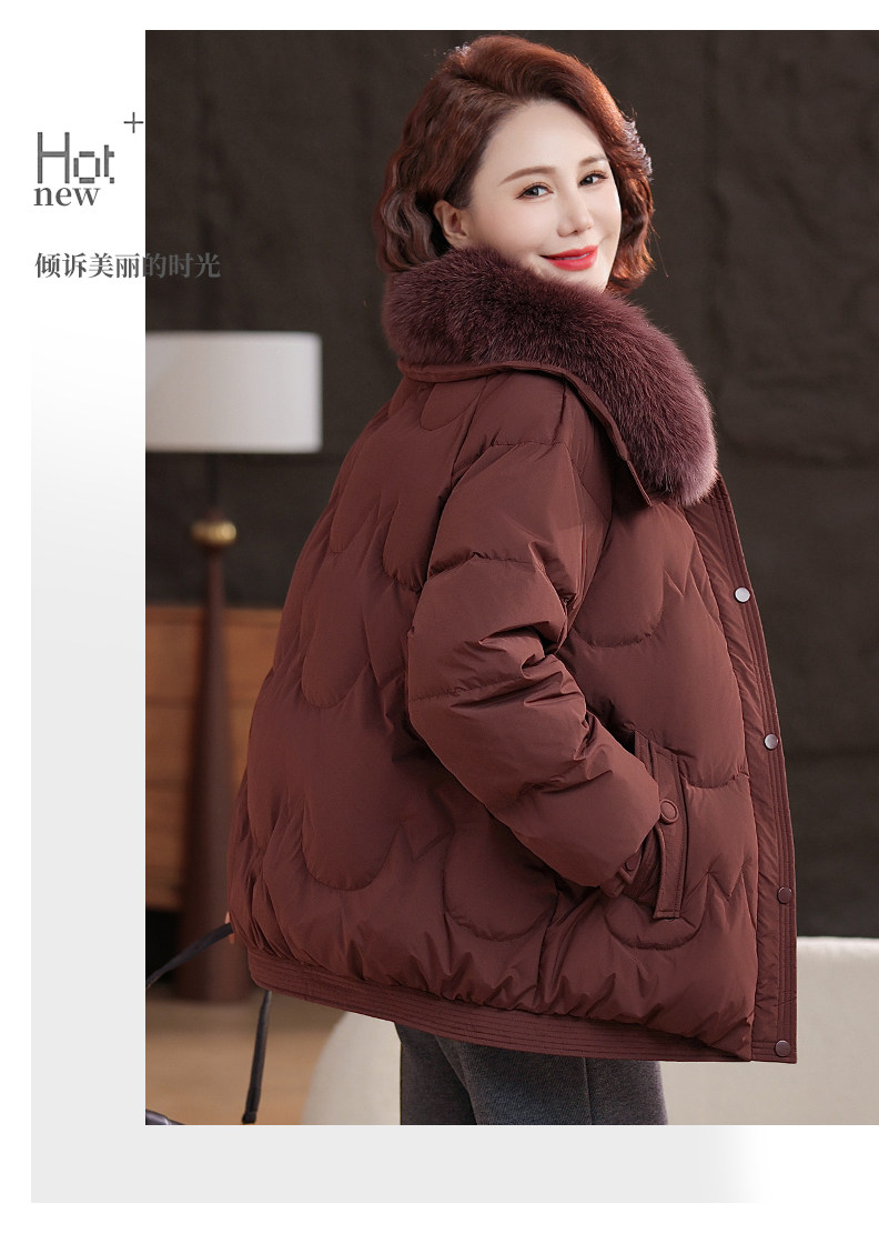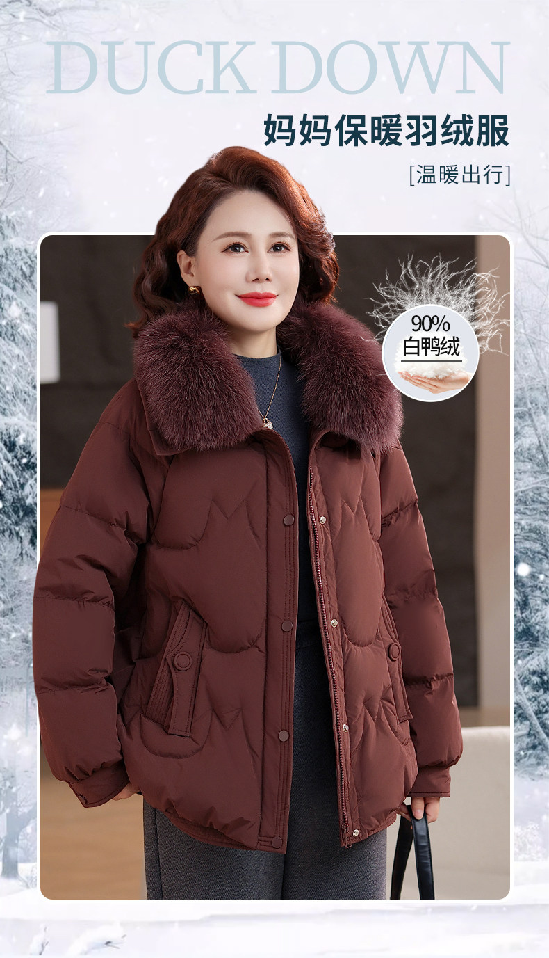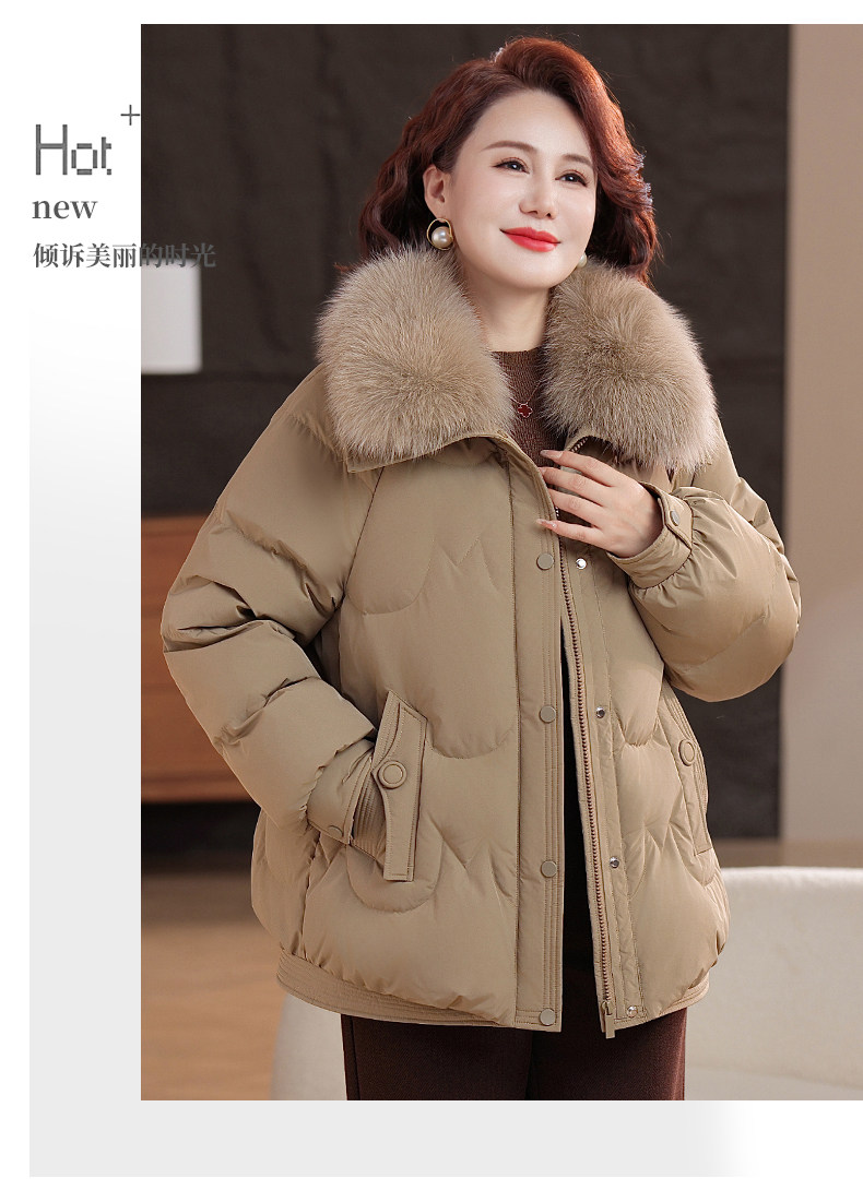 Woodpecker down Jacket for Mom Winter Clothing Fox Fur Collar Warm Coat Middle-Aged and Elderly Women's Elegant Duck down Top N