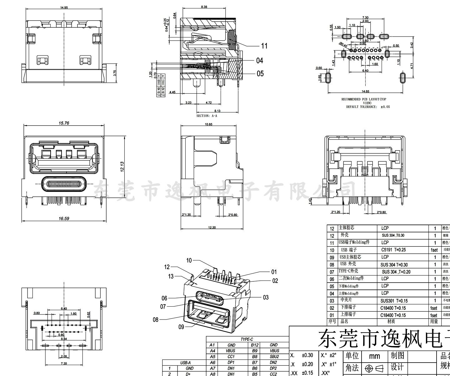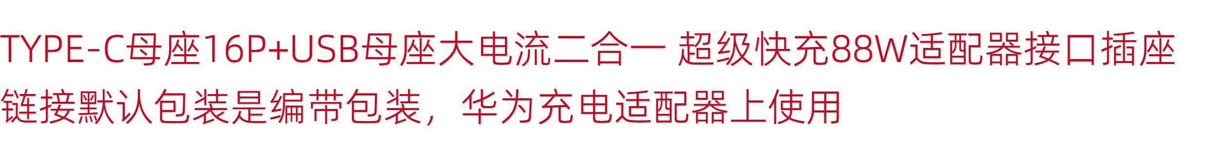 TYPE-C母座16P+USB母座大电流二合一 超级快充88W适配器接口插座