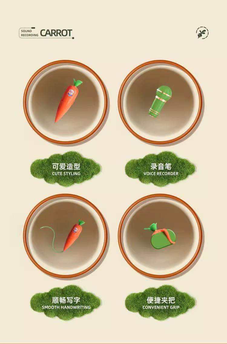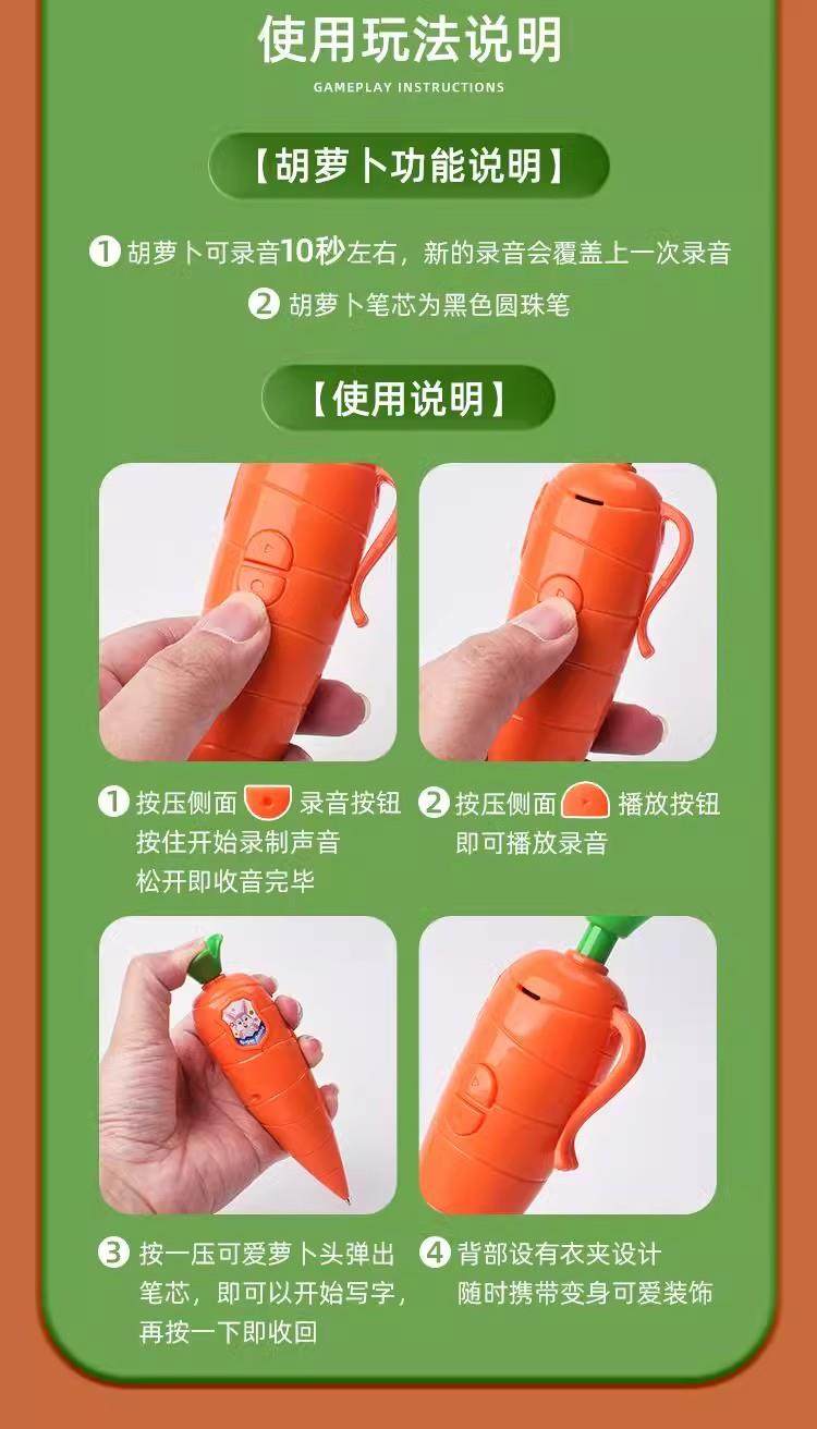 Descripción del estilo Grabador de zanahorias H78-RYB669 (puede grabar durante 60 segundos),2 bolígrafos para grabar zanahorias