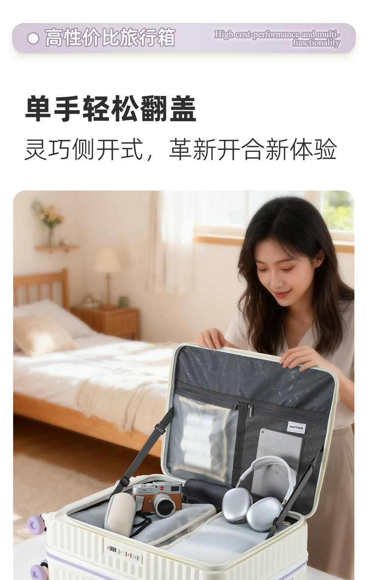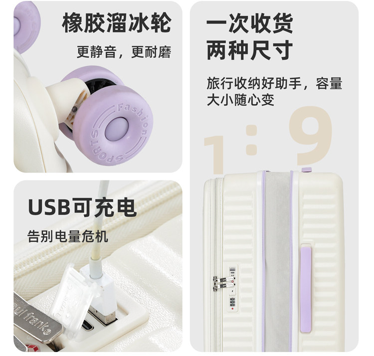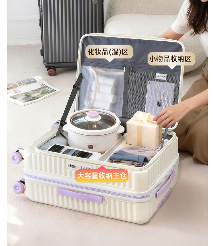 Чемодан с боковым открыванием, расширяемый, большой вместимости, многофункциональный, на колесиках, для мужчин и женщин, из поликарбоната, с кодовым замком, для путешествий, с универсальными колесами.