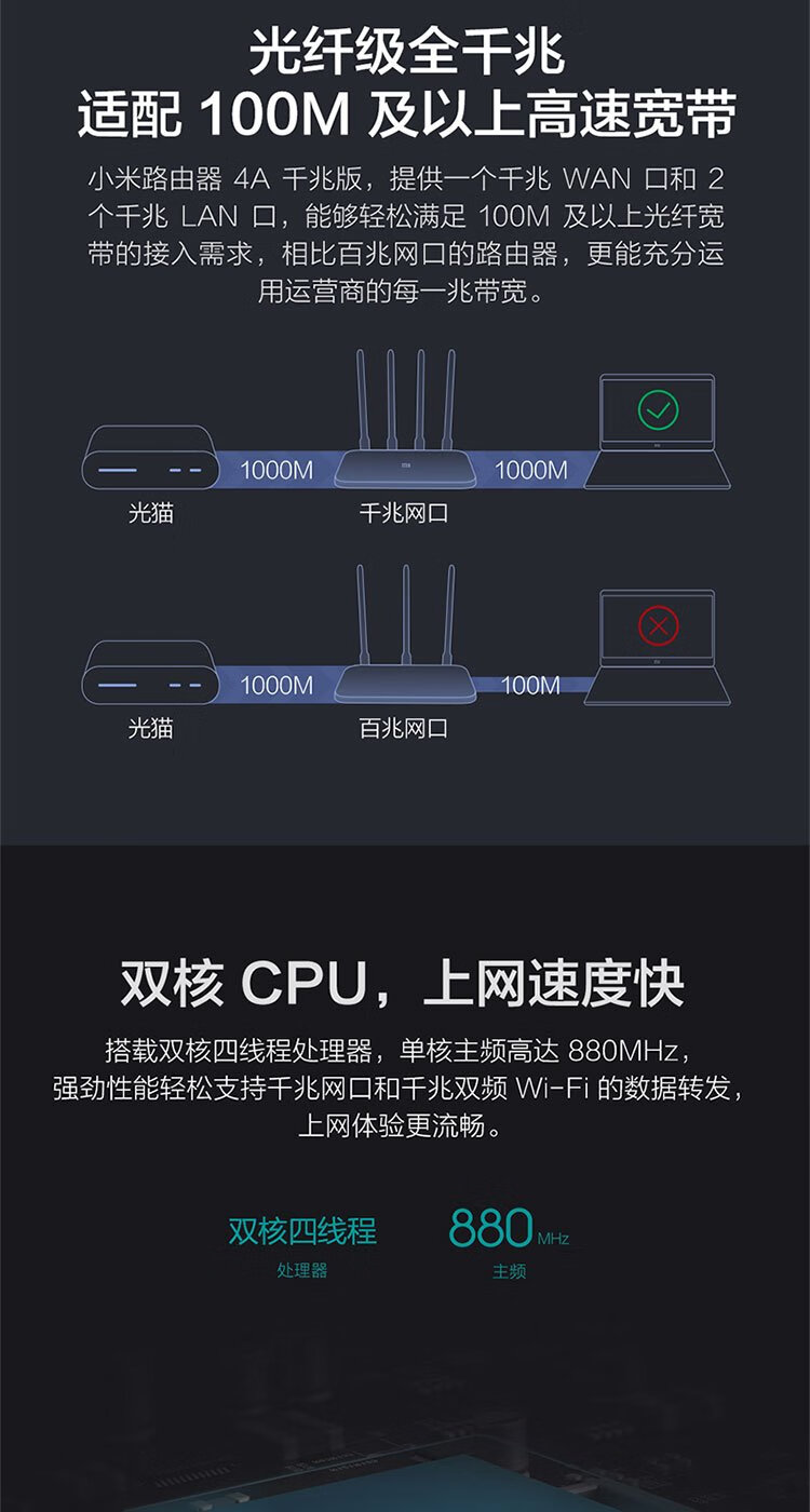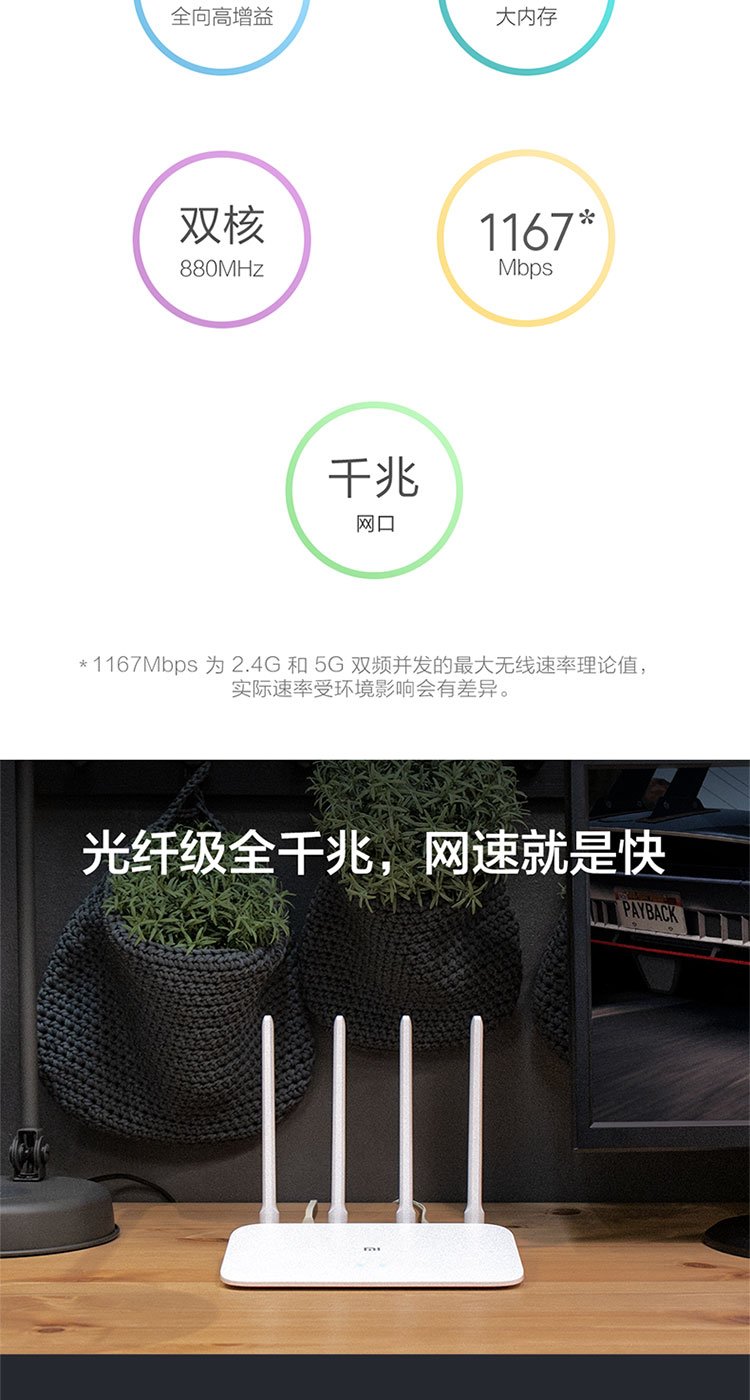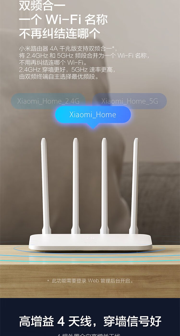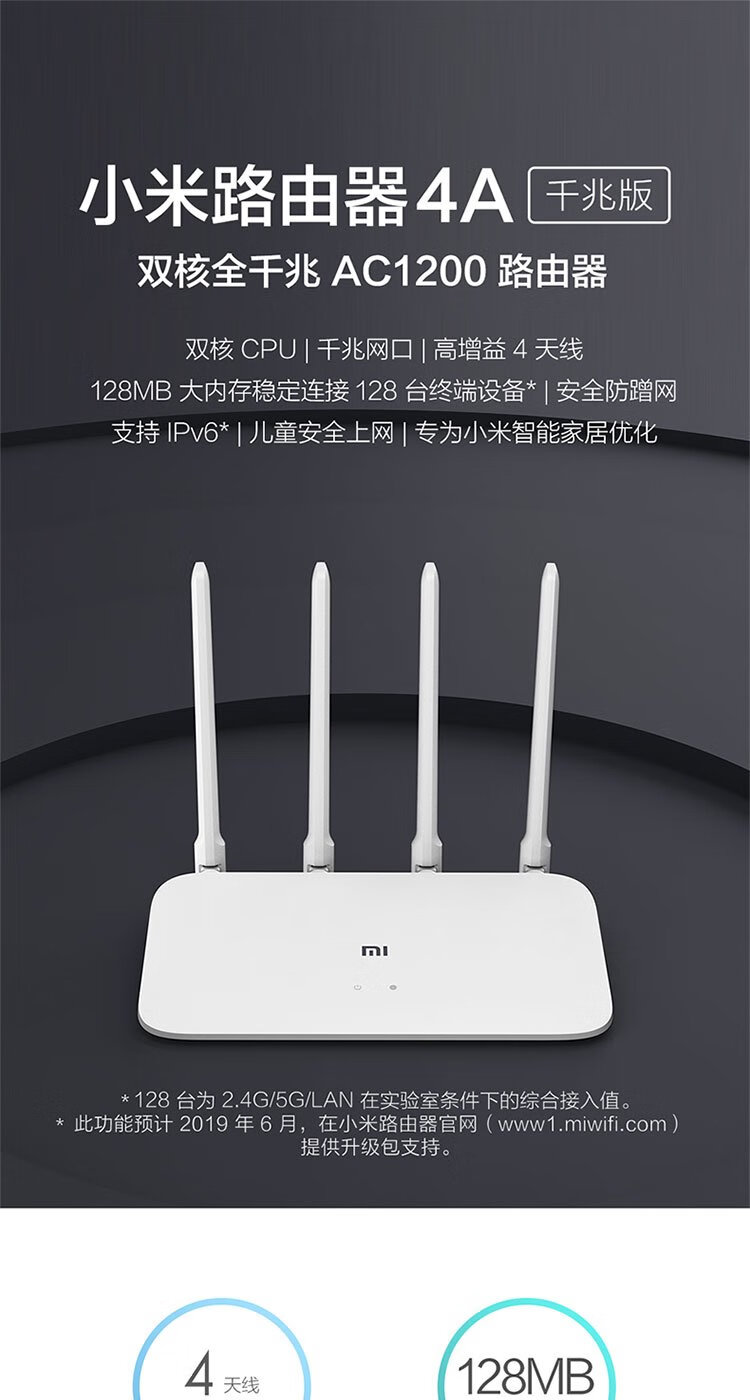 小米(MI)路由器4A千兆版 双千兆 1200M双频无线速率 5G家用智能路由器 四天线穿墙 双频合一