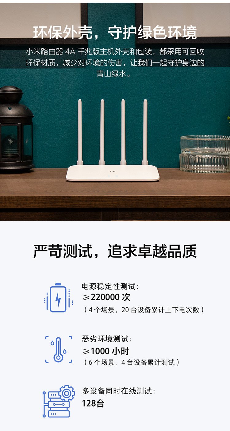 小米(MI)路由器4A千兆版  双千兆 1200M双频无线速率 5G家用智能路由器 四天线穿墙 双频合一