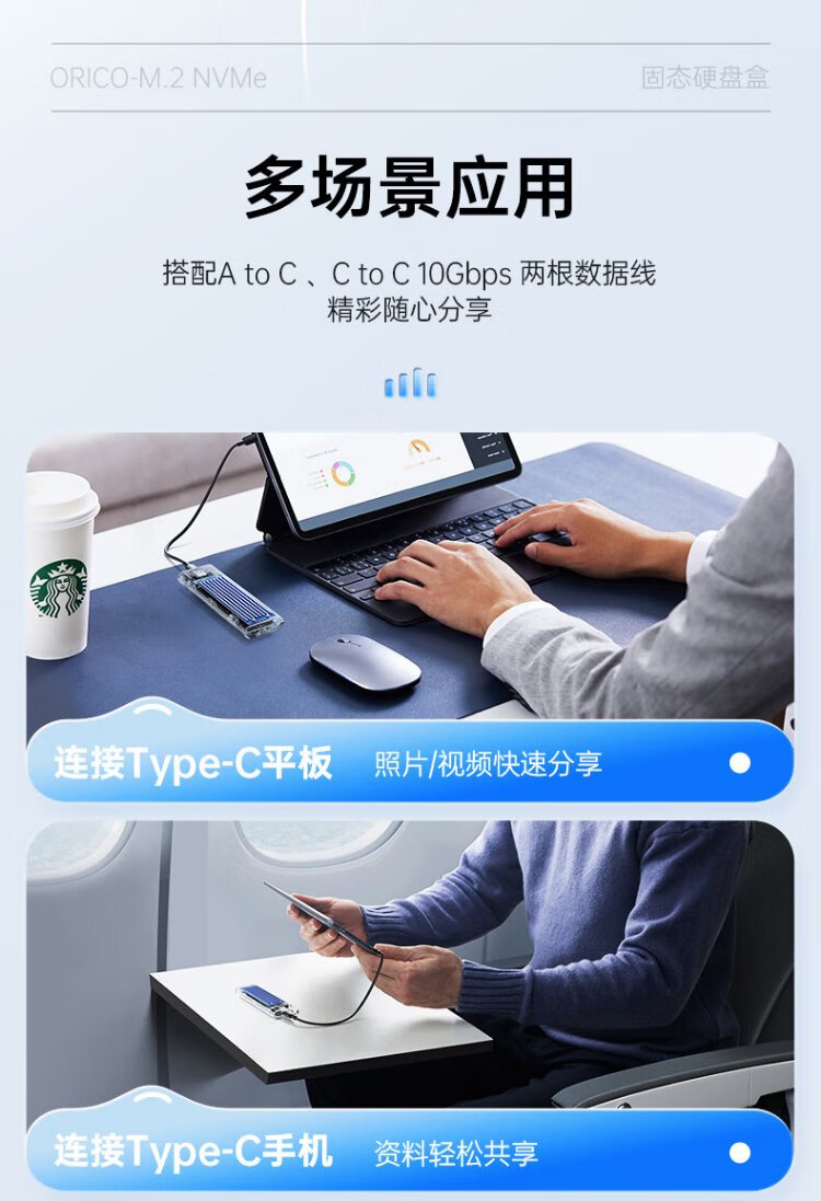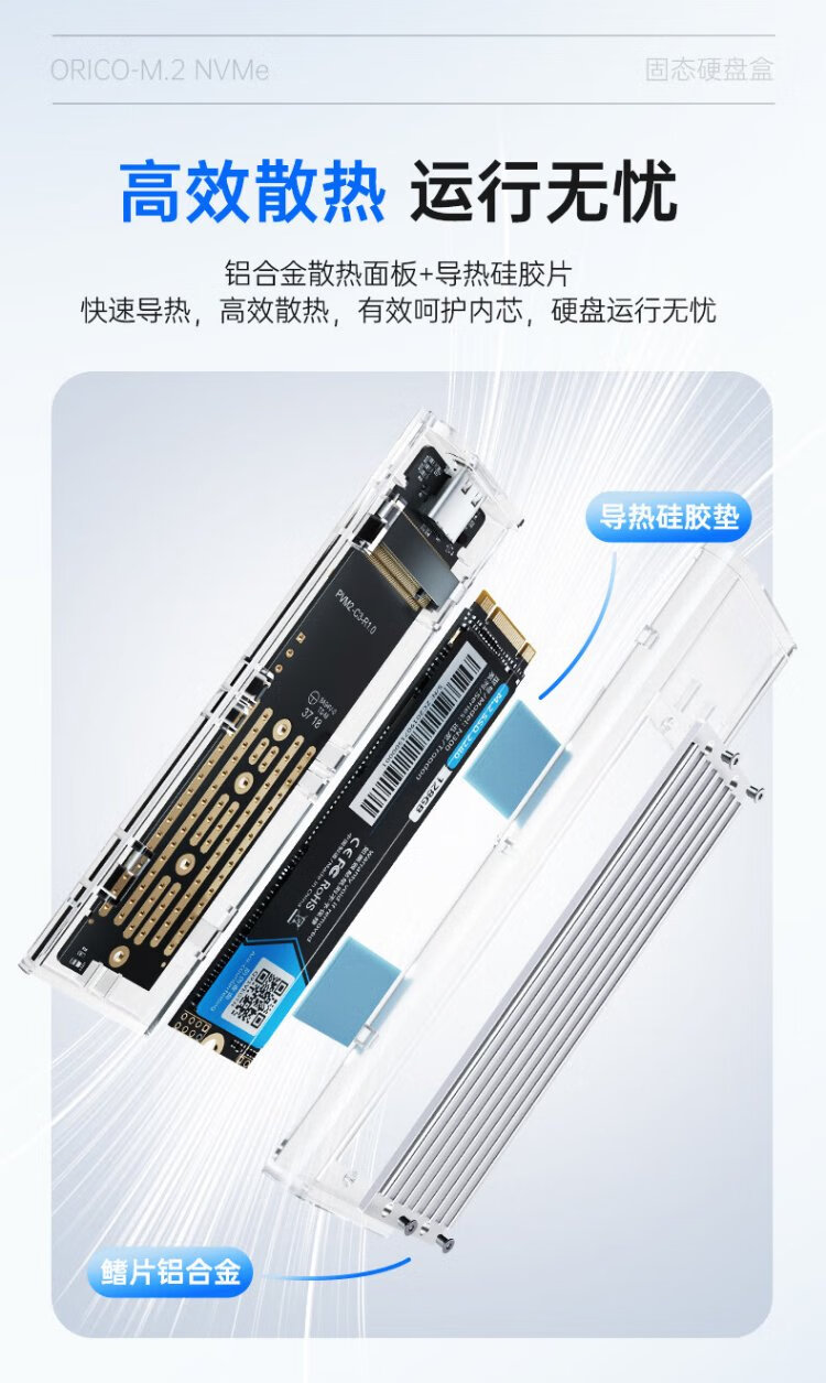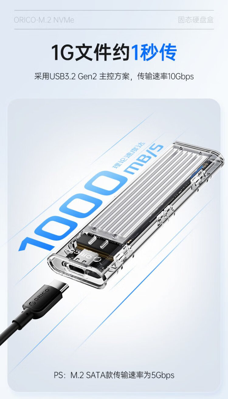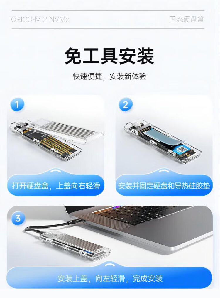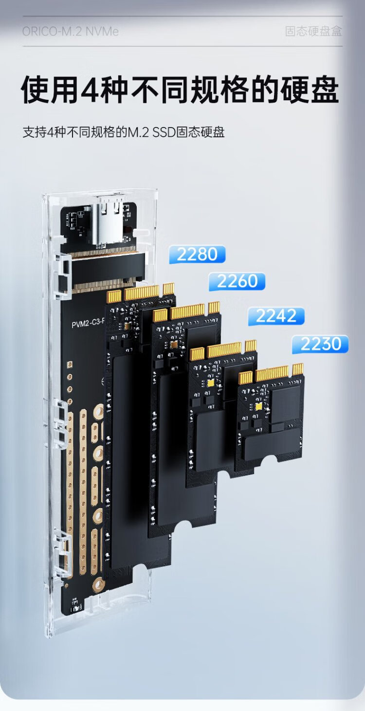 ORICO M.2 NVMe solid state drive box 10Gpbs Type-C interface SSD external box suitable for laptops transparent metal/silver TCM2-C3