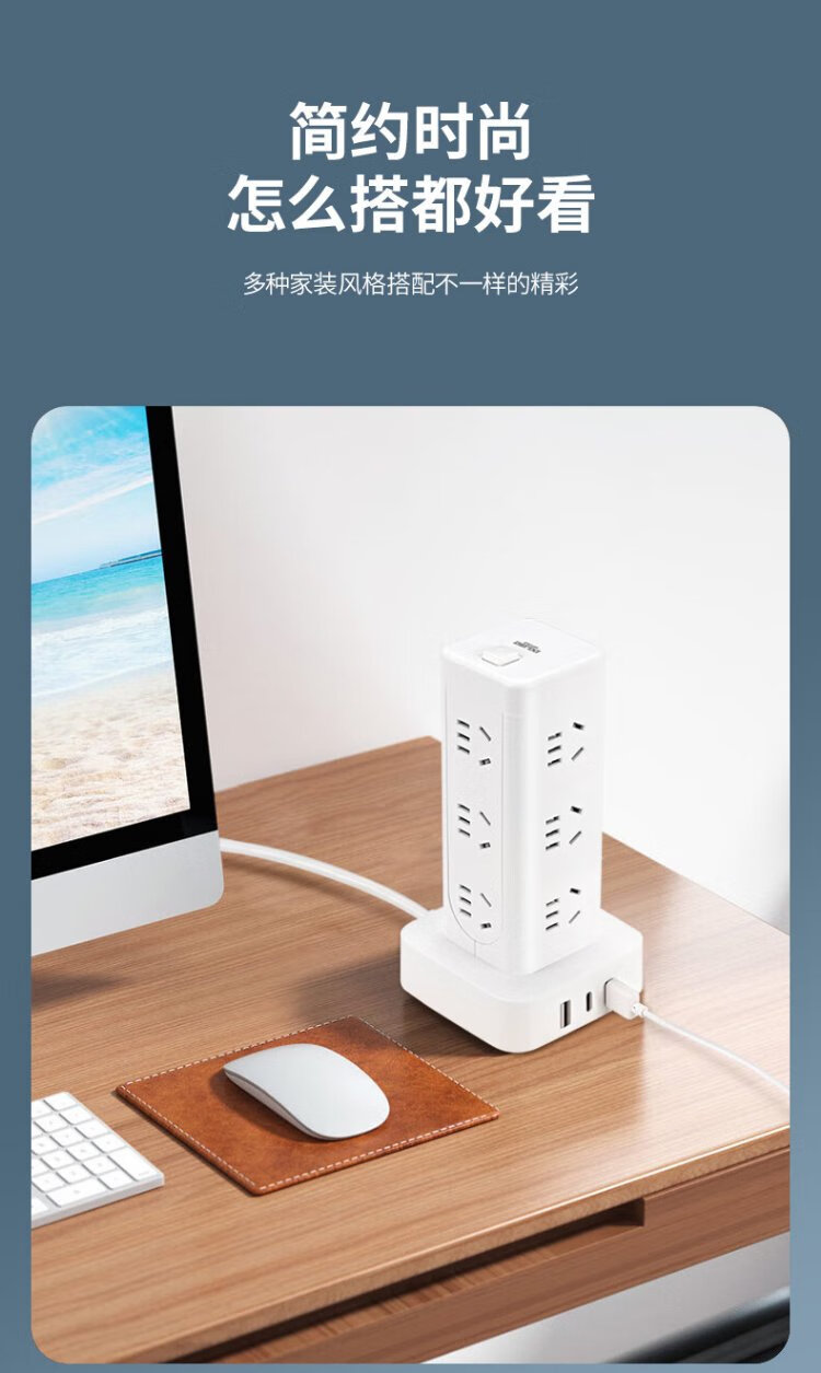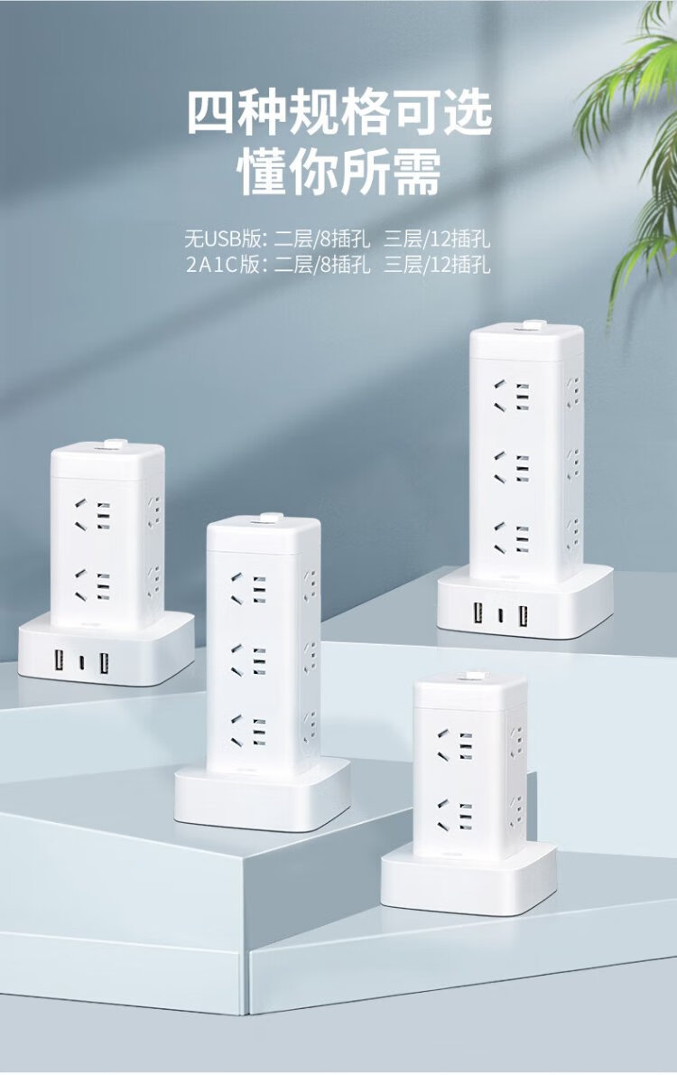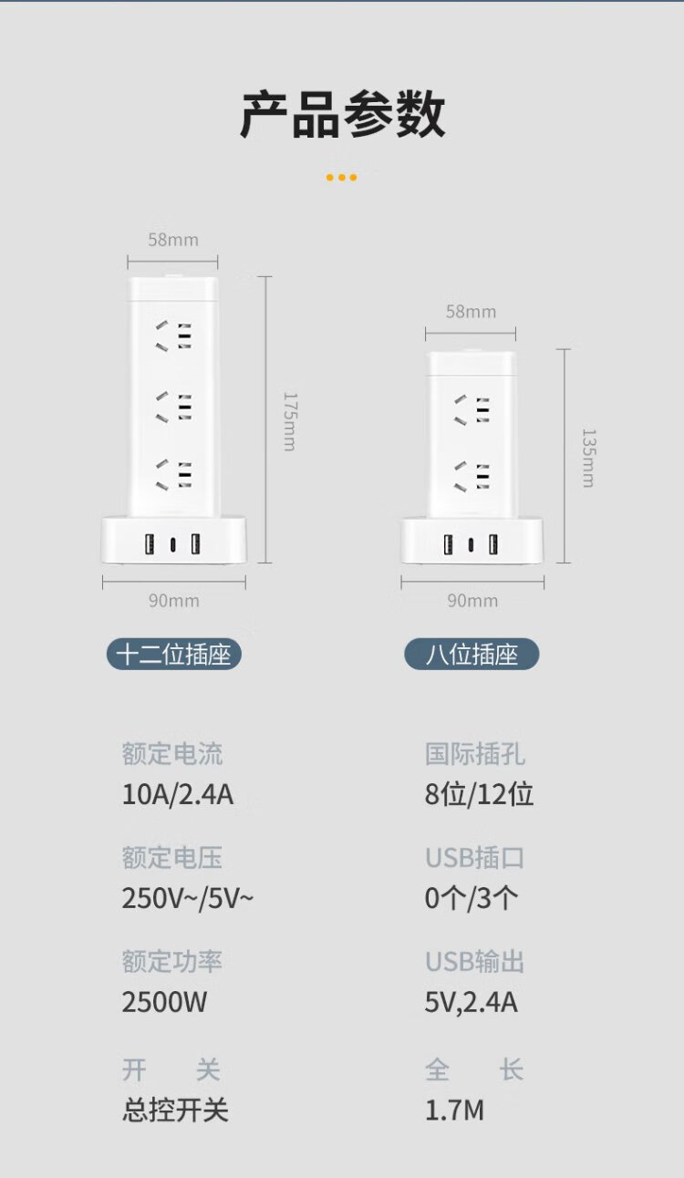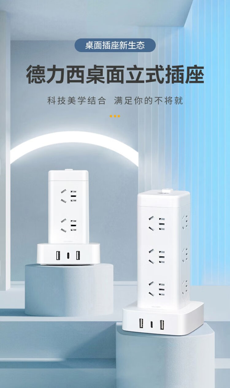 德力西(DELIXI)立式插座/塔式桌面插座/插排/排插/插线板/插板/接线板 8位五孔总控开关1.7米