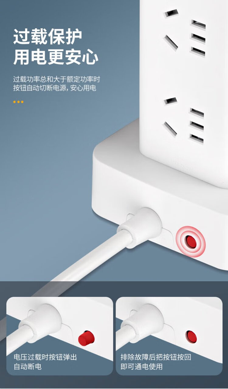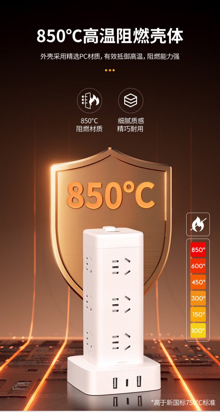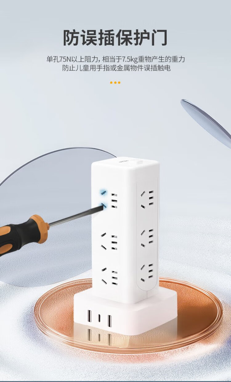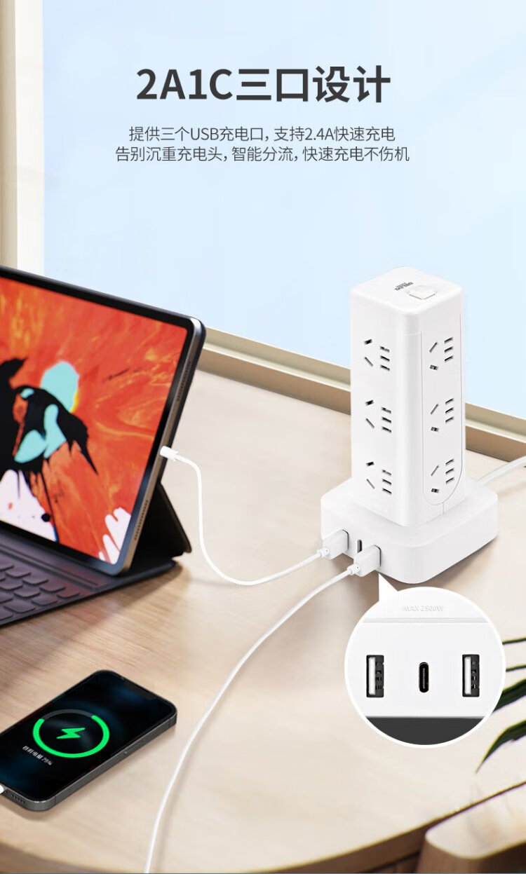 德力西(DELIXI)立式插座/塔式桌面插座/插排/排插/插线板/插板/接线板 8位五孔总控开关1.7米