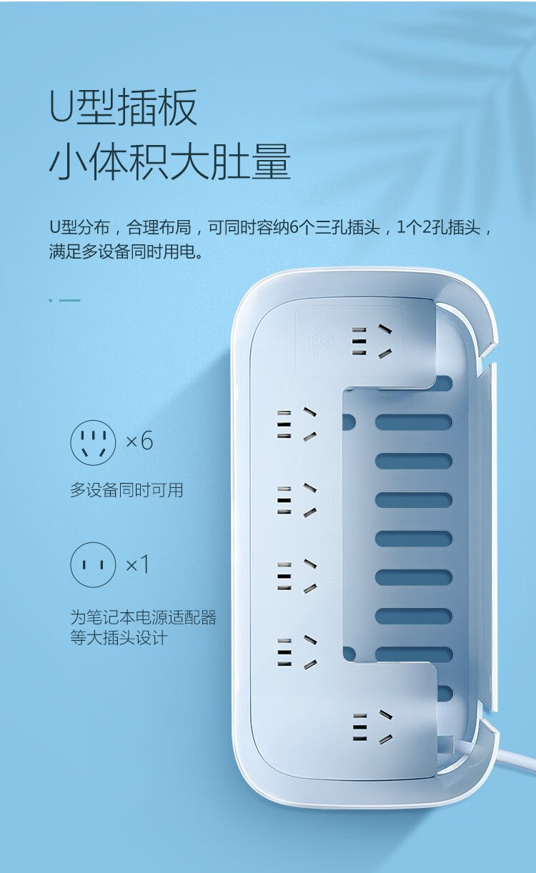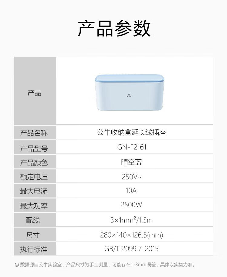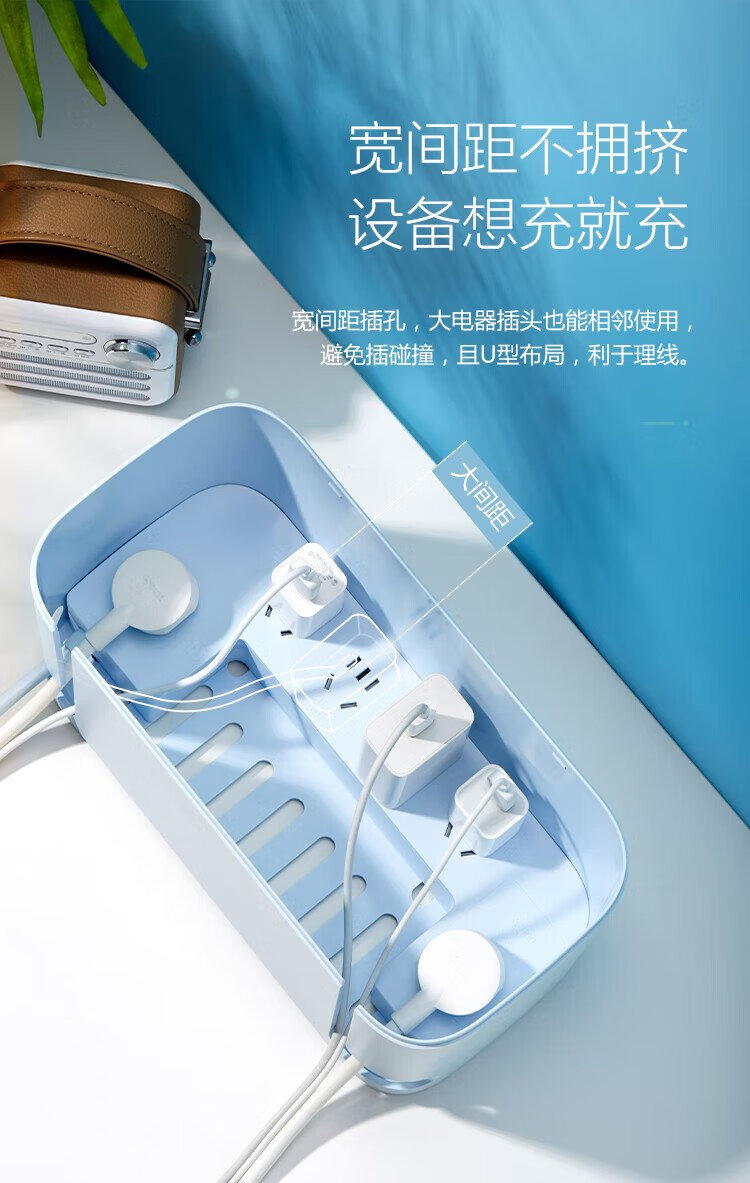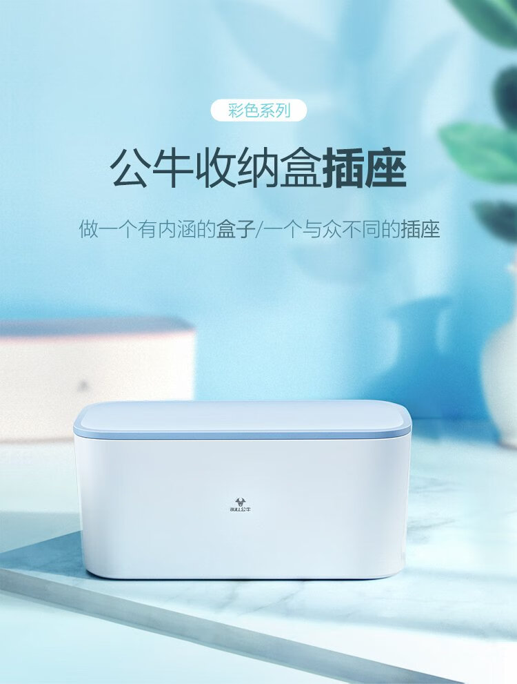 公牛(BULL)收纳盒延长线插座/插线板/插排/排插/接线板/拖线板/7位全长1.5米 晴空蓝GN-F2161
