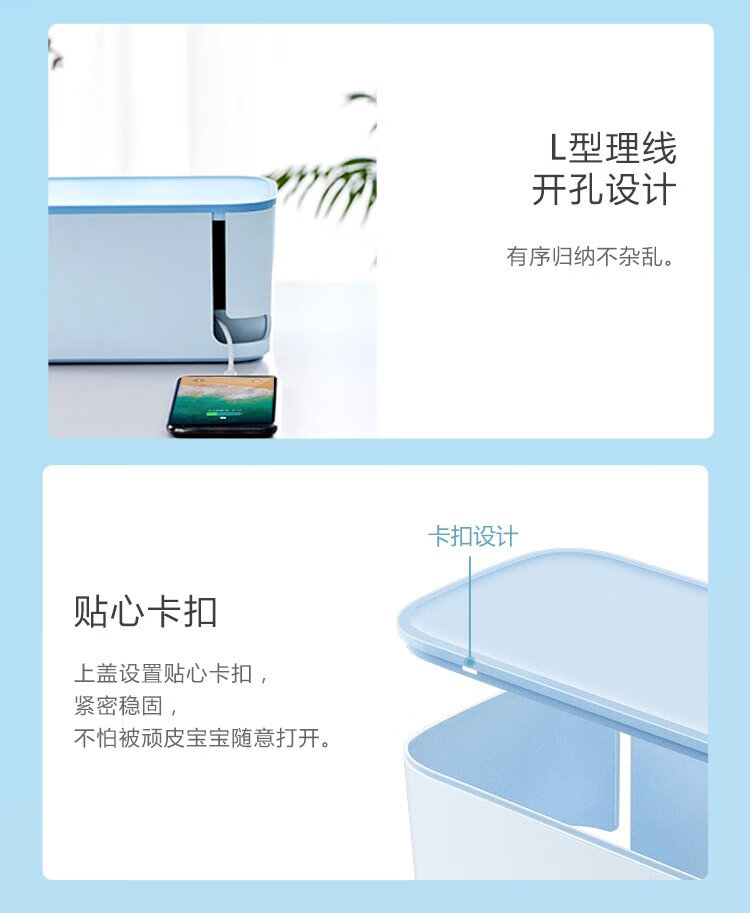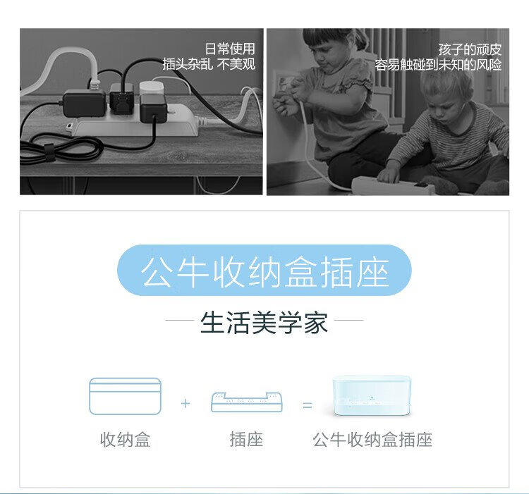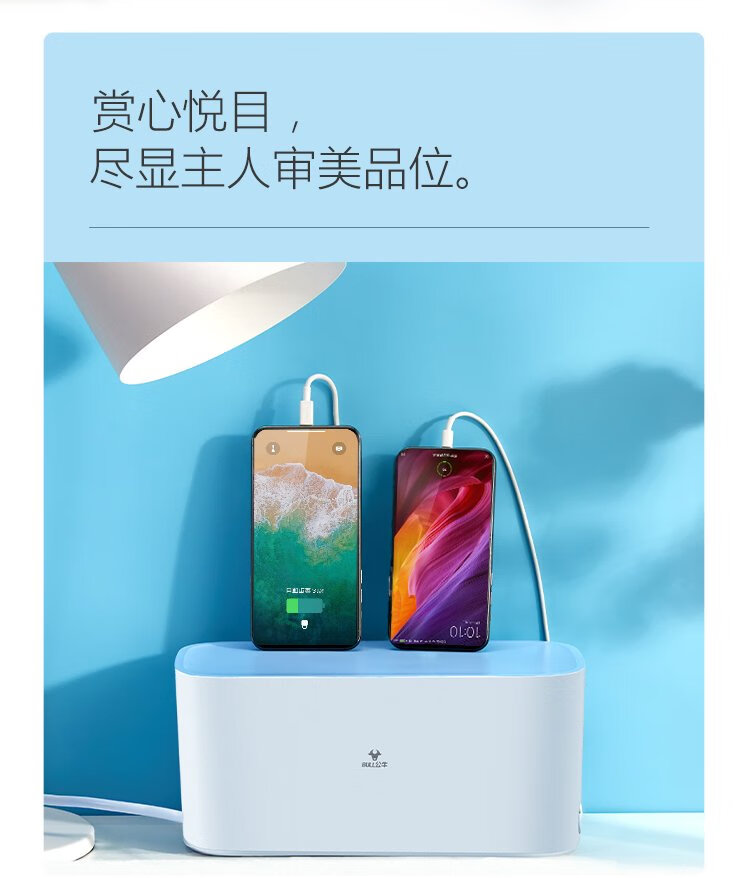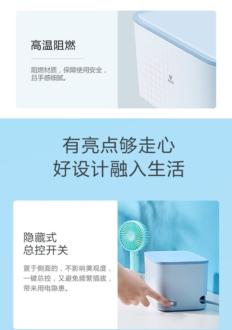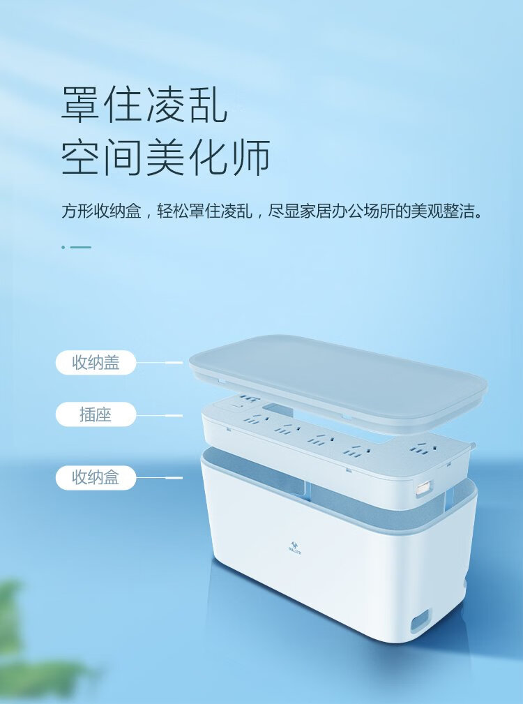 公牛(BULL)收纳盒延长线插座/插线板/插排/排插/接线板/拖线板/7位全长1.5米 晴空蓝GN-F2161