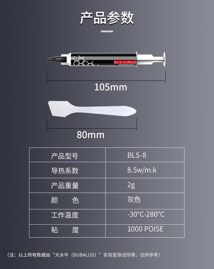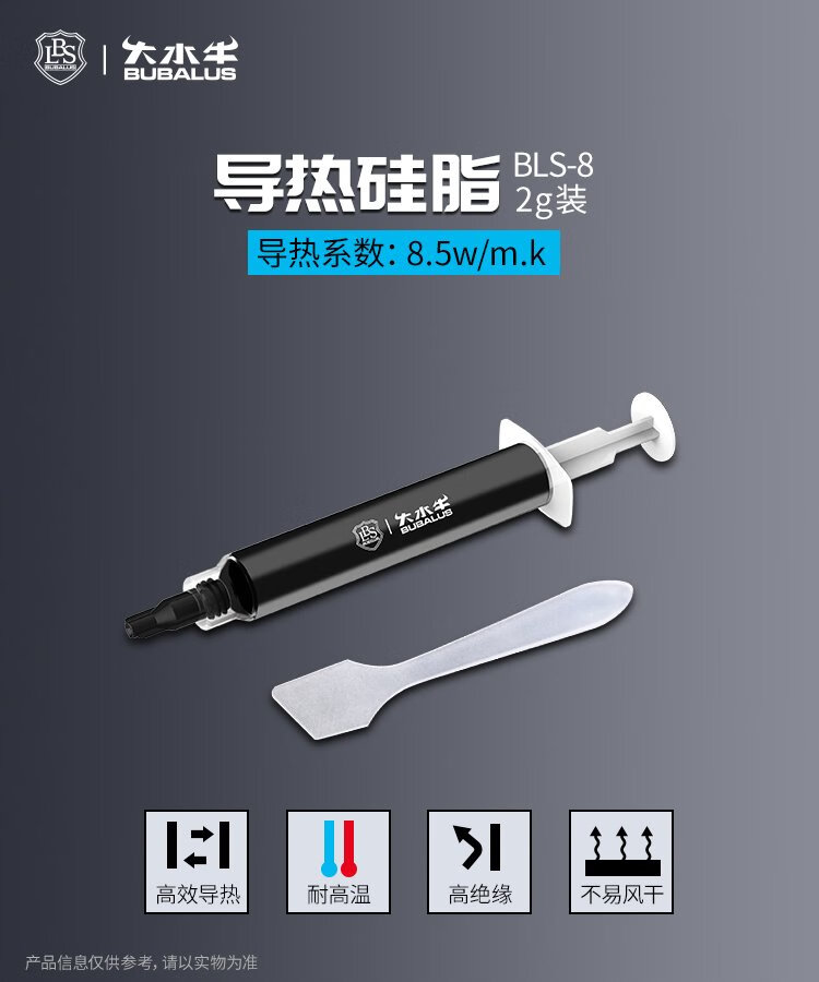 大水牛(BUBALUS)BLS-8导热硅脂(2g装/台式机笔记本电脑CPU散热膏/导热系数8.5W/m.k)