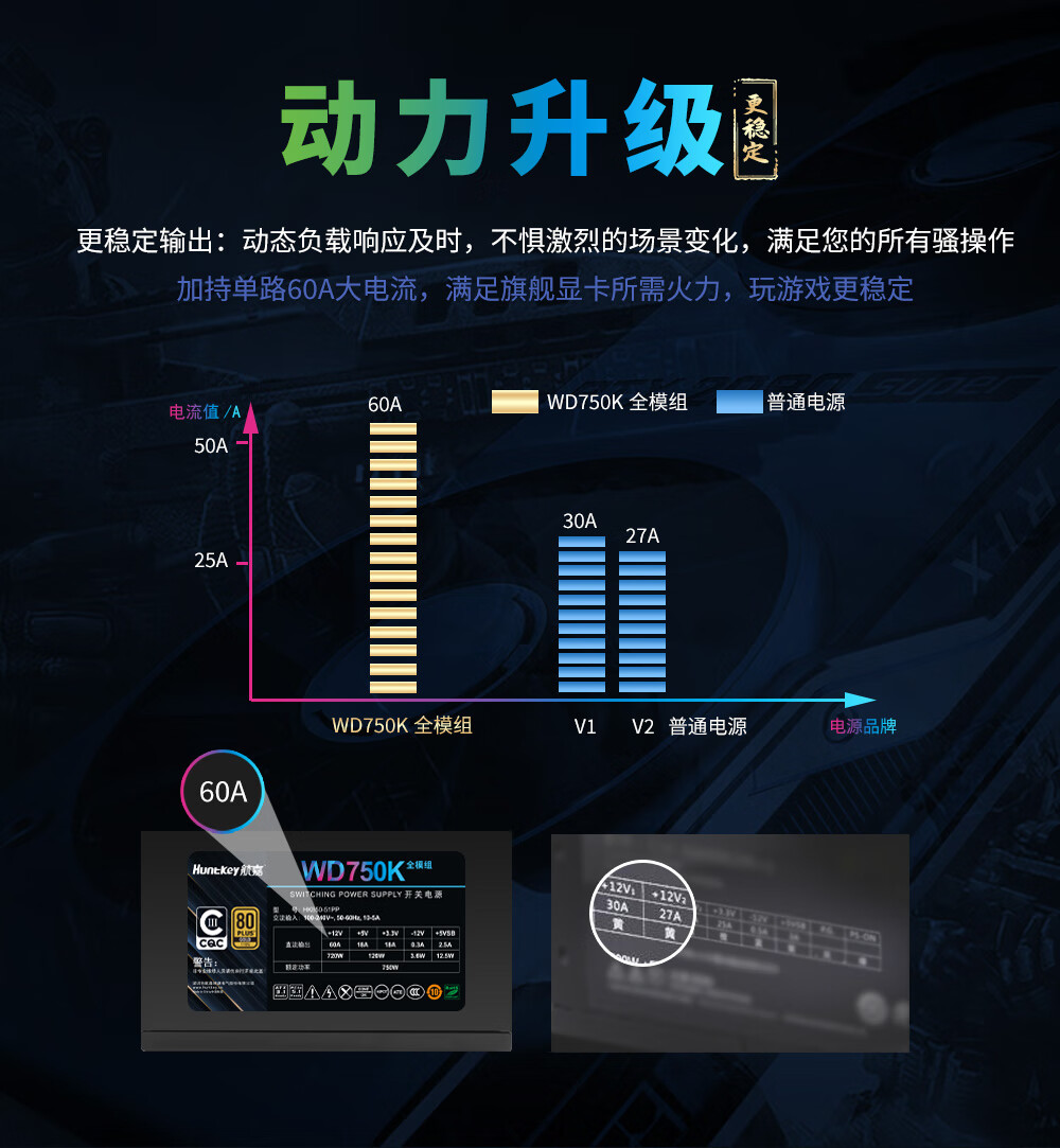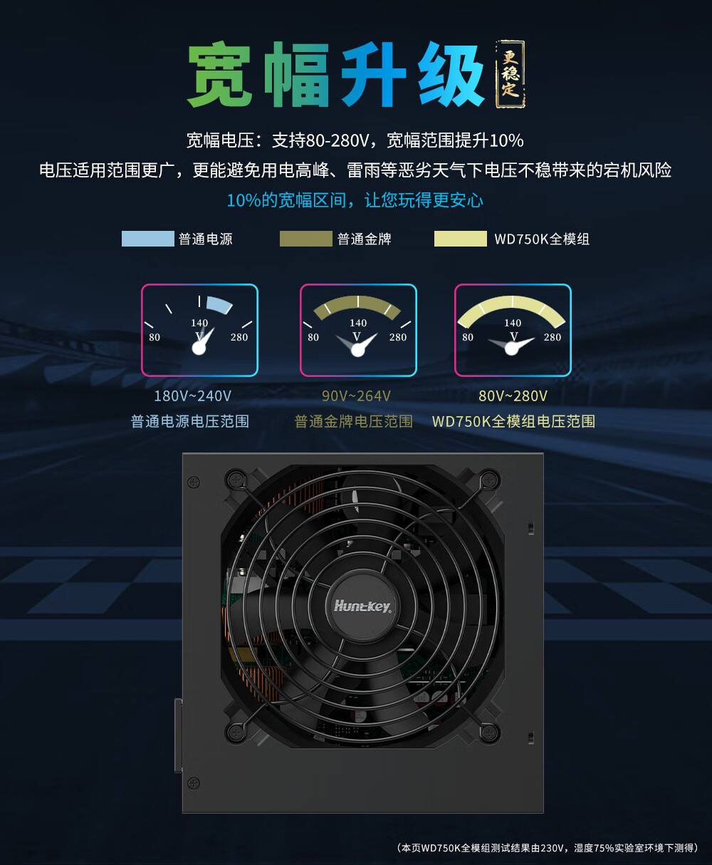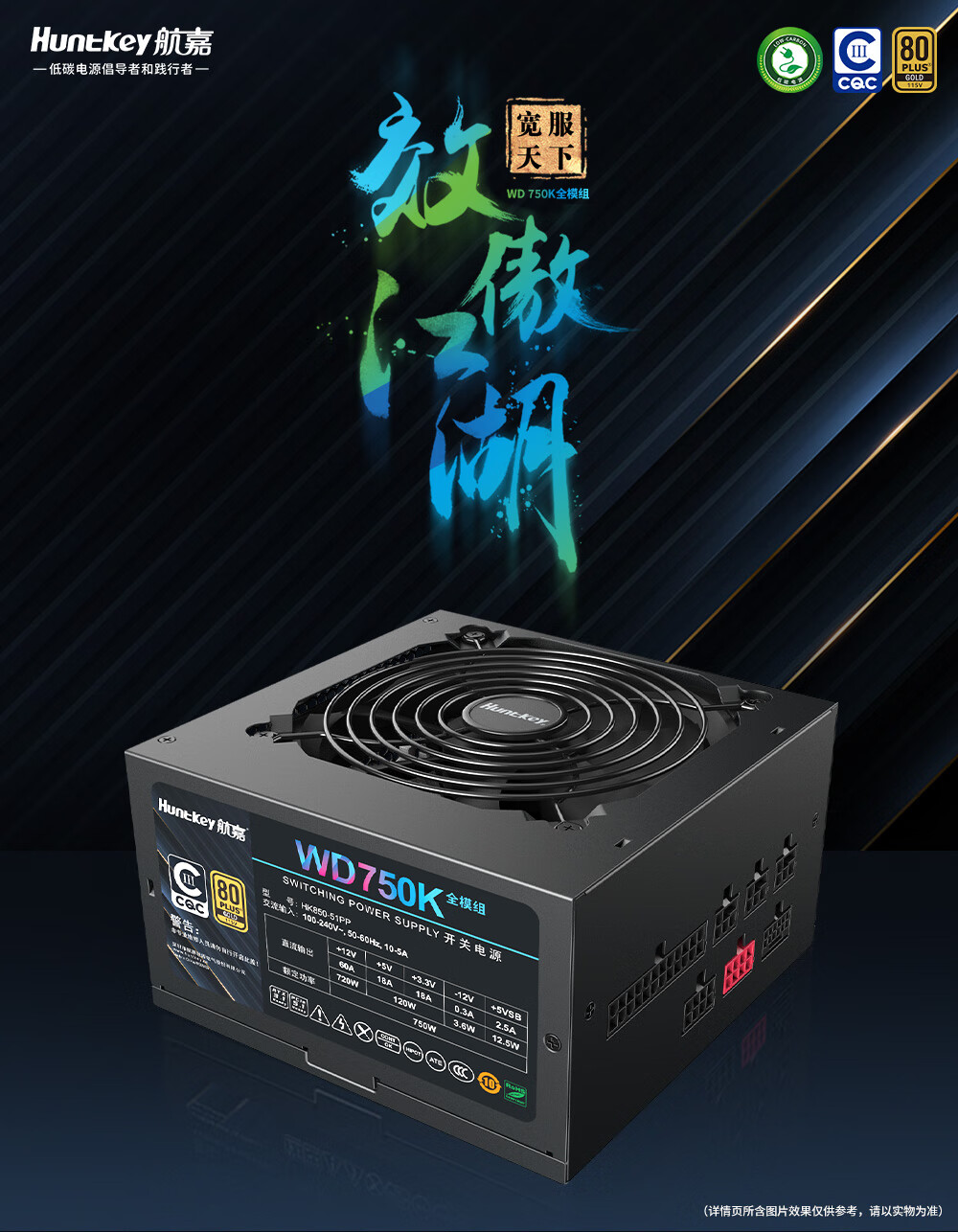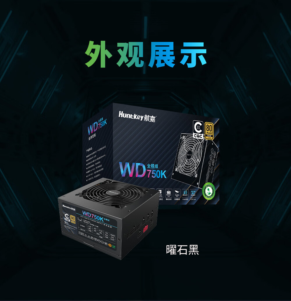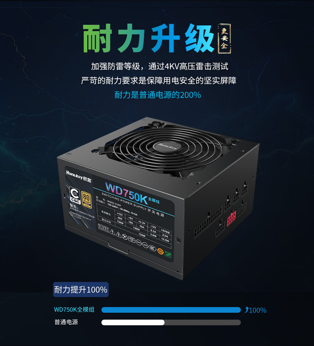 Huntkey WD750K Vollmodul Goldmedaille 750W Computer-Netzteil (80PLUS Goldmedaille/einzelne 60A/volle Spannung/LLC+SR+DC-DC/intelligente Temperaturregelung)