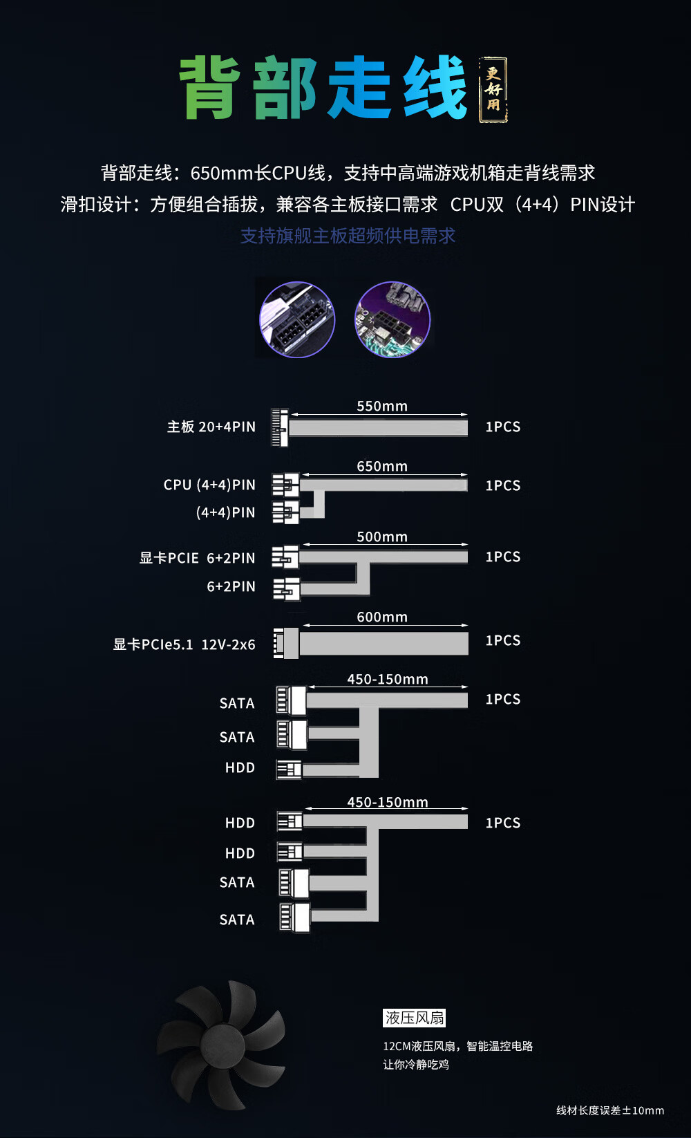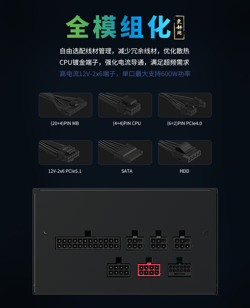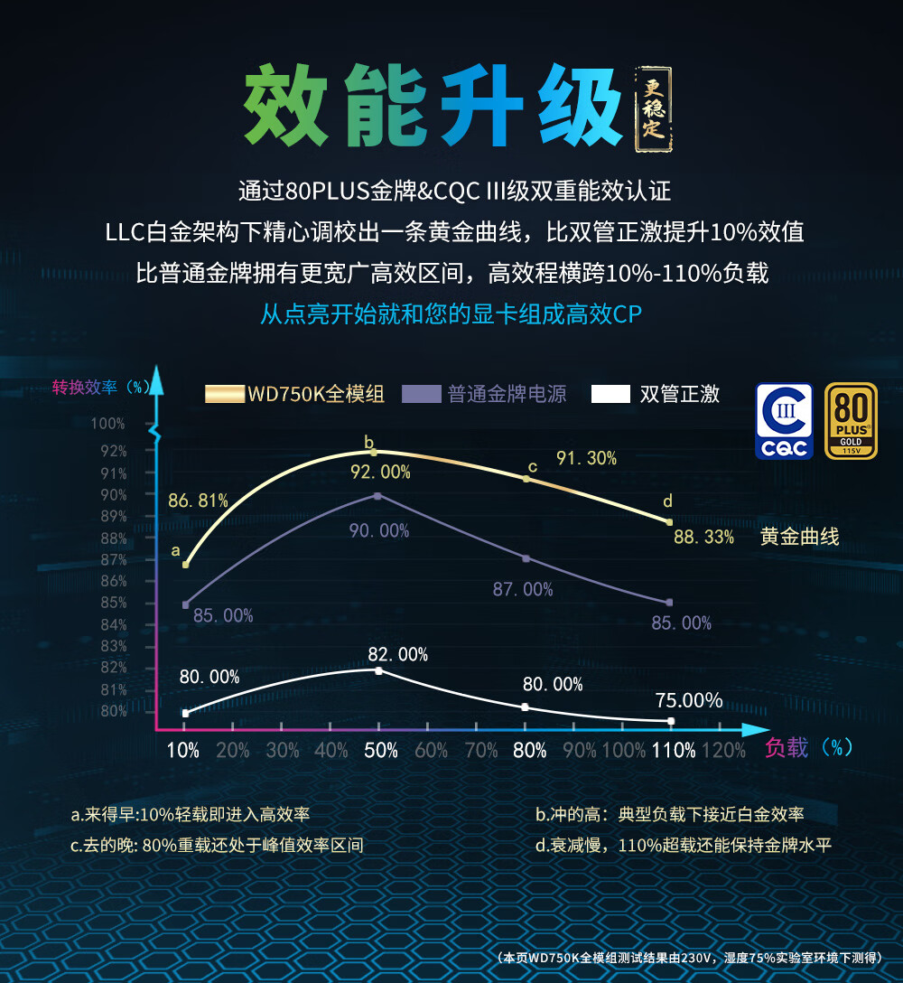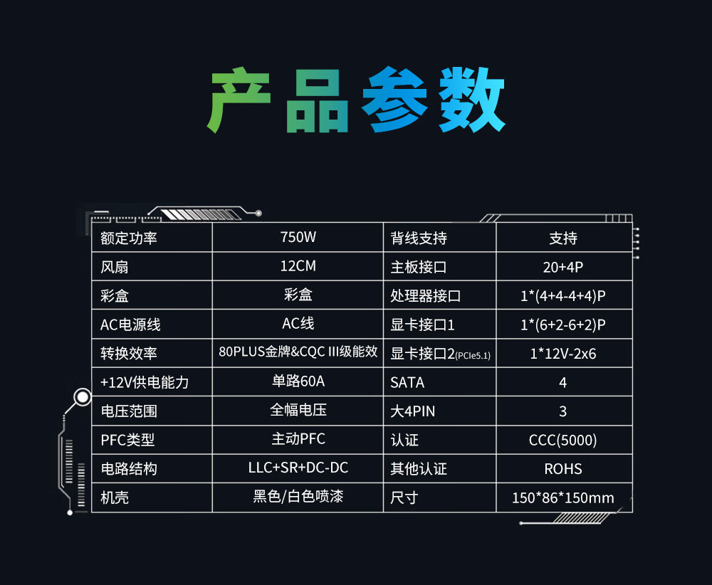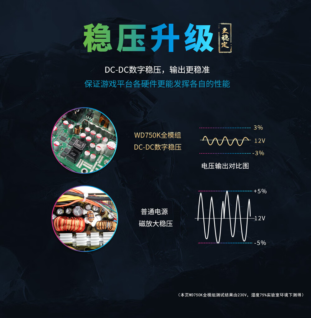 Huntkey WD750K Vollmodul Goldmedaille 750W Computer-Netzteil (80PLUS Goldmedaille/einzelne 60A/volle Spannung/LLC+SR+DC-DC/intelligente Temperaturregelung)