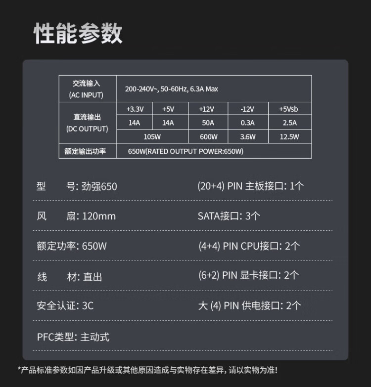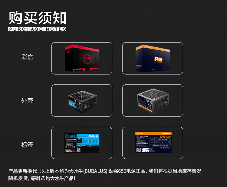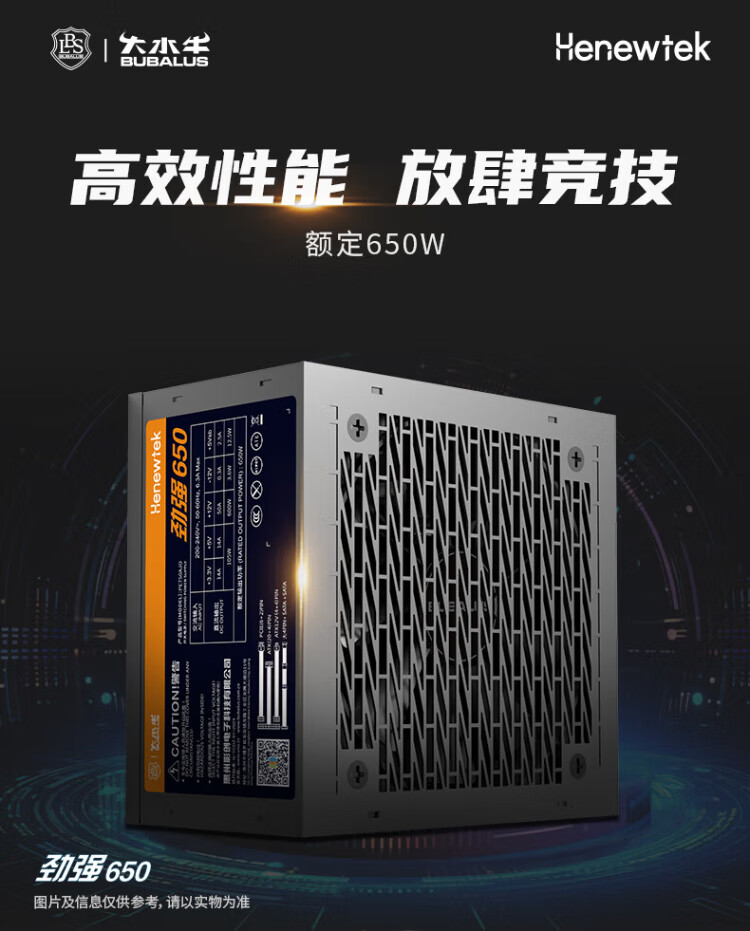 Leistungsstarkes 650-Desktop-Host-Netzteil mit 650 W von BUBALUS (unterstützt 5060-Grafikkarte/aktiver PFC/12-cm-Lüfter/intelligente Temperaturregelung/unterstützt Backline)