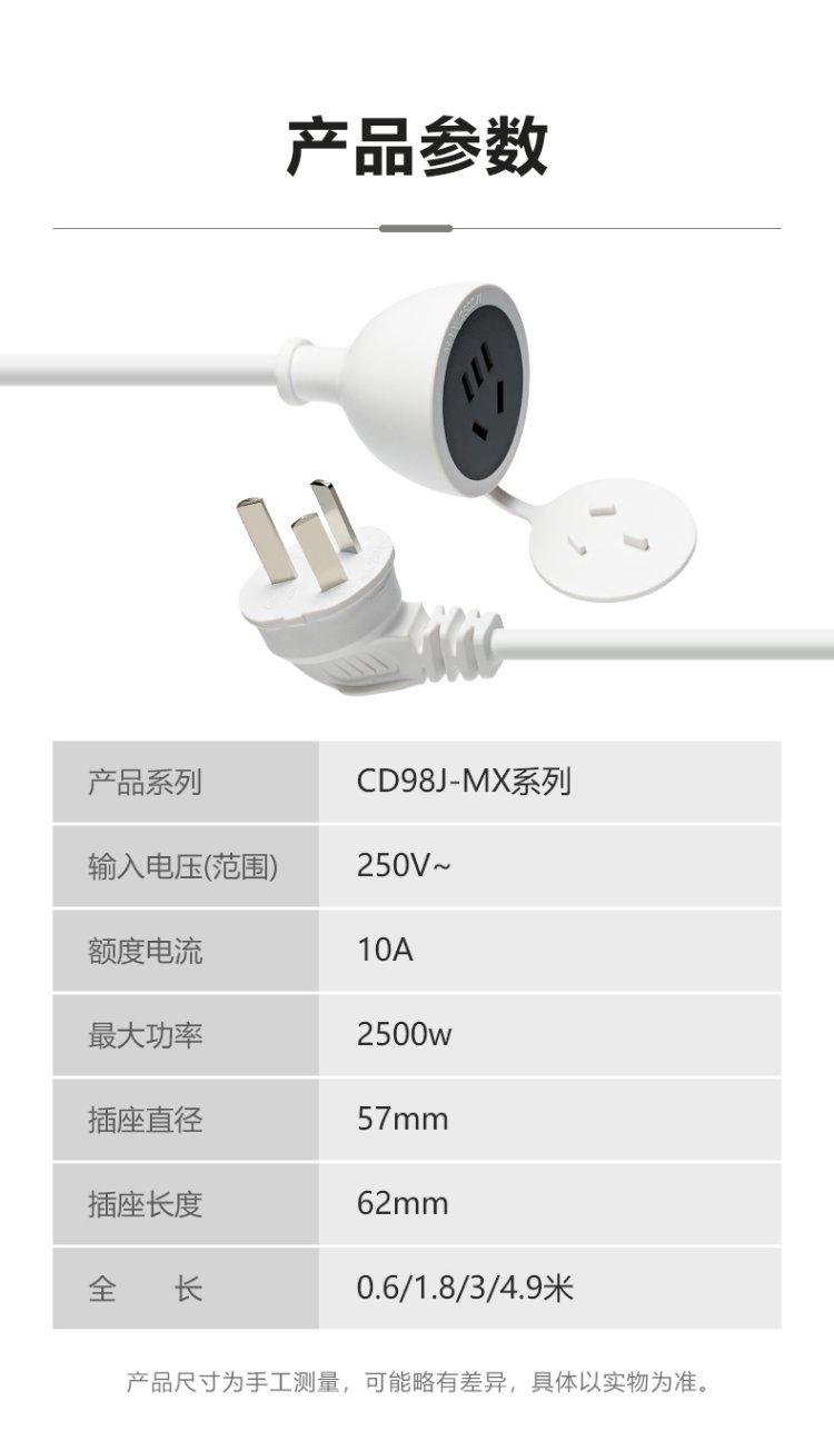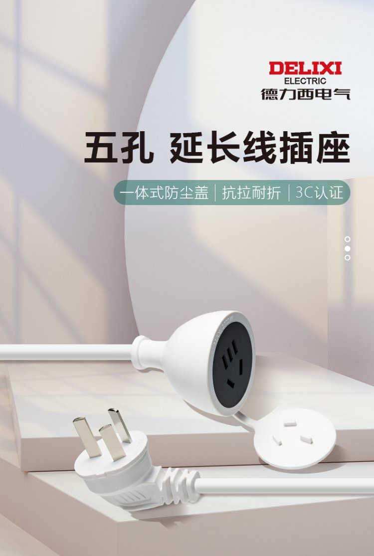德力西(DELIXI) 电源插座延长线/电线插座/延长线插座电动车充电延长线/插排/排插 10A 全长1.8米无开关