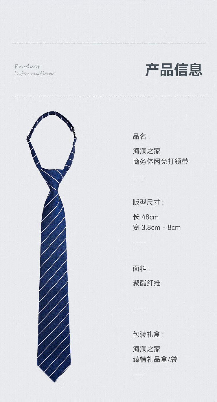 海澜之家(HLA)领带男士免打拉链款格子生日礼物婚礼情侣礼盒装送男友时尚潮