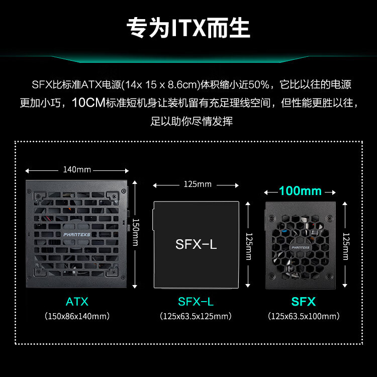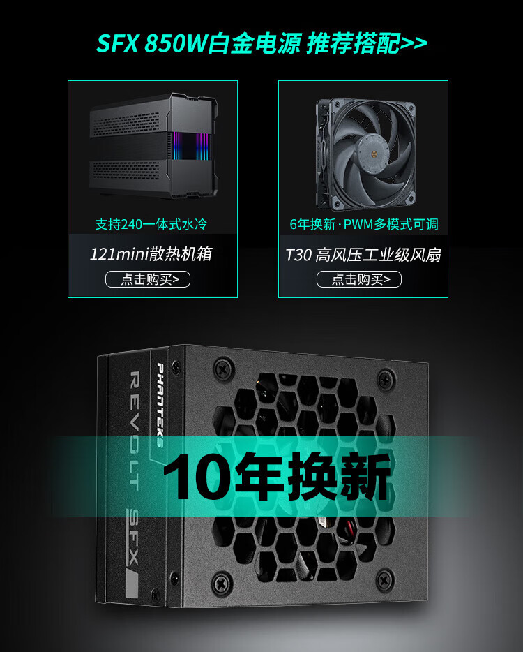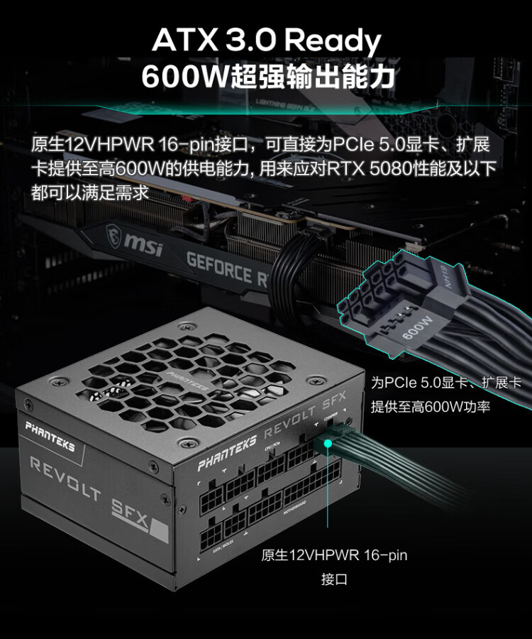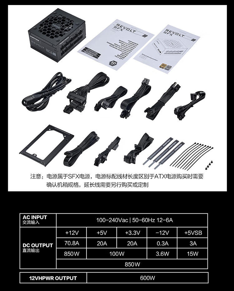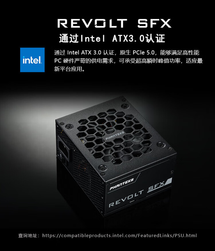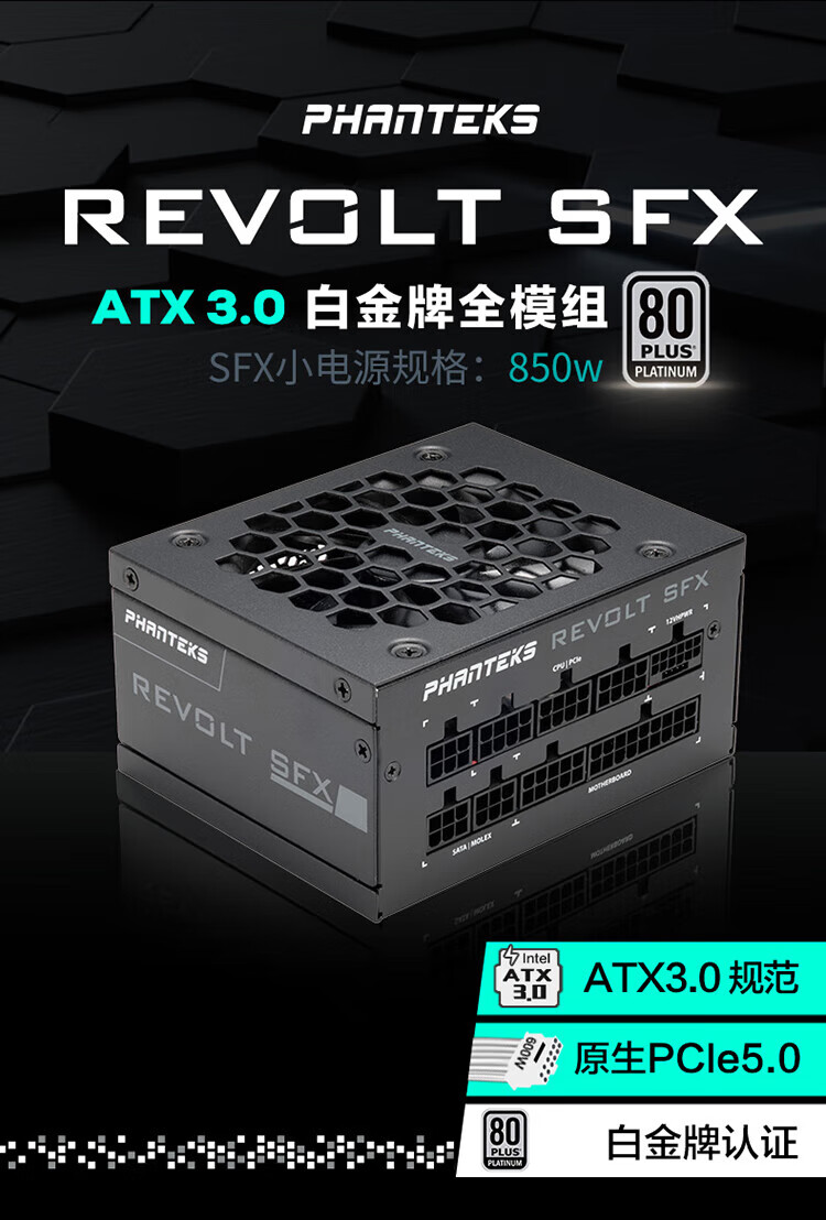 PHANTEKS追风者Revolt 850W SFX白金全模机箱小电源 (Intel ATX3.0认证PCI-E5.0/4090/4080/日系电容)