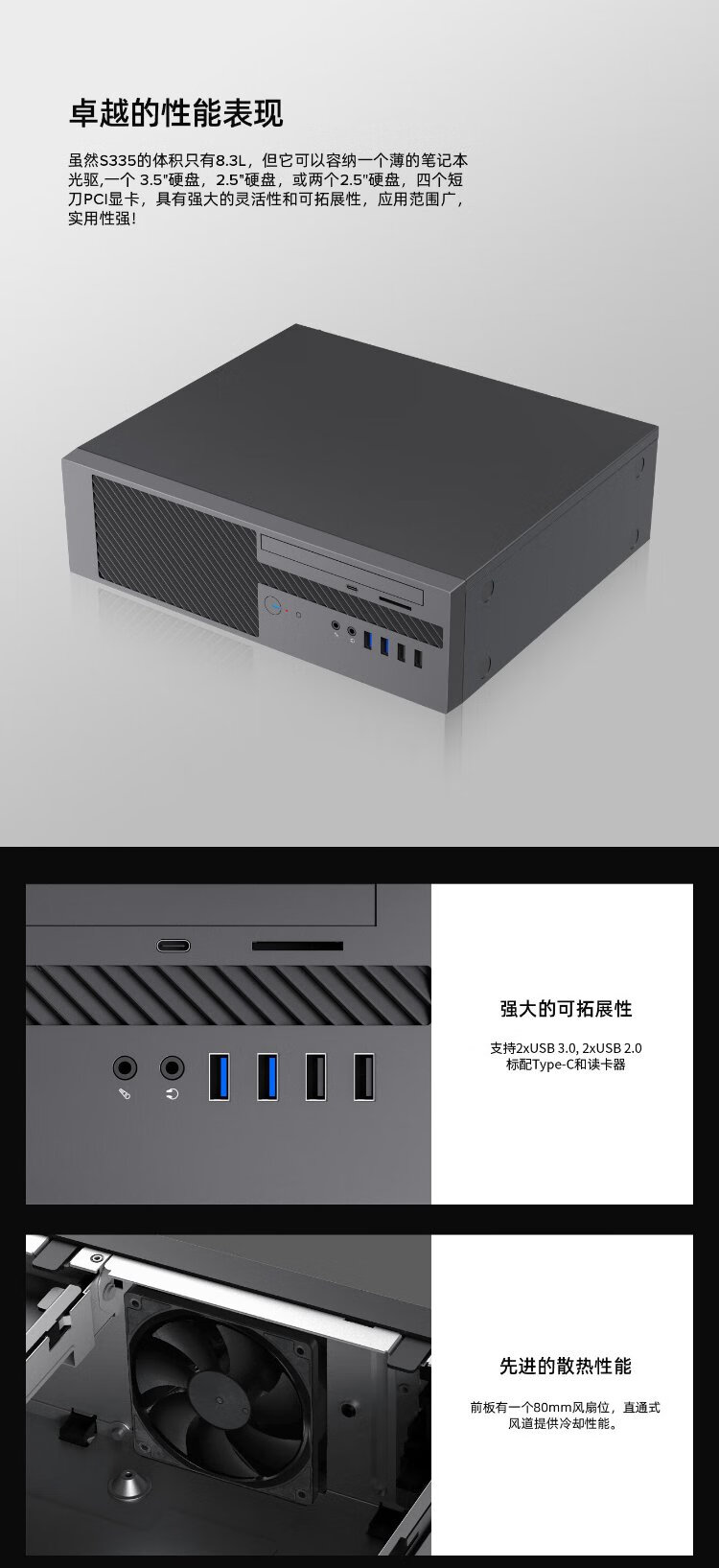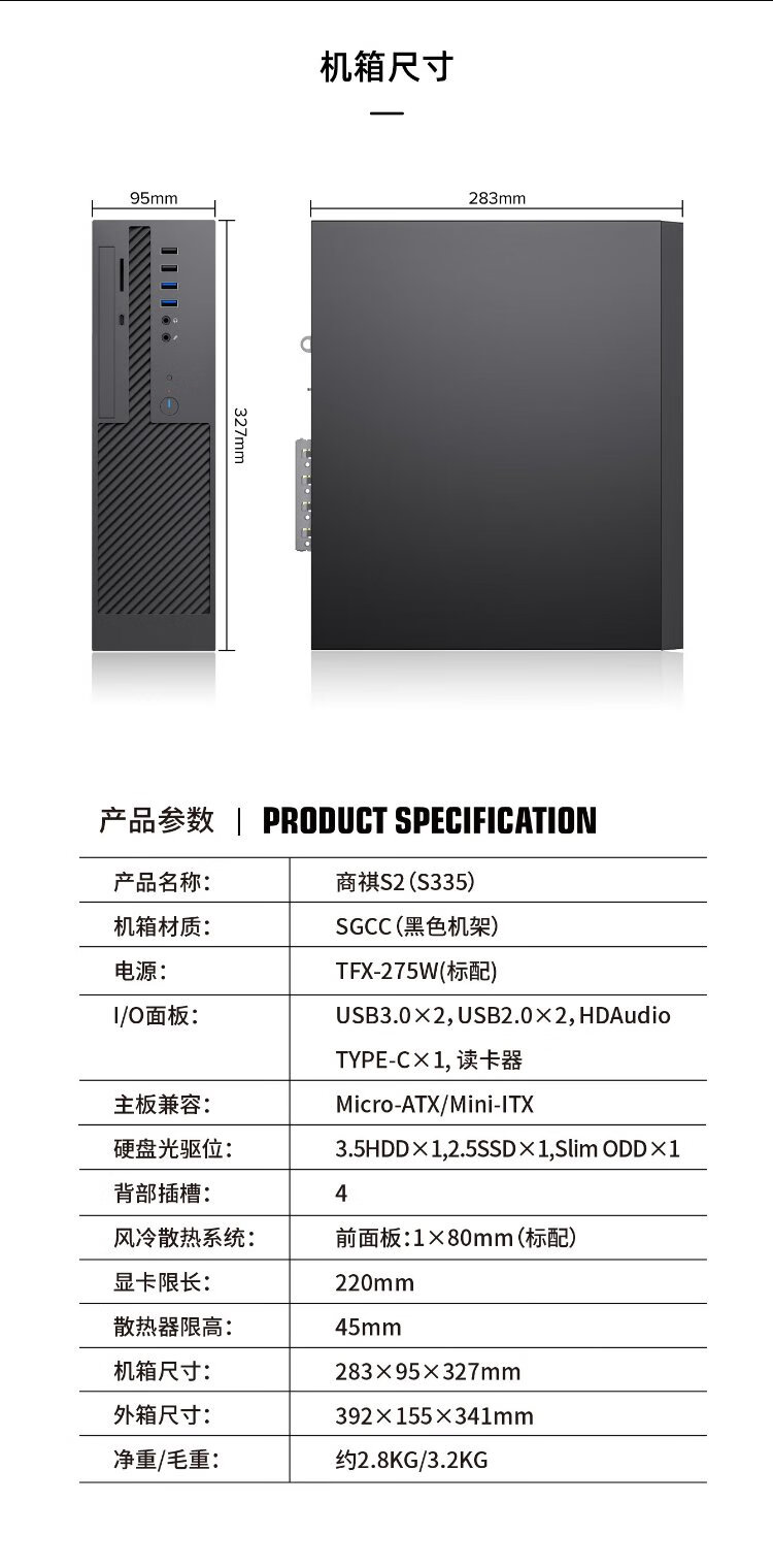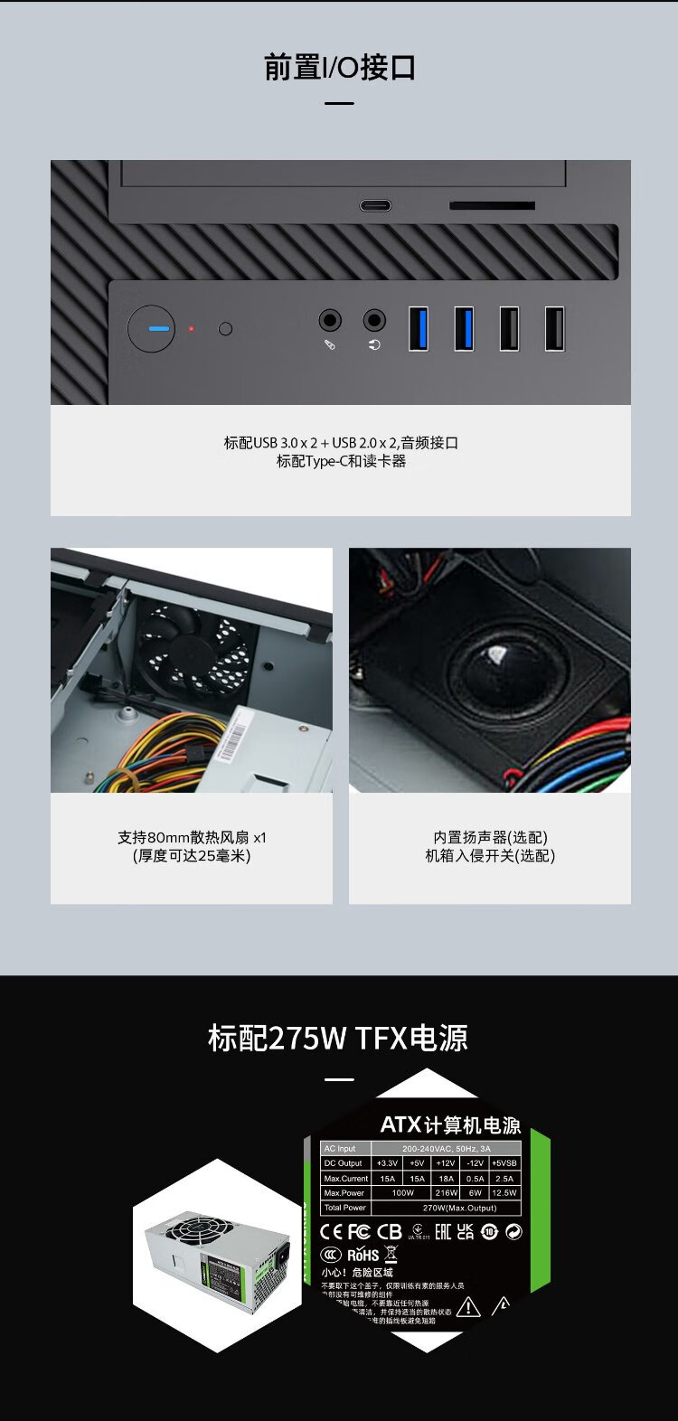 Game Empire (GAMEMAX) Shangqi S2 commercial 8L computer chassis power supply set (matx/itx/full interface/card reader/275W/with fan/Type-C/EMI Xinchuang)