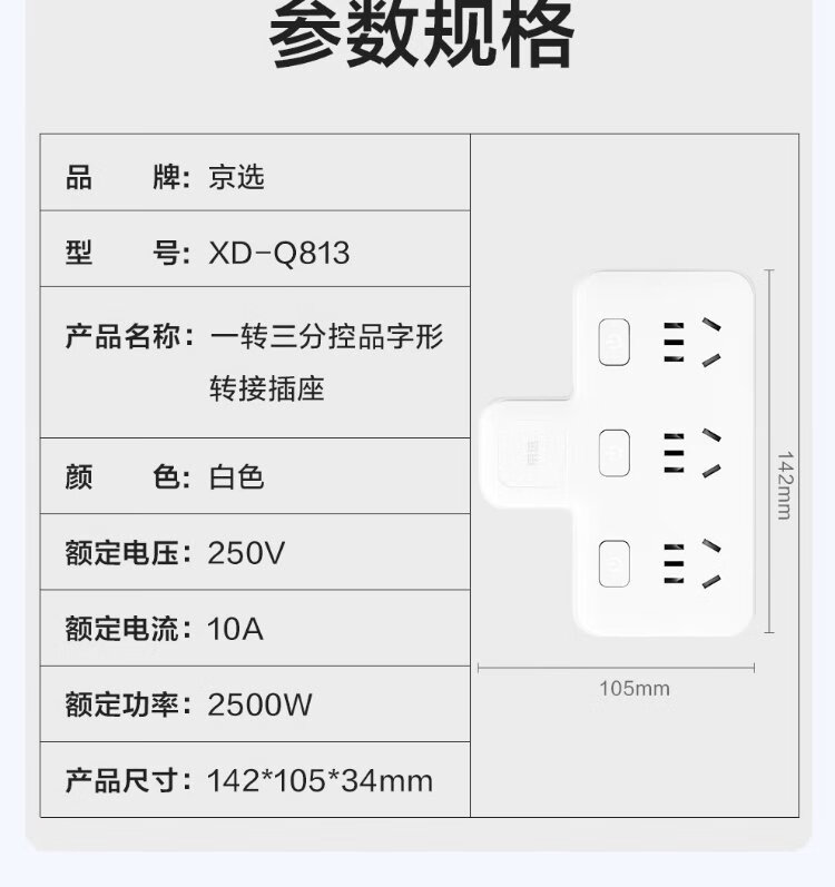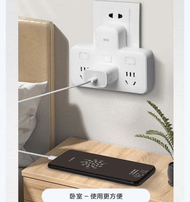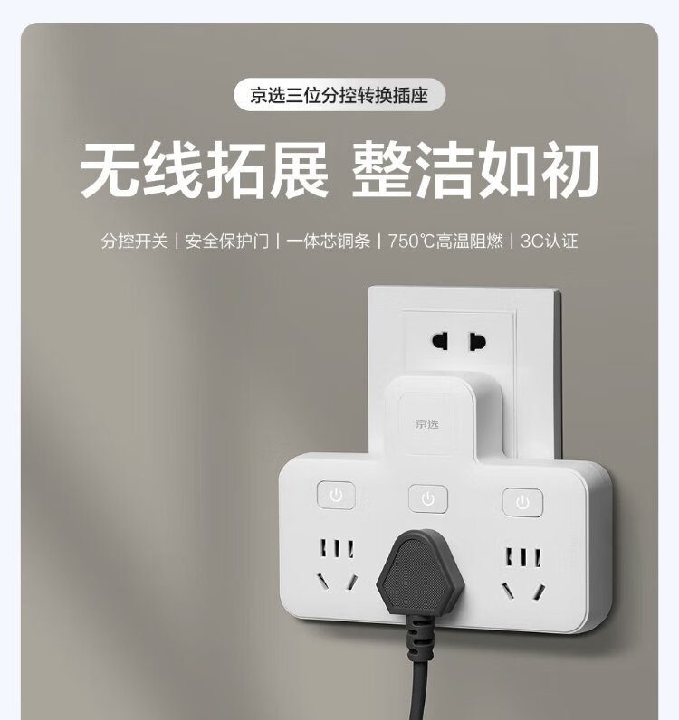 Jingxuan Jingdong's own brand, one piece, one-turn three-point control socket/conversion plug/wireless conversion socket/power converter, one-turn three-point control