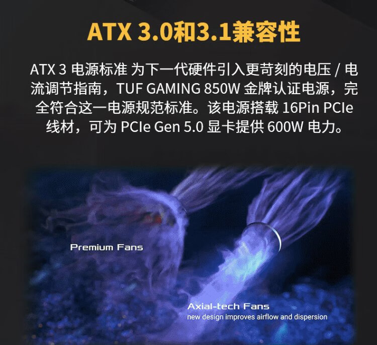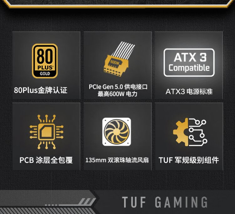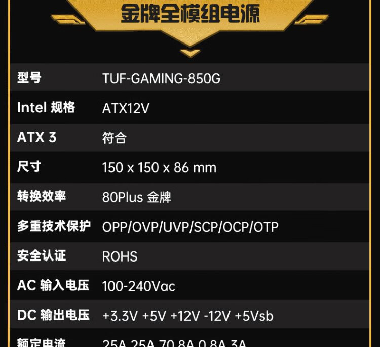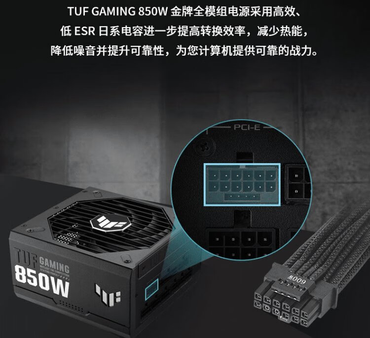 ASUS TUF GAMING Loader 850 W Gold Medal Vollmodul-Netzteil ATX3/PCB-Beschichtung/Pcie 5.0/geprägte Linie/angepasst an 5060-Grafikkartenunterstützung