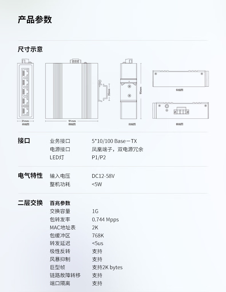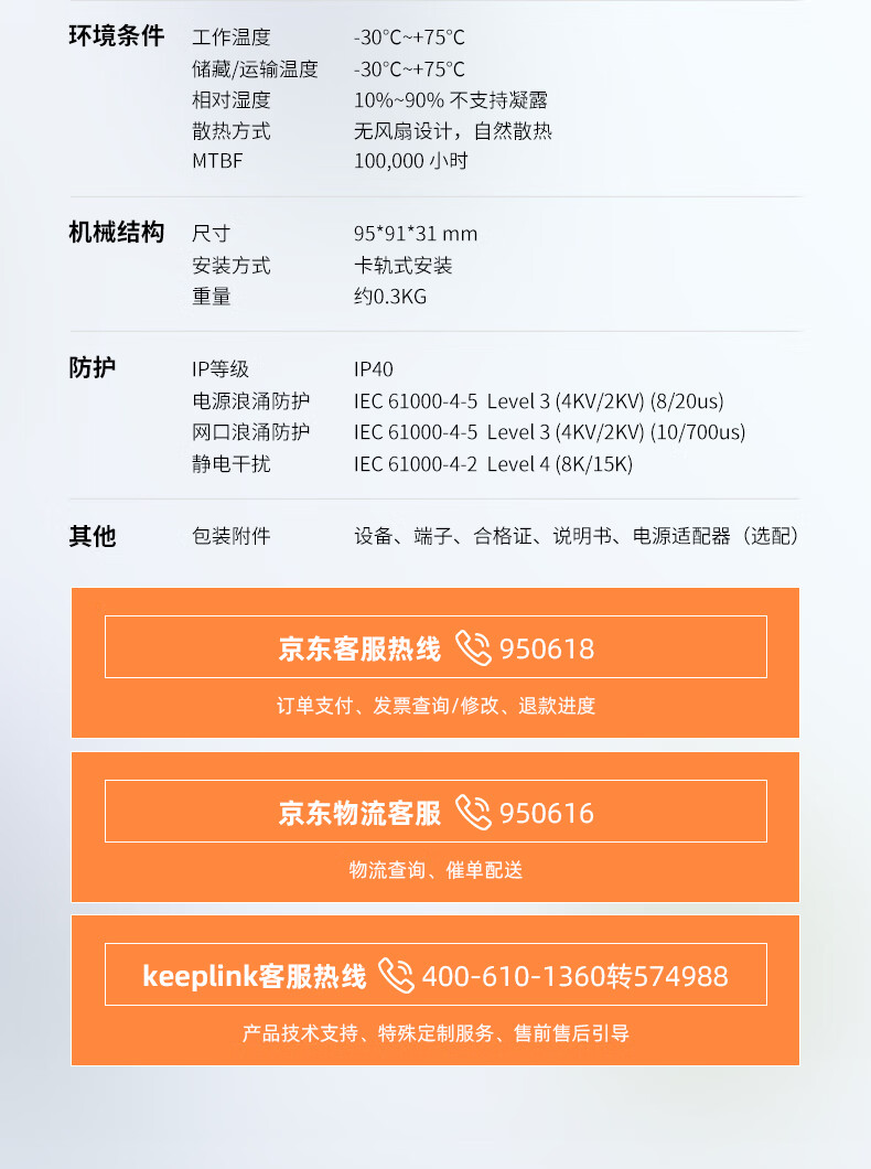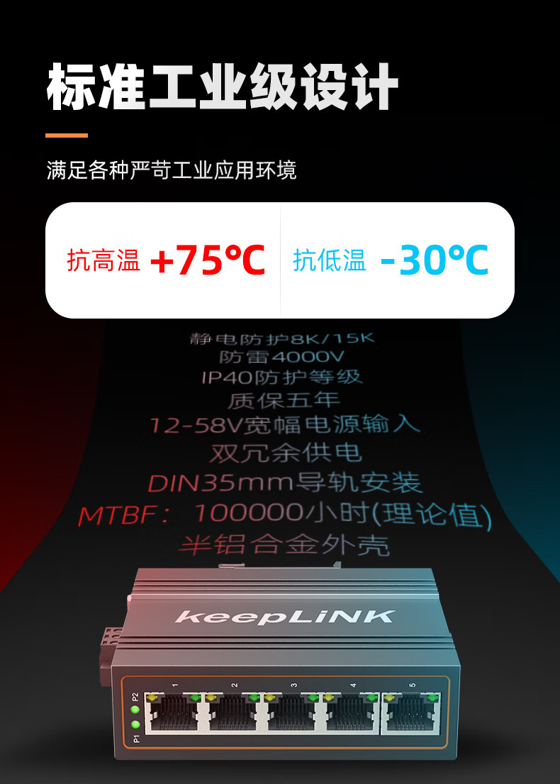 keepLINK KP-9000-45-5TX/m工业级以太网交换机百兆5口导轨式非管理型
