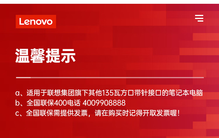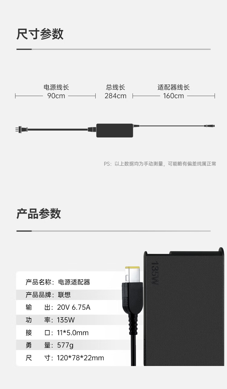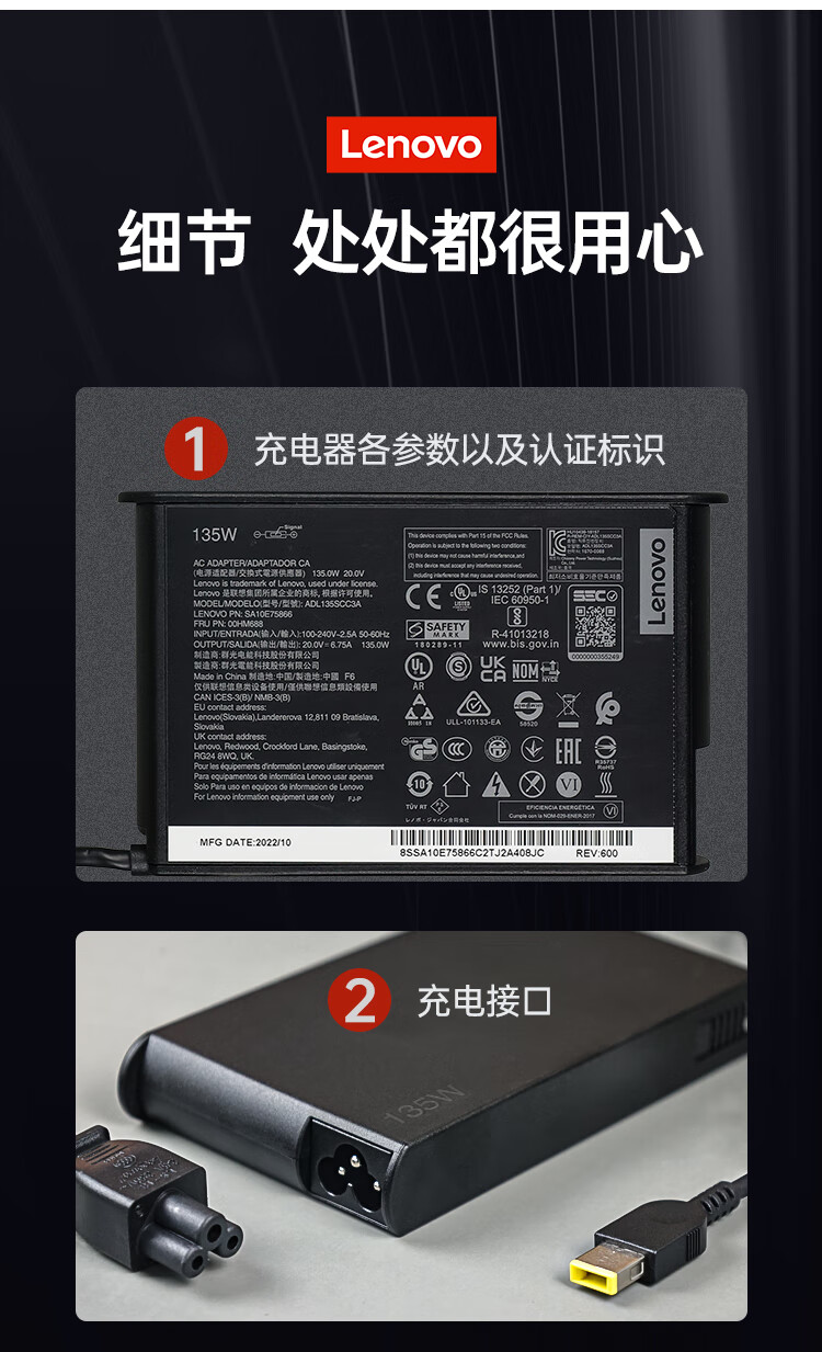 Lenovo original power adapter savior laptop charger computer power adapter power cord 135W square mouth thin section 20V 6.75A