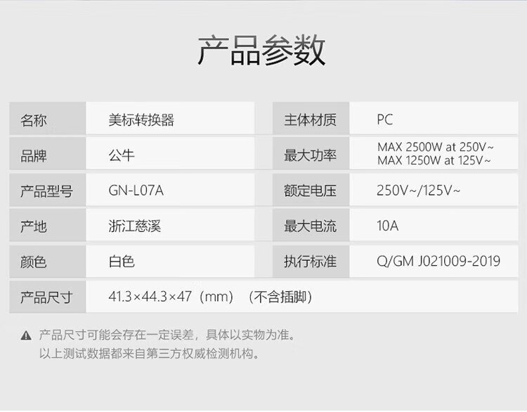 BULL Reisesteckdose/Stromwandler/Umwandlungsstecker nach amerikanischem Standard, geeignet für die Vereinigten Staaten, Kanada, Japan und andere Länder und Teile Chinas ohne Schalter GN-L07A