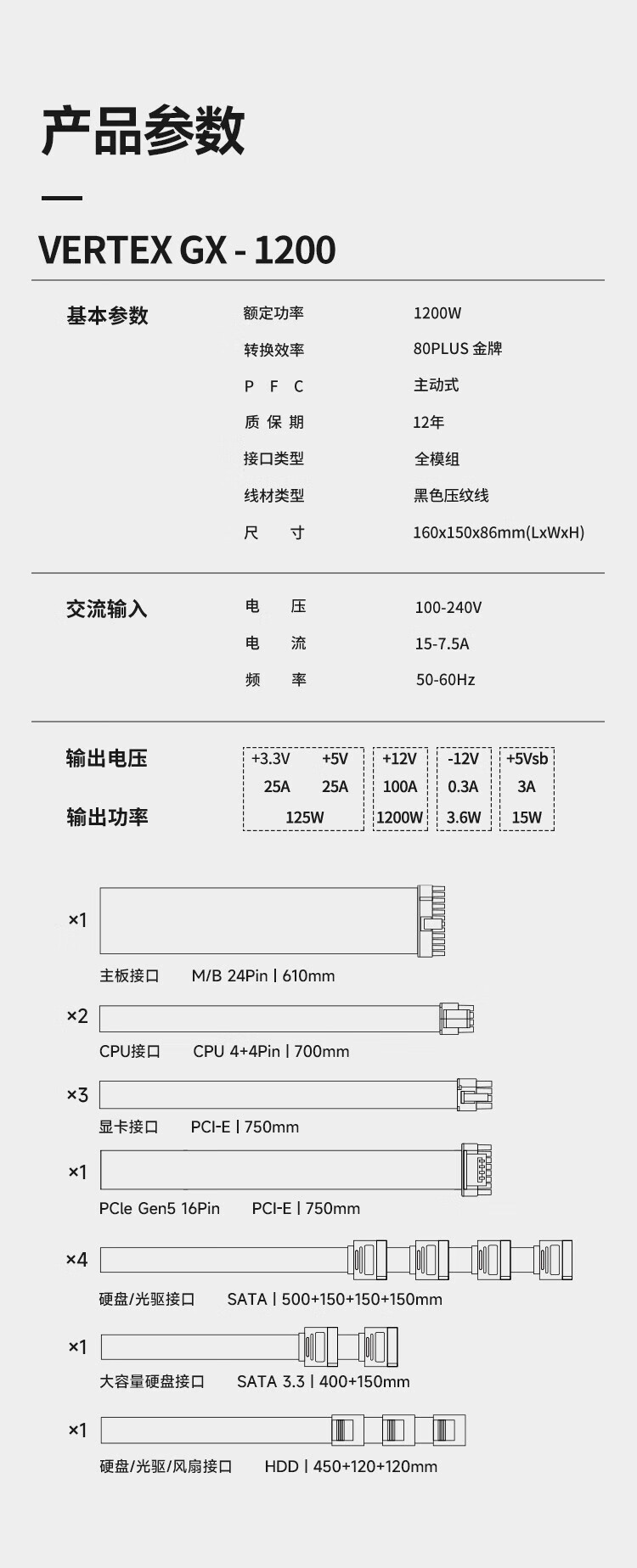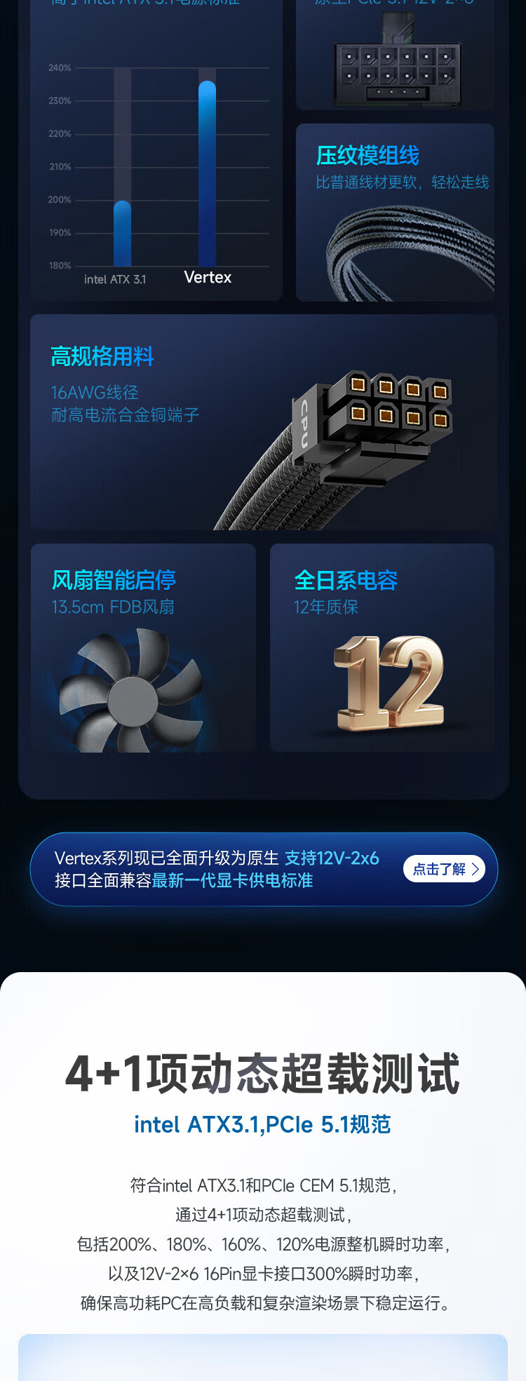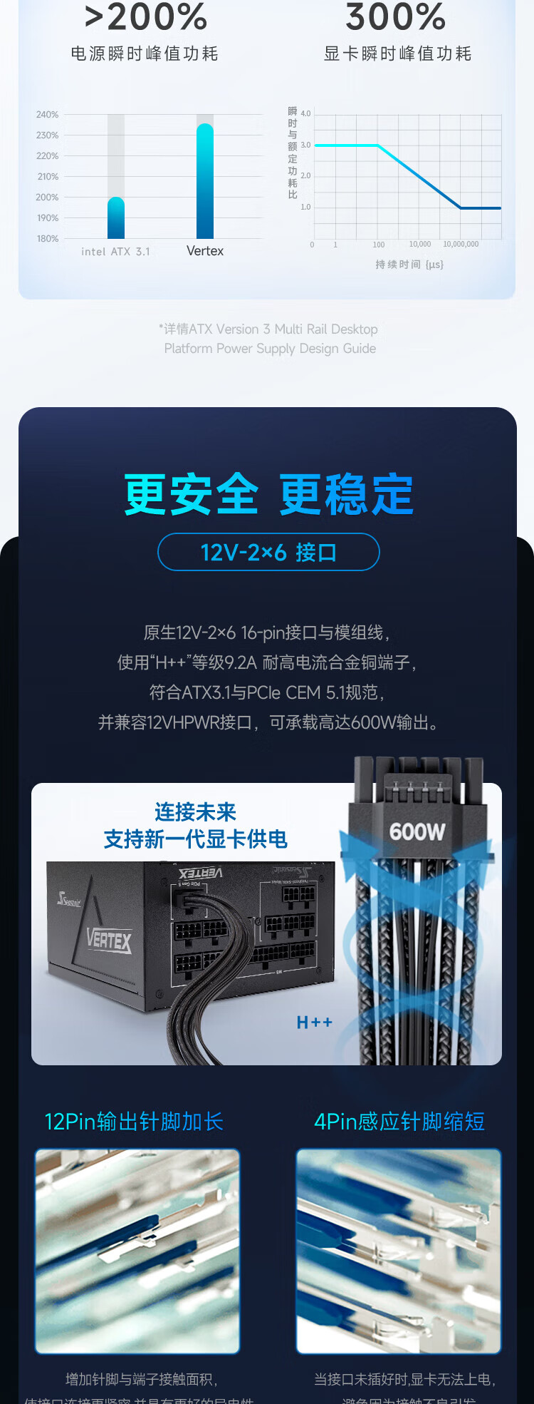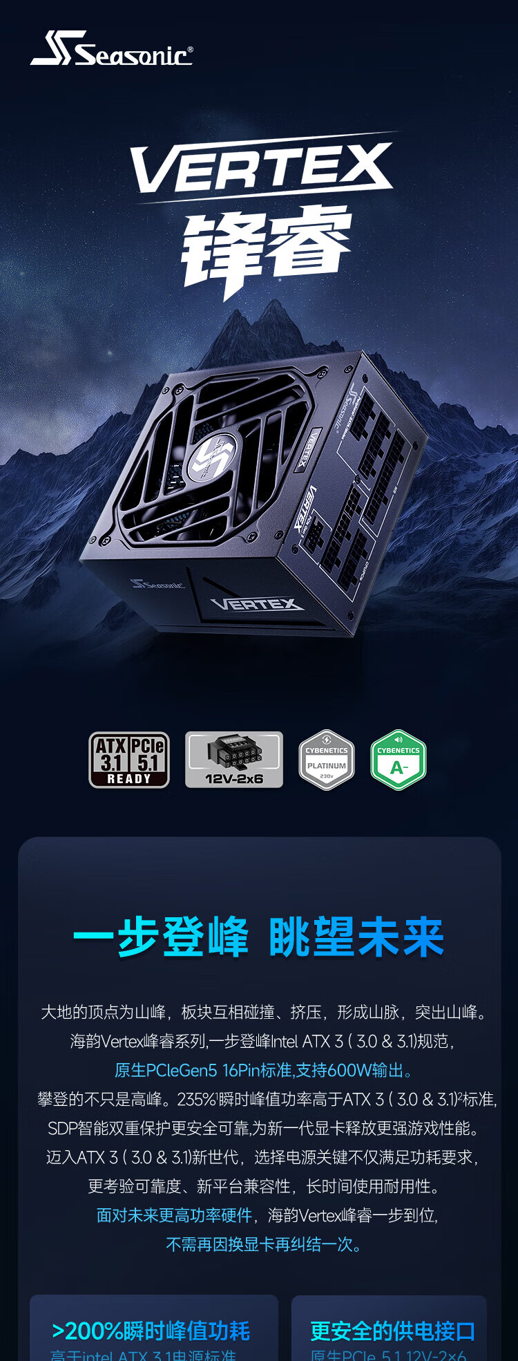 SEASONIC 1200W Goldmedaille VERTEX Computer-Netzteil ATX3.1/PCIe5.1/12V-2x6 unterstützt 5090/9070 Grafikkarten