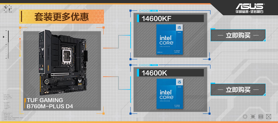 华硕TUF GAMING B760M-PLUS D4重炮手主板 支持 CPU 13700K/13600KF/13400F(Intel B760/LGA 1700)