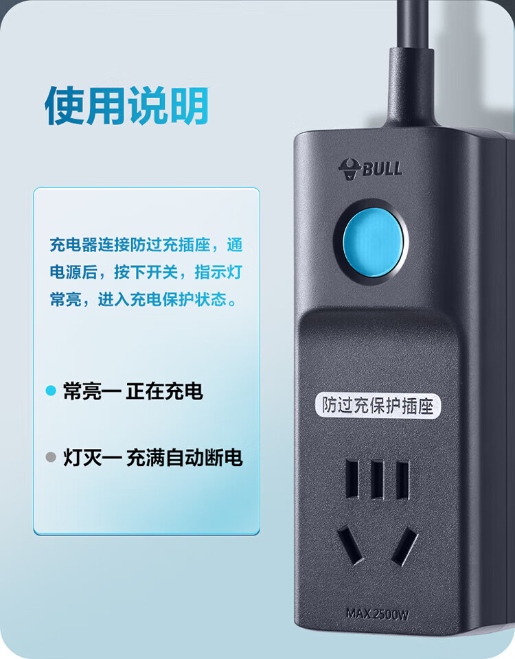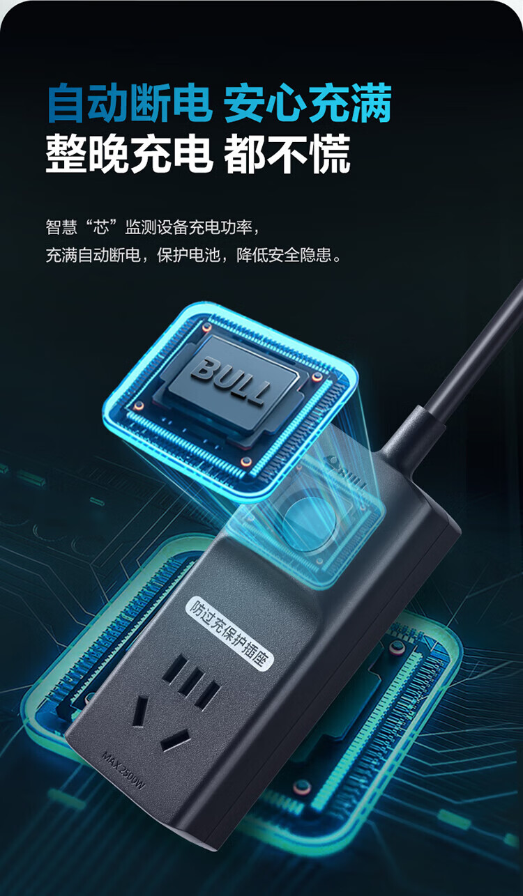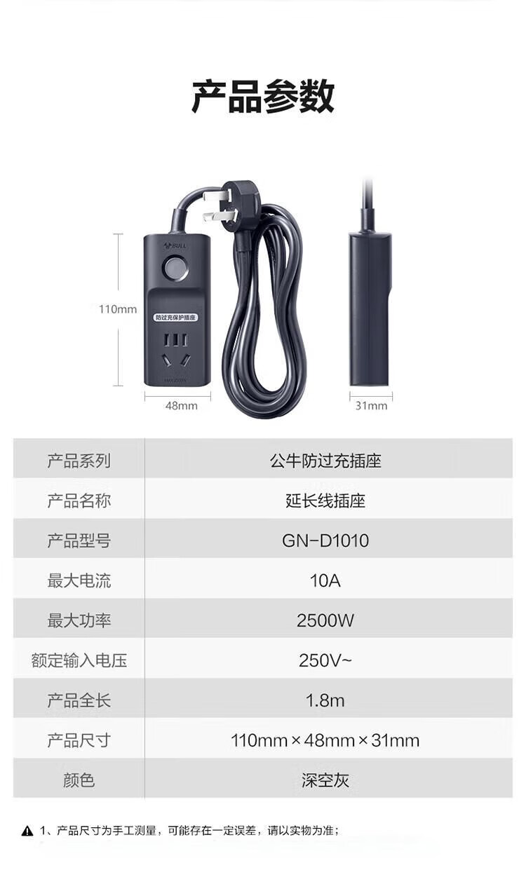 BULL Anti-Überladeschutz-Steckdose, automatische Abschaltung, Steckdose/Steckdosenplatine/Steckdosenleiste/Steckdosenleiste/Steckdosenleiste, 1 Position, GN-D1010, 1,8 Meter