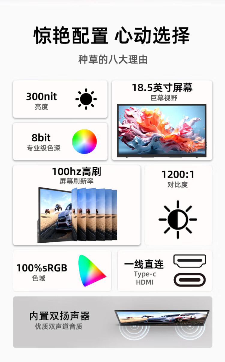 Eimio tragbarer Monitor 18,5 Zoll 100 Hz High Brush Display HDR Computer Notebook erweiterter Bildschirmschalter/PS4/5 mobiler externer Vollbild-E18U