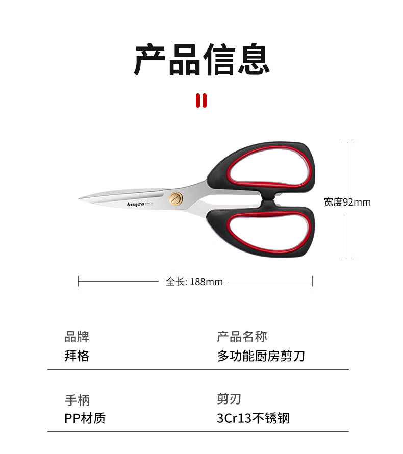 Bayco kitchen scissors, stainless steel kitchen scissors, barbecue scissors, chicken bone scissors, multi-functional household scissors BD7811