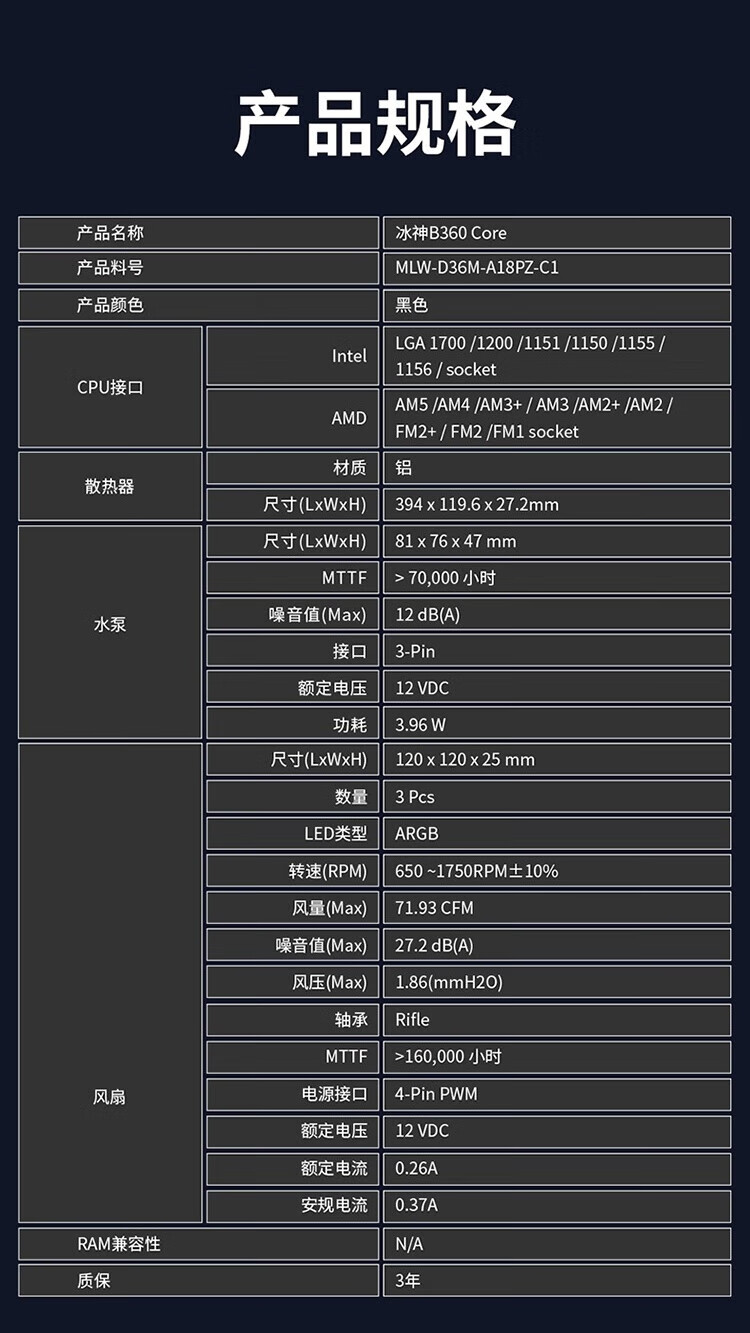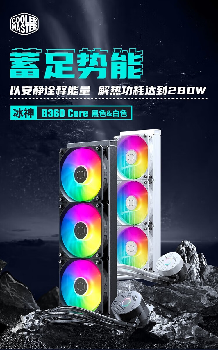 CoolerMaster B360Core water cooling radiator multi-platform buckle LGA1700 enlarged cold head copper bottom ARGB performance fan TDP280W