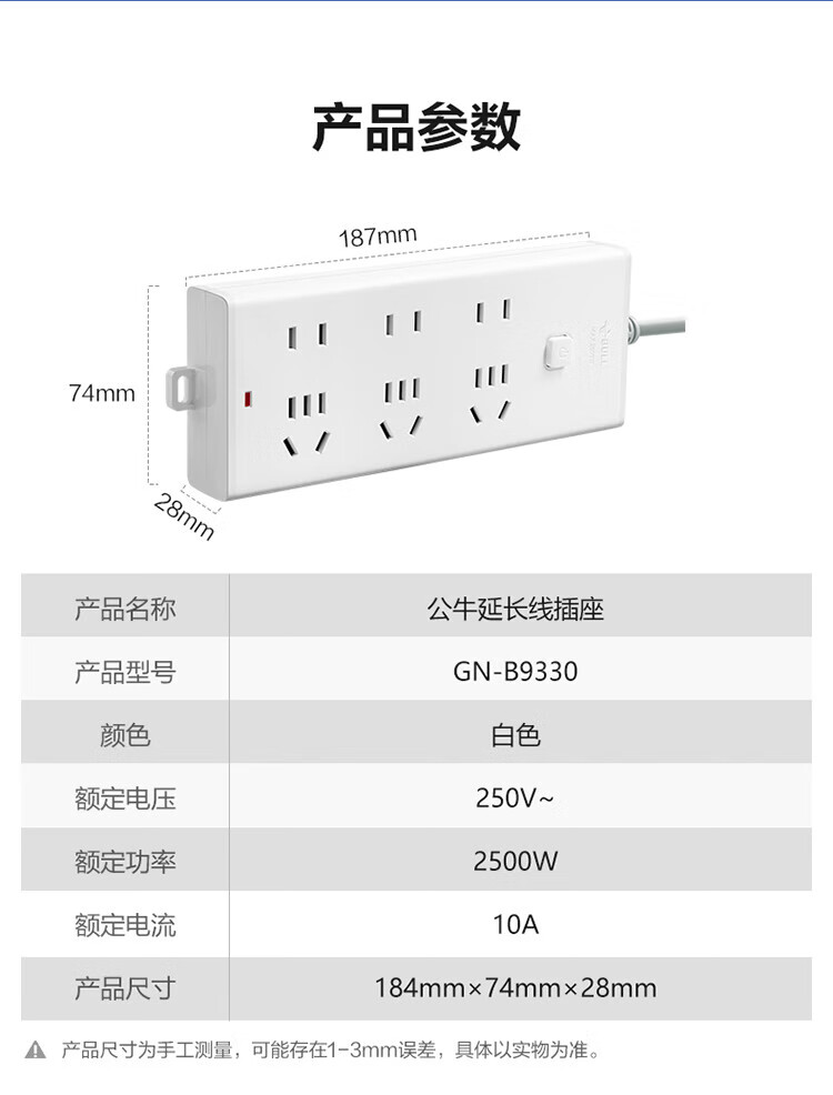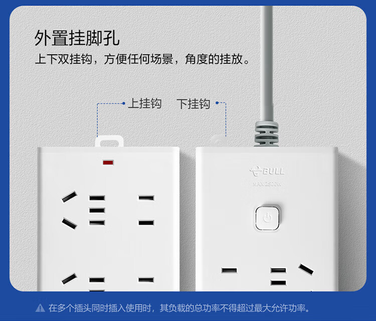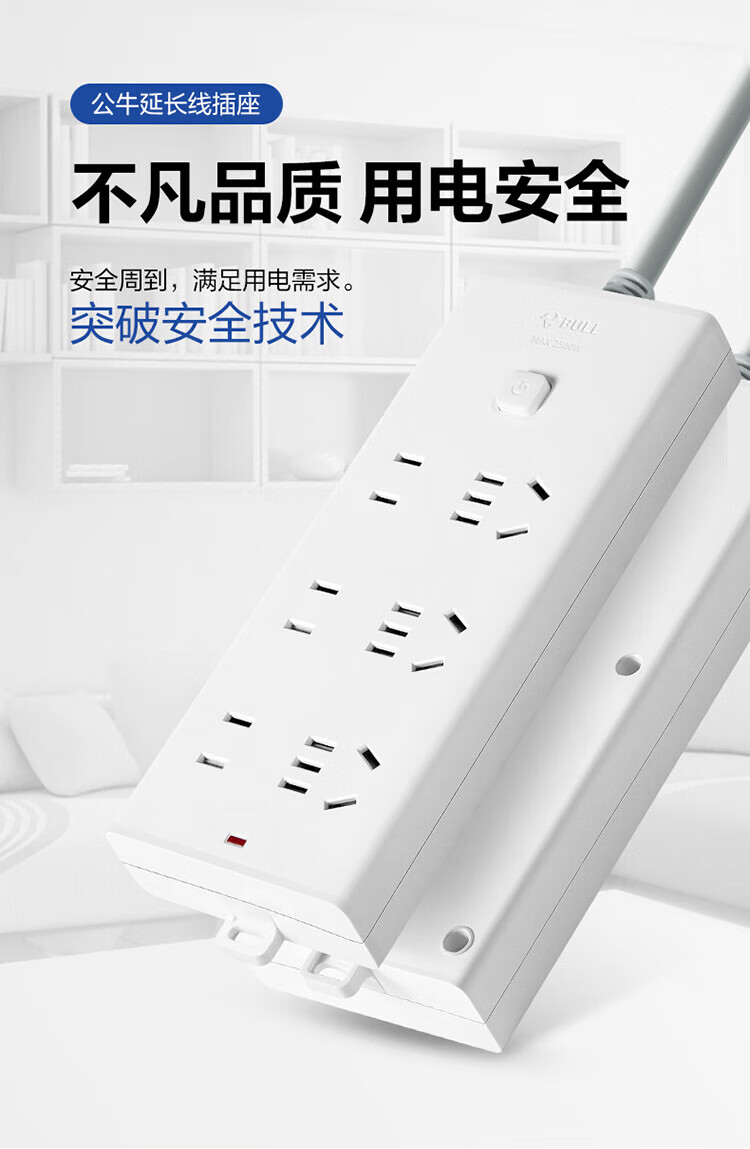 公牛(BULL)插座/插线板/插排/排插/接线板/拖线板 6位总控开关全长1.8米