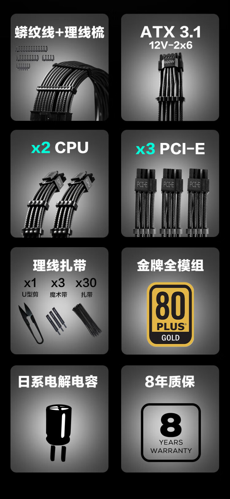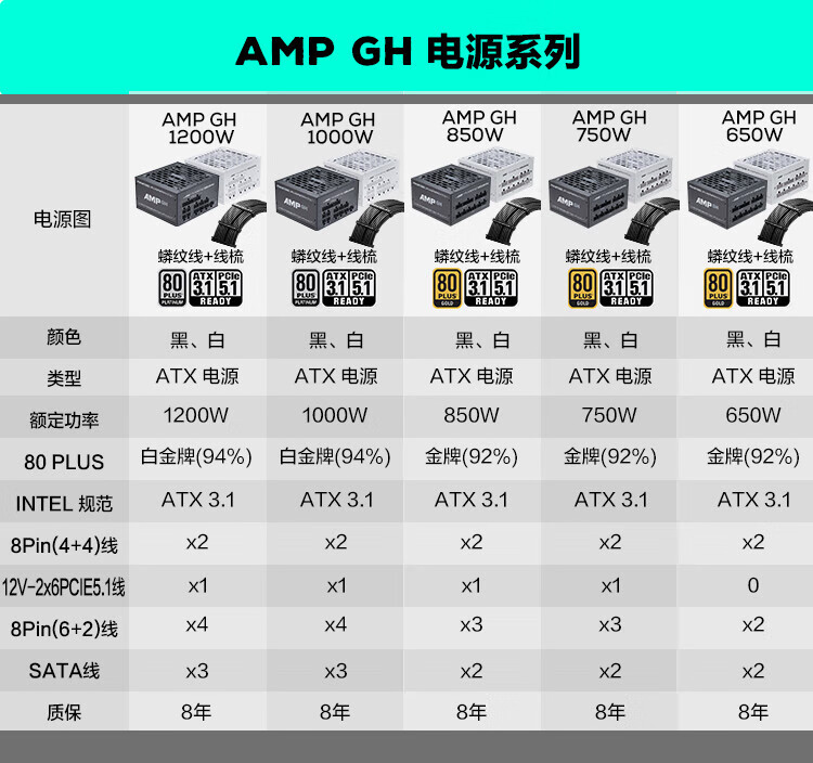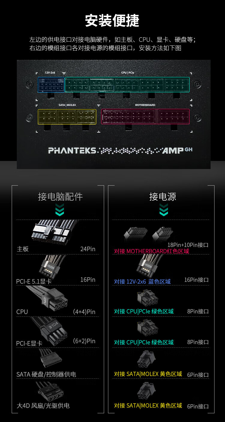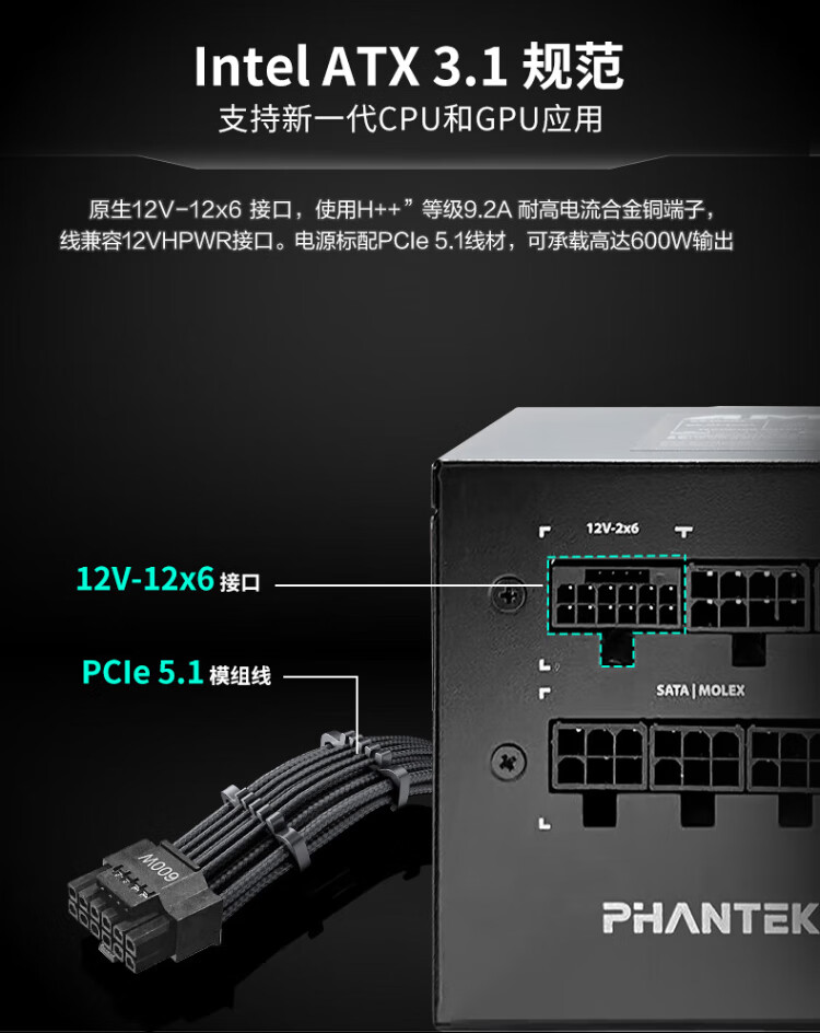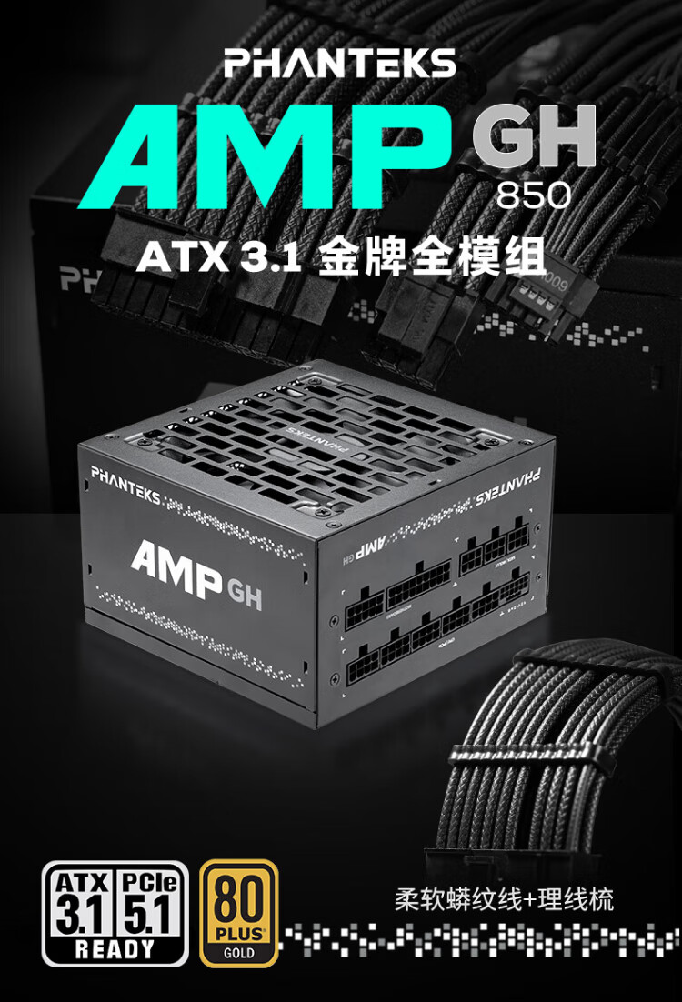 PHANTEKS AMP GH Goldmedaille 850W Vollmodul-Computergehäuse-Netzteil (ATX3.1/PCIe5.1/12V-2x6/japanischer Kondensator/5080-Grafikkarte)