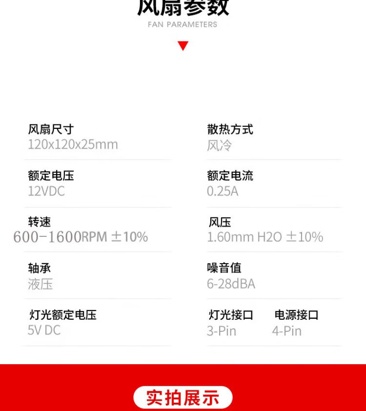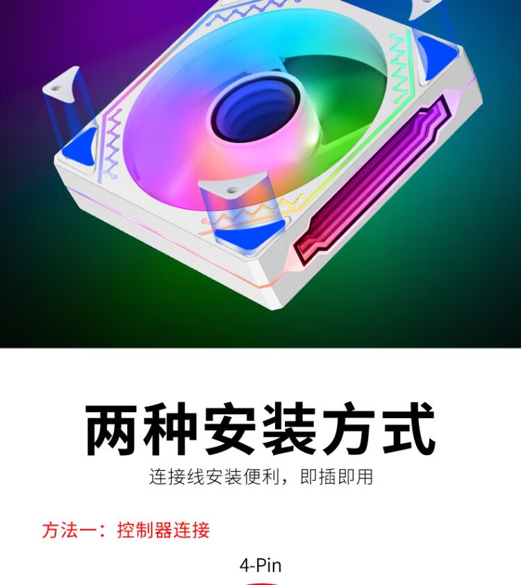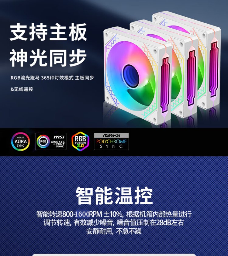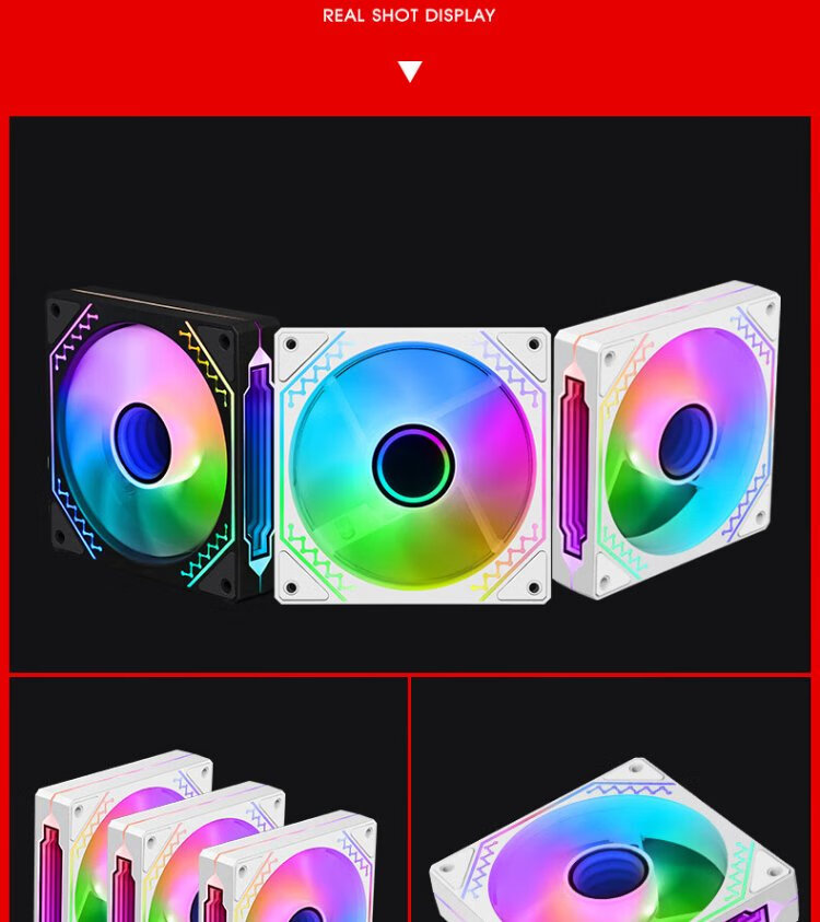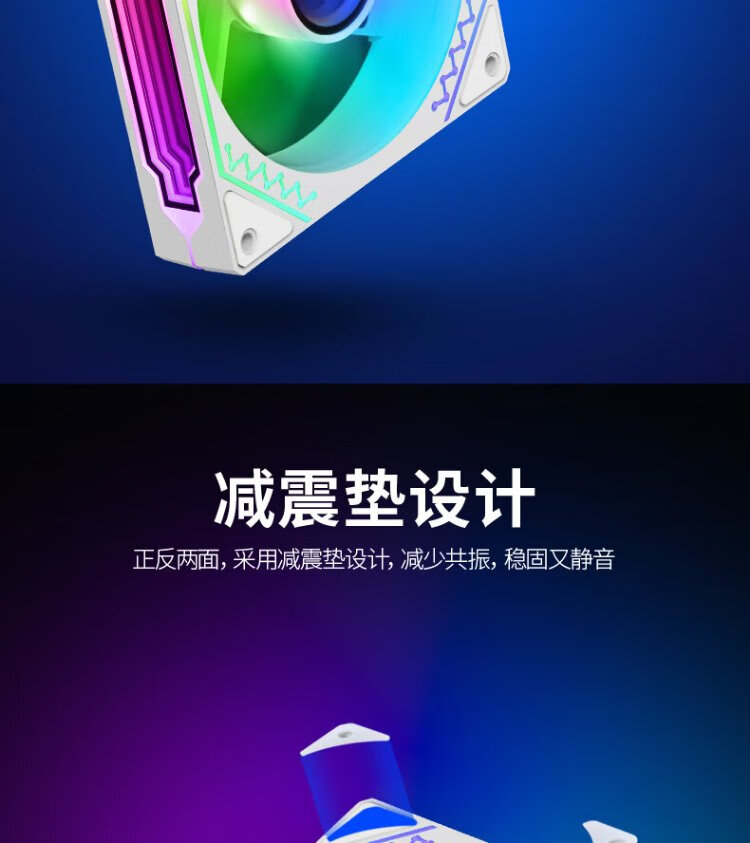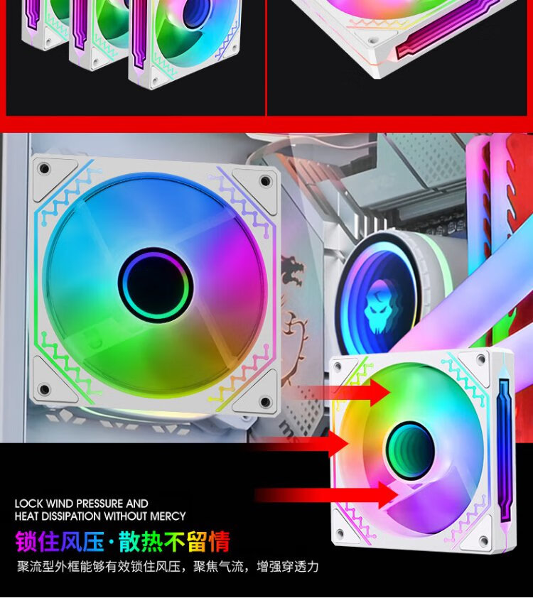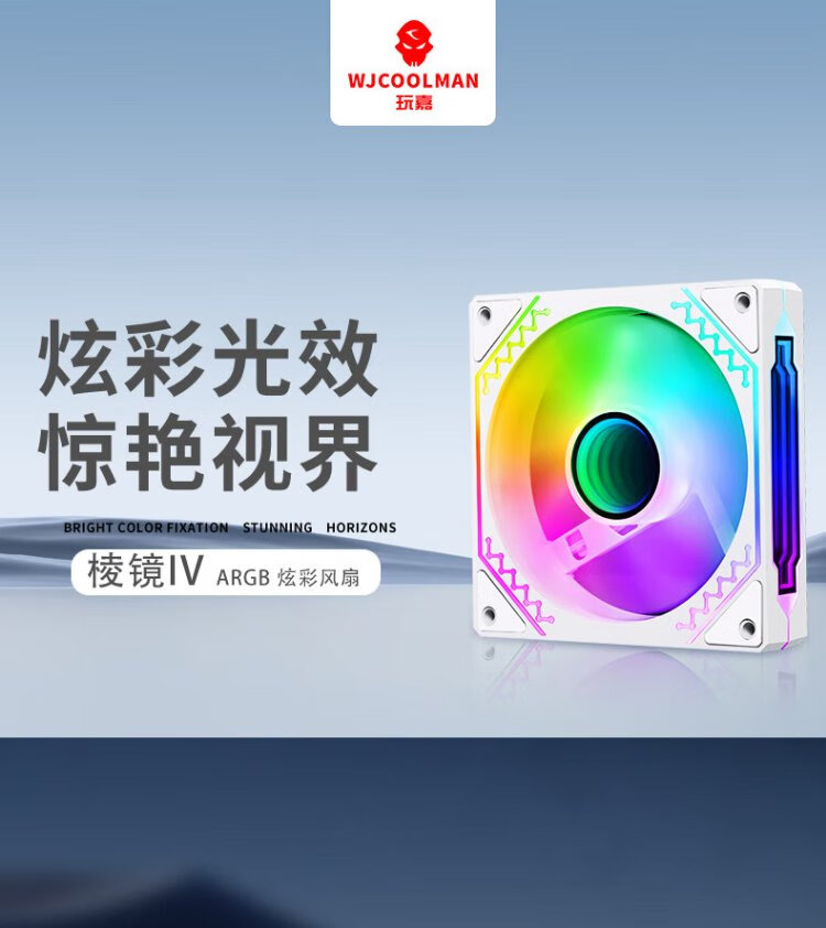玩嘉棱镜四代ARGB白色反向风扇 机箱散热12CM风扇神光同步5V3针ARGB PWM温控调速
