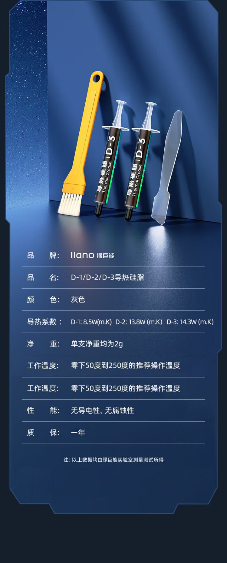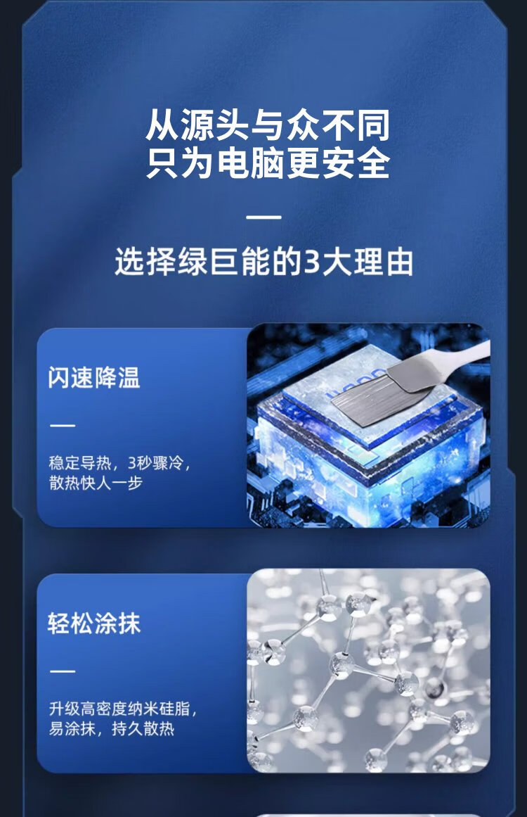 绿巨能(llano)硅脂CPU散热硅脂 导热凝胶芯片主机笔记本电脑显卡散热液态硅胶膏2g装16.8(W/m·K)系数