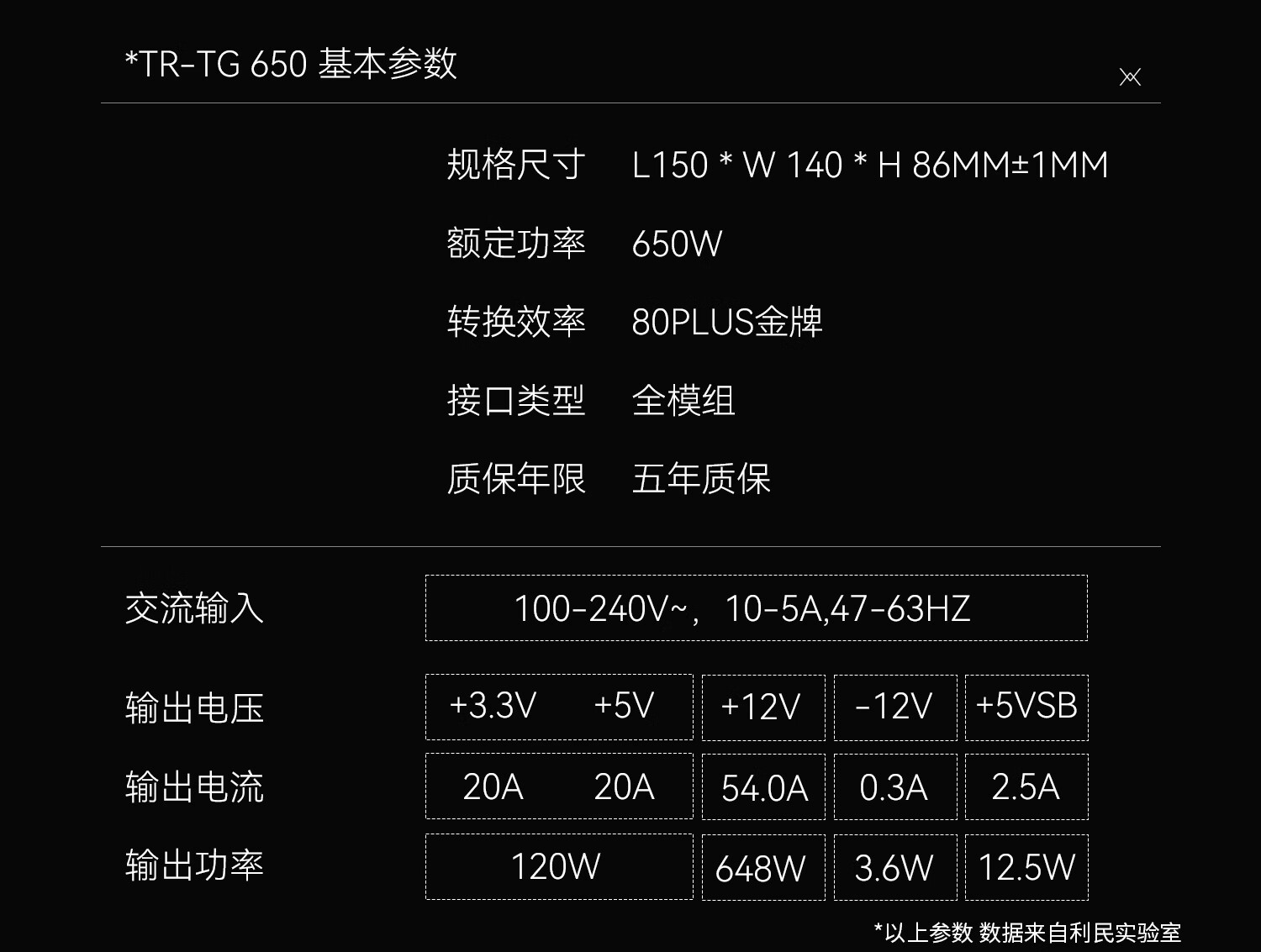 Thermalright (limin) rated 650W TR-TG650 gold medal full module, all Japanese electrolytic capacitors, 14CM small body, ATX3.0 power supply, 80PLUS gold medal certification