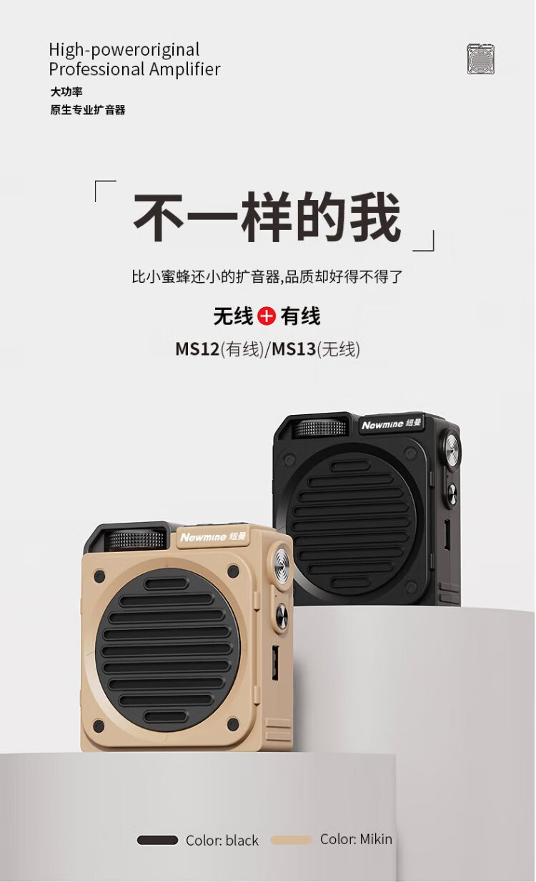 纽曼MS12小蜜蜂扩音器教师专用喇叭导游腰挂蓝牙音箱迷你便携式促销讲课教学喊话器大音量 黑色
