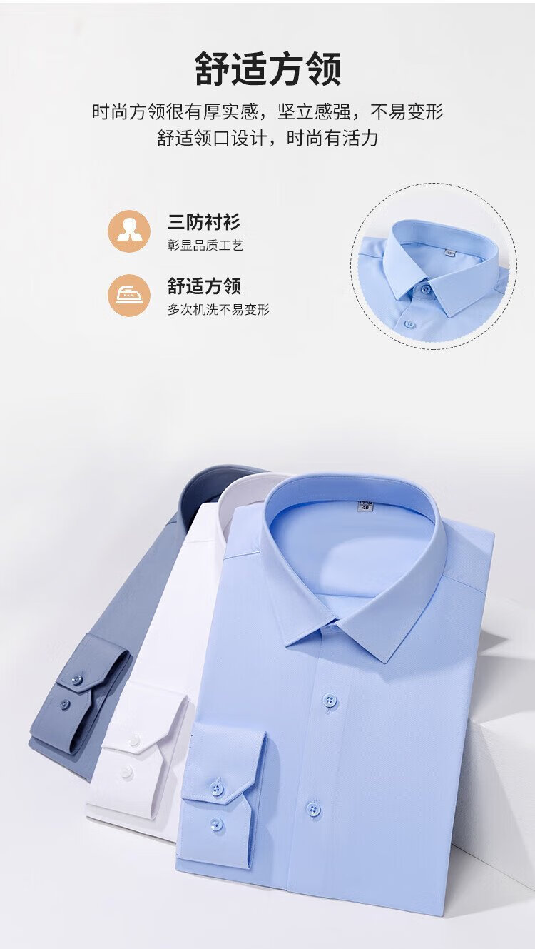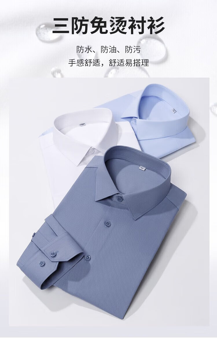 ROMON waterproof, oil-proof and stain-proof four-season long-sleeved shirt for men, formal business, versatile, three-proof shirt for men, white 41