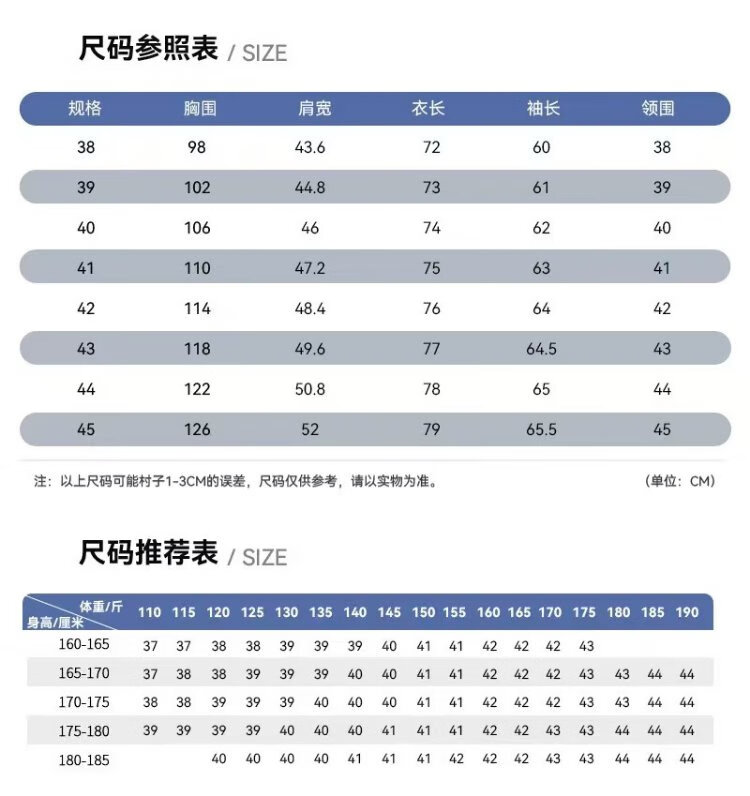 China (cm) 165 / 88-90 170 / 96-98 175 / 108-110 180 / 118-122 185 / 126-130