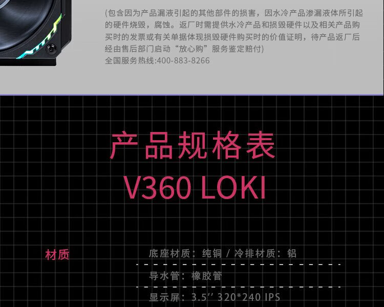 Valkyrie (VALKYRIE) V360 LOKI VK integrated CPU water cooling radiator 3.5-inch IPS LCD screen LCP fan blade fan supports LGA1700