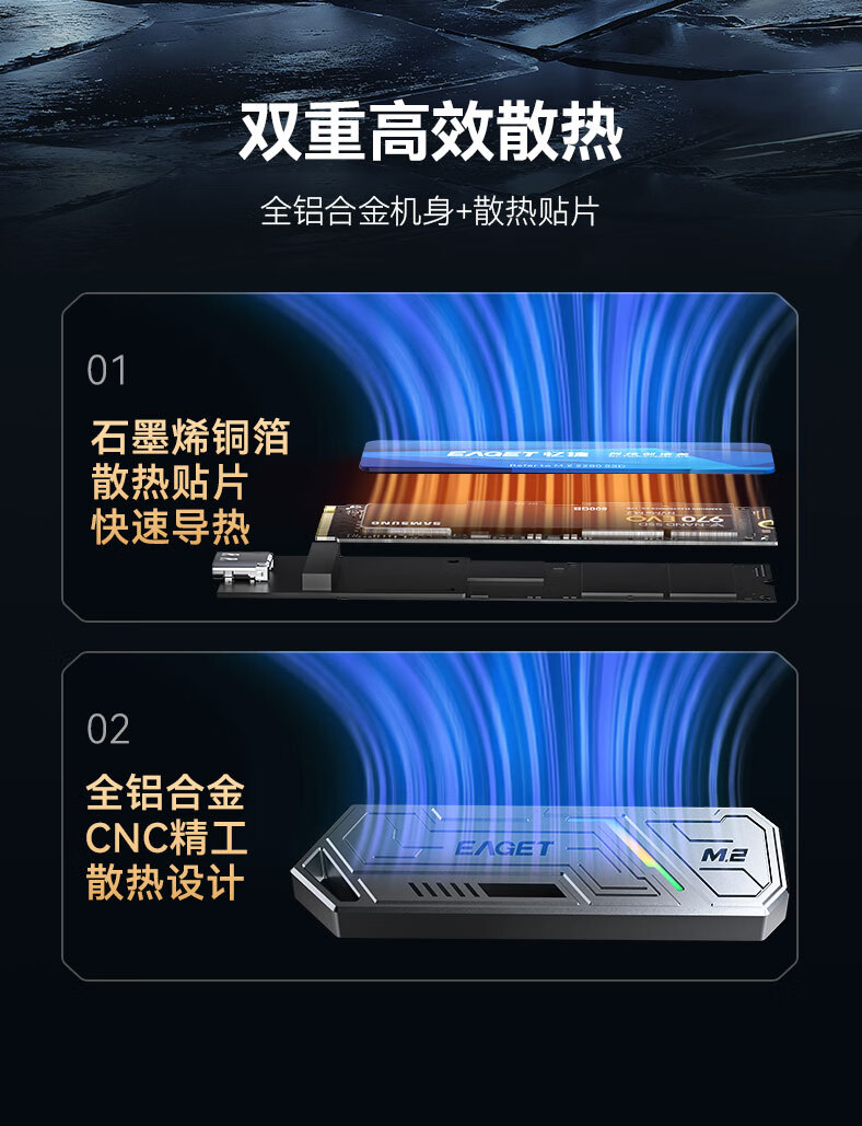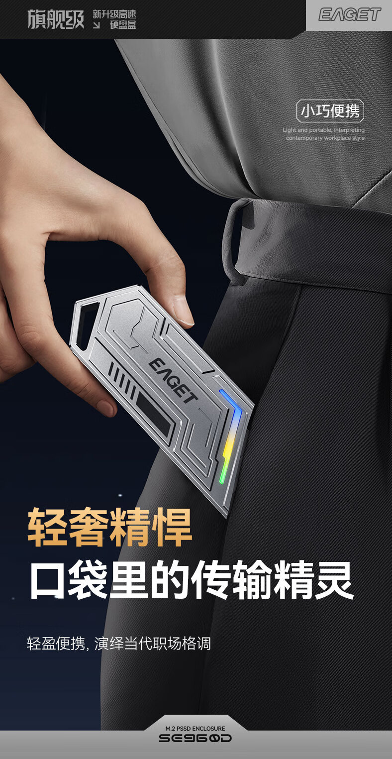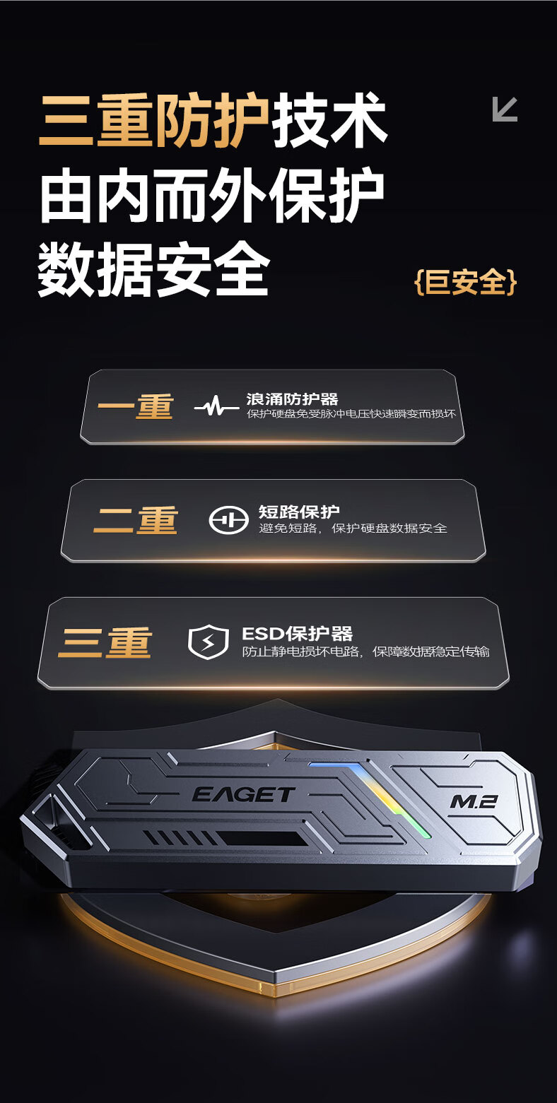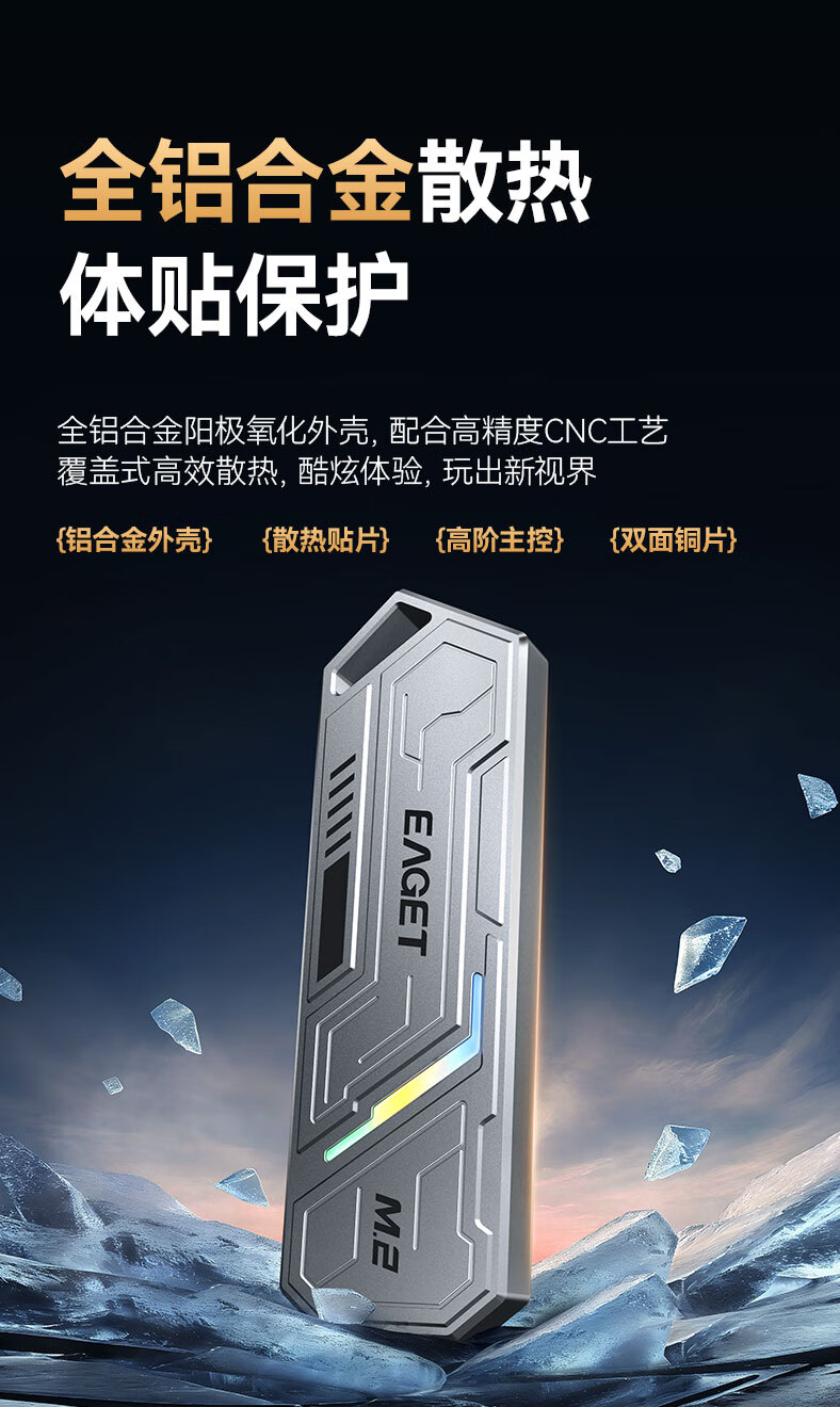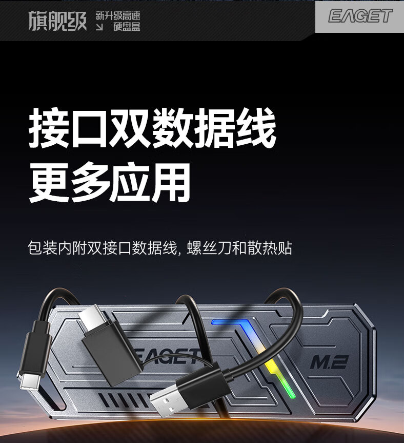 忆捷(EAGET)M.2 NVME/SATA双协议移动固态硬盘盒USB3.2/Type-c高速接口SSD固态硬盘外置盒笔记本台式通用