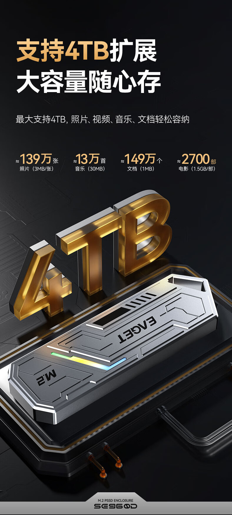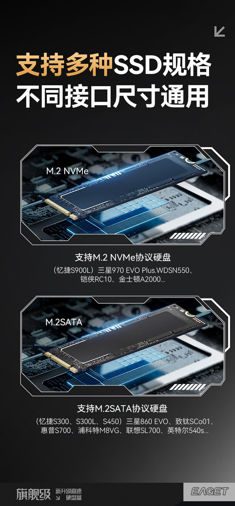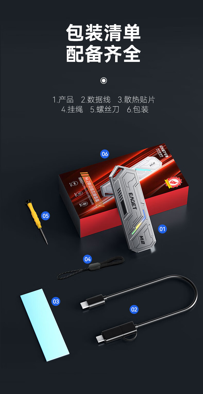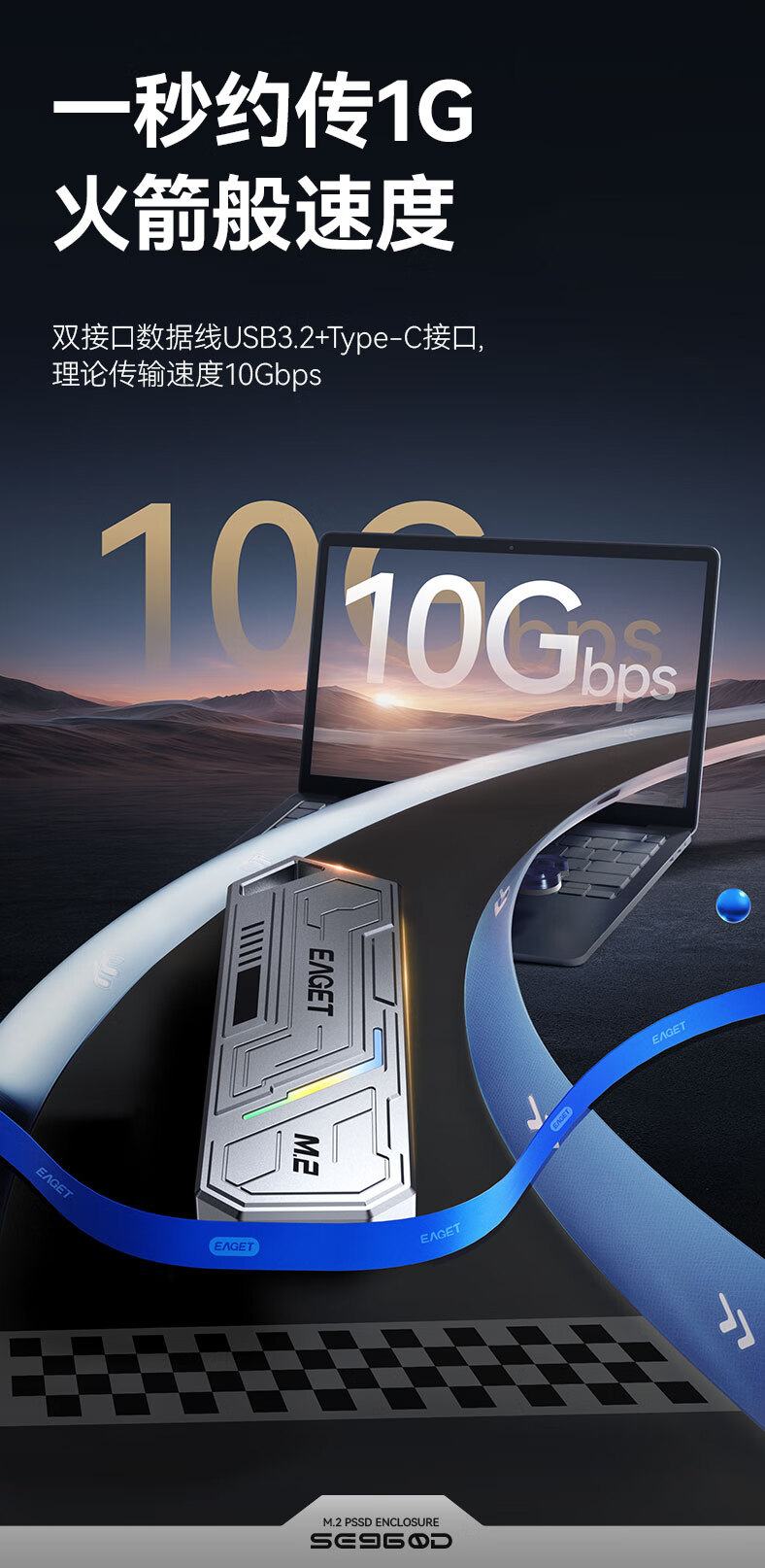 忆捷(EAGET)M.2 NVME/SATA双协议移动固态硬盘盒USB3.2/Type-c高速接口SSD固态硬盘外置盒笔记本台式通用
