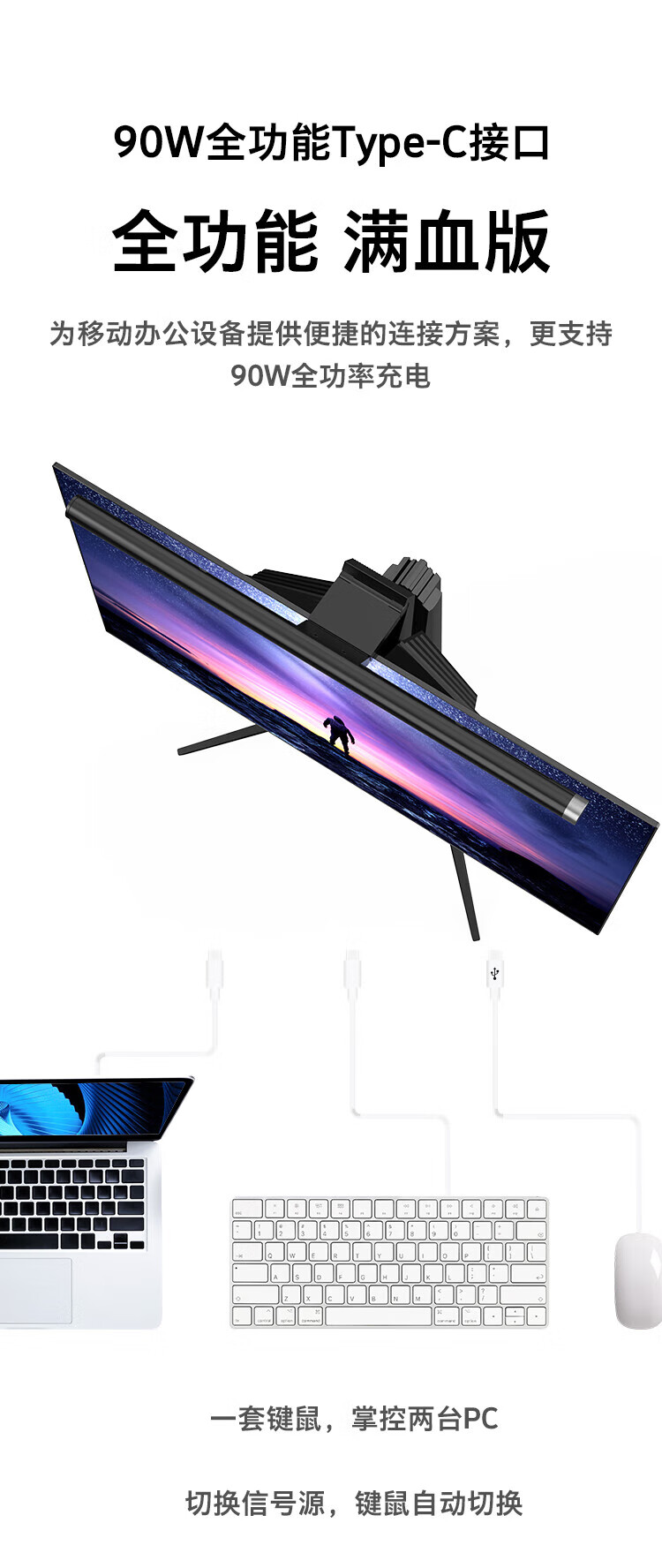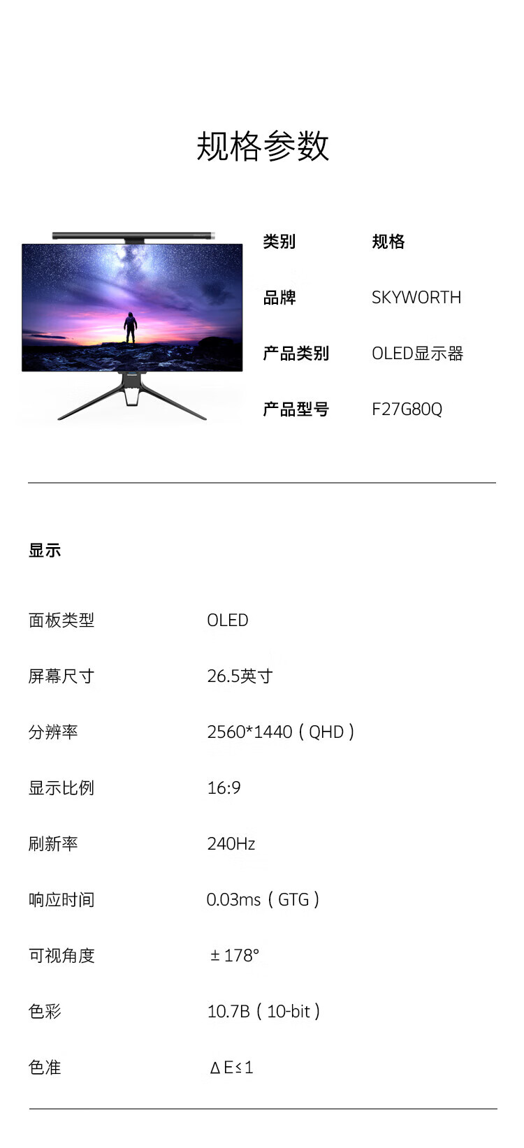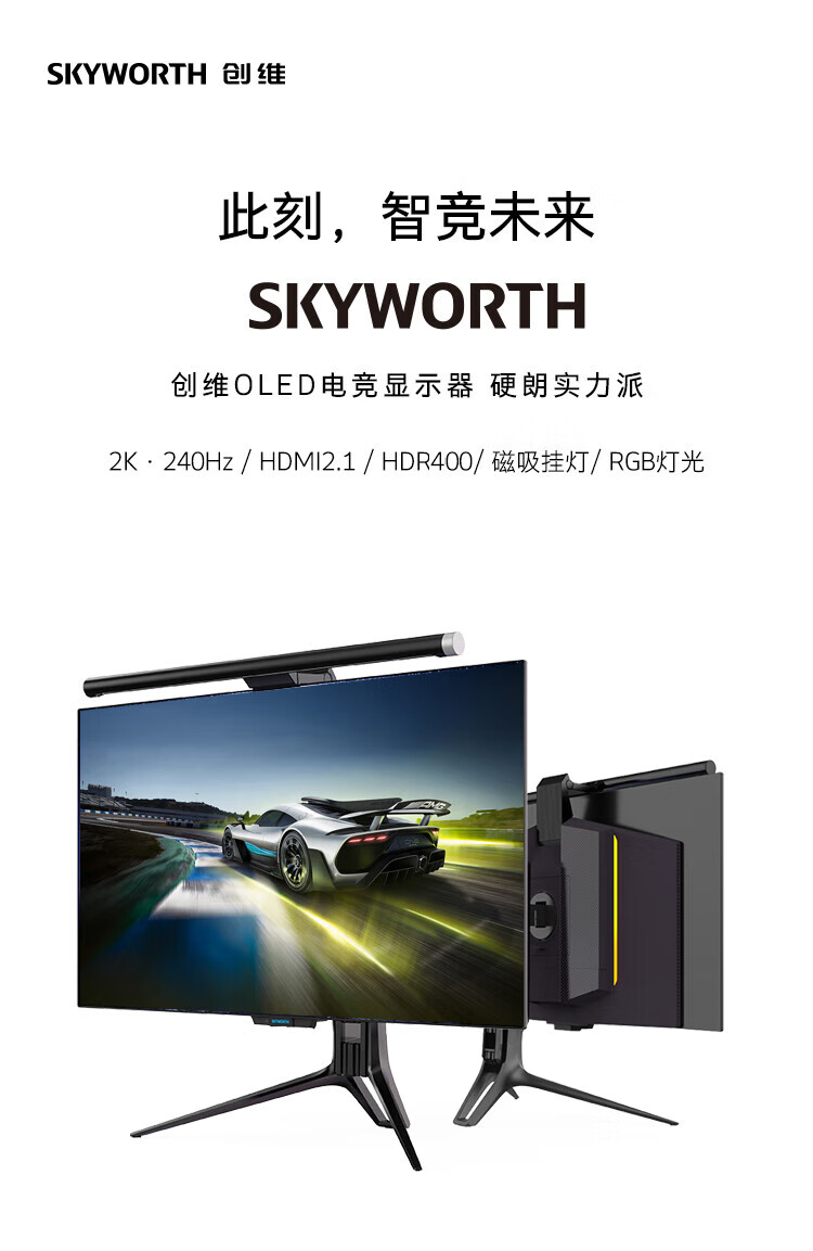 创维 26.5英寸 OLED 电竞显示器 2K 240Hz 无线投屏 90W Type-C 杜比认证 双系统 标配挂灯 F27G80Q