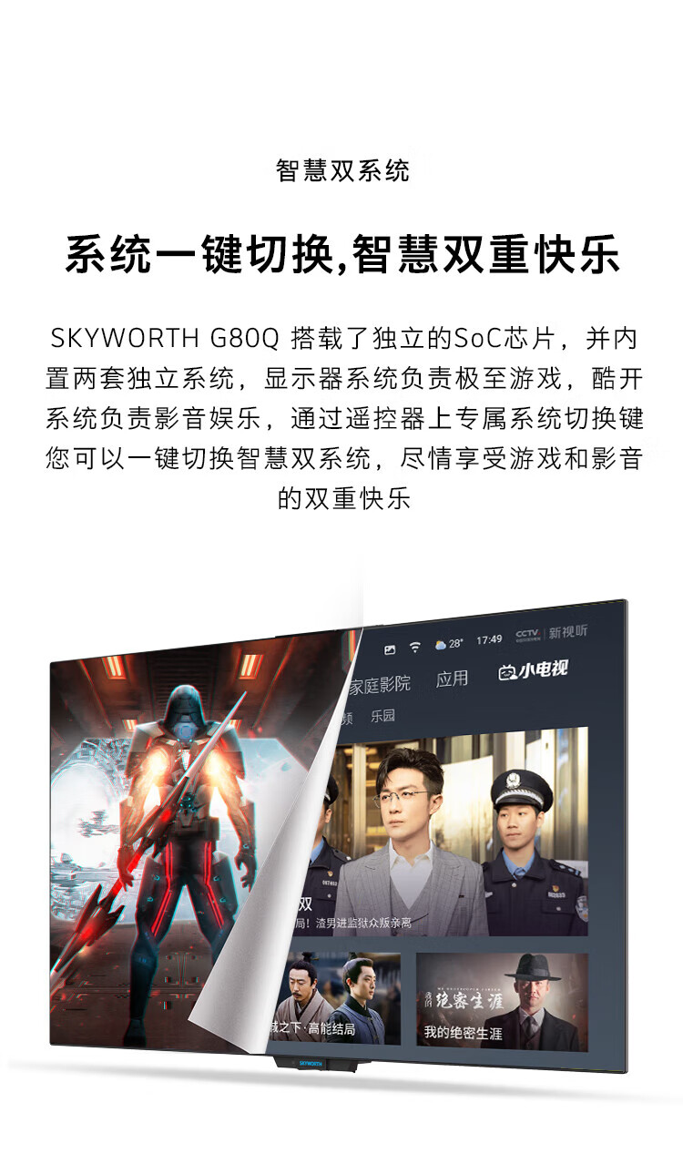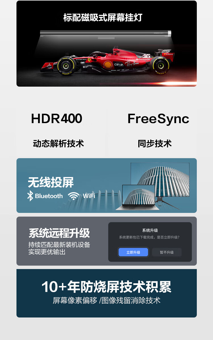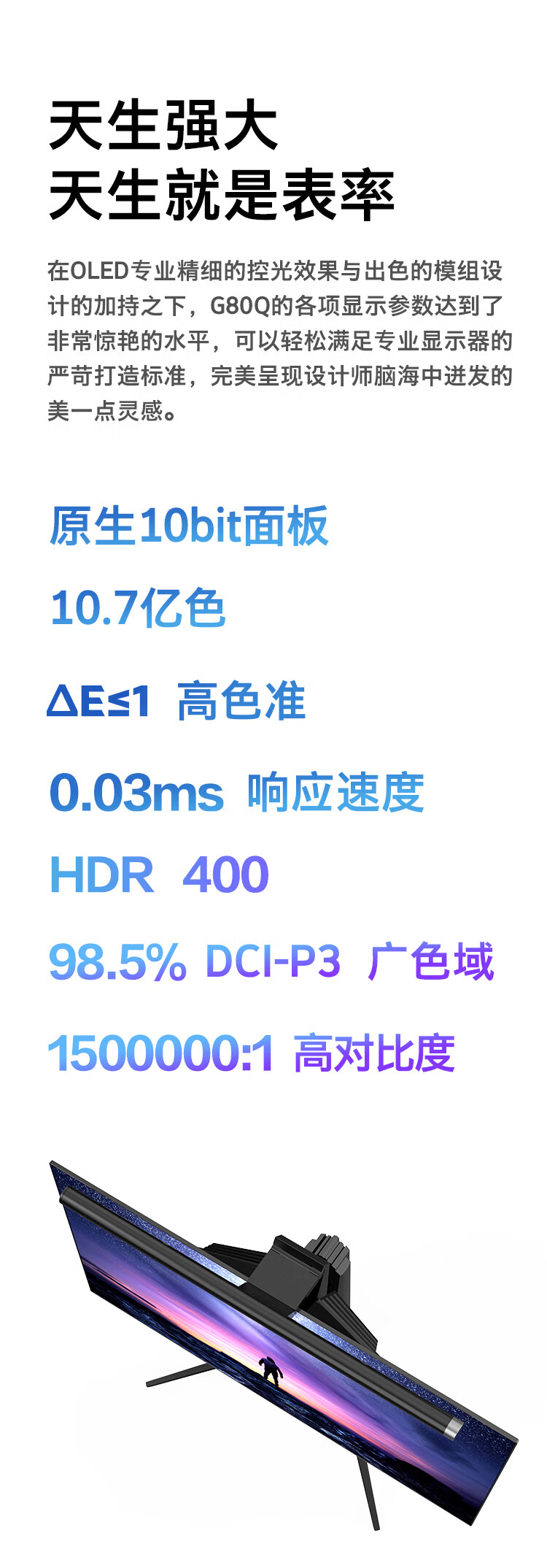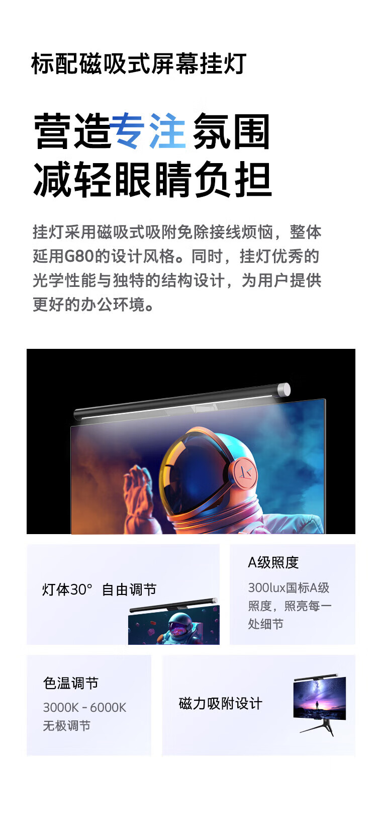 创维 26.5英寸 OLED 电竞显示器 2K 240Hz 无线投屏 90W Type-C 杜比认证 双系统 标配挂灯 F27G80Q
