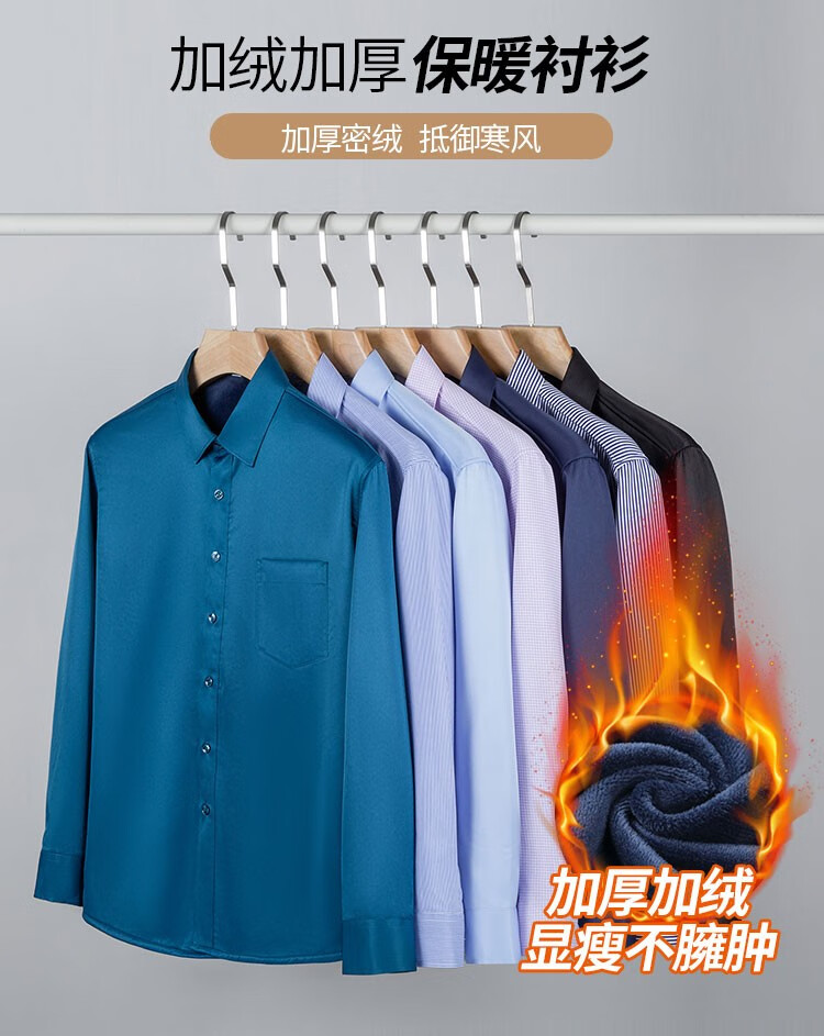 Li Meng velvet thickened warm shirt men's business casual warm shirt autumn and winter middle-aged bottoming shirt white 42