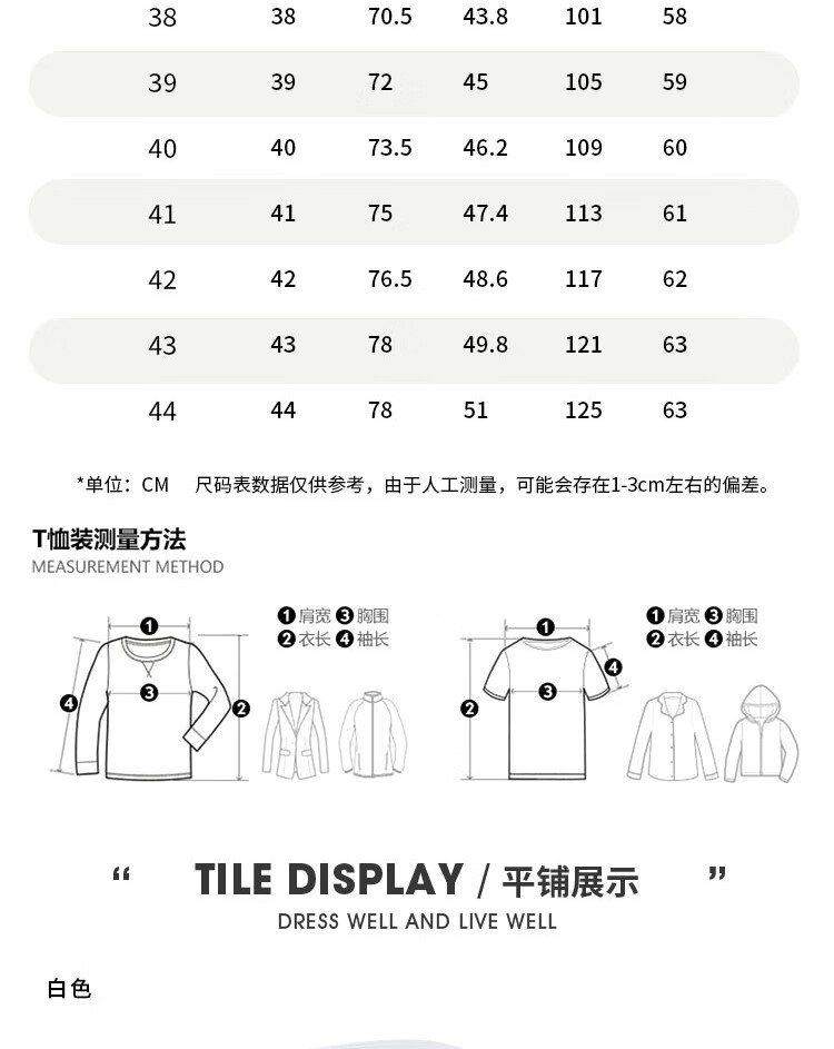 Size (cm) 42 44 46 48 50