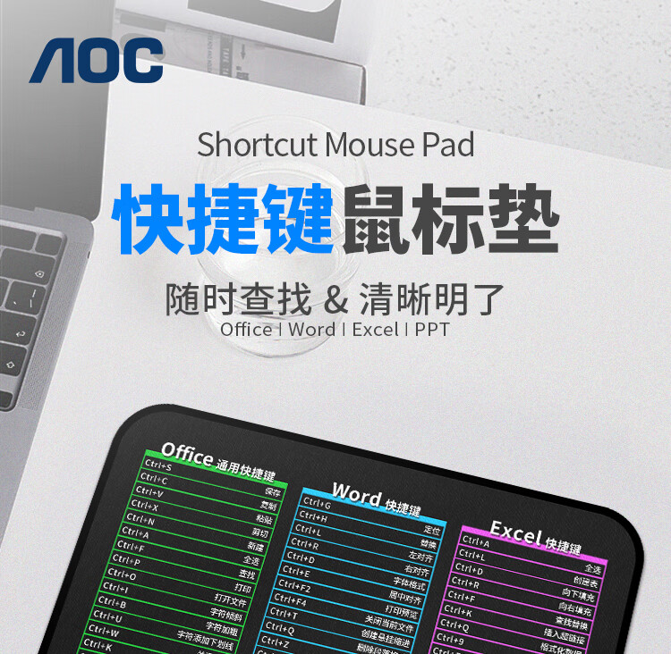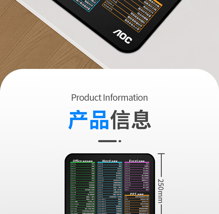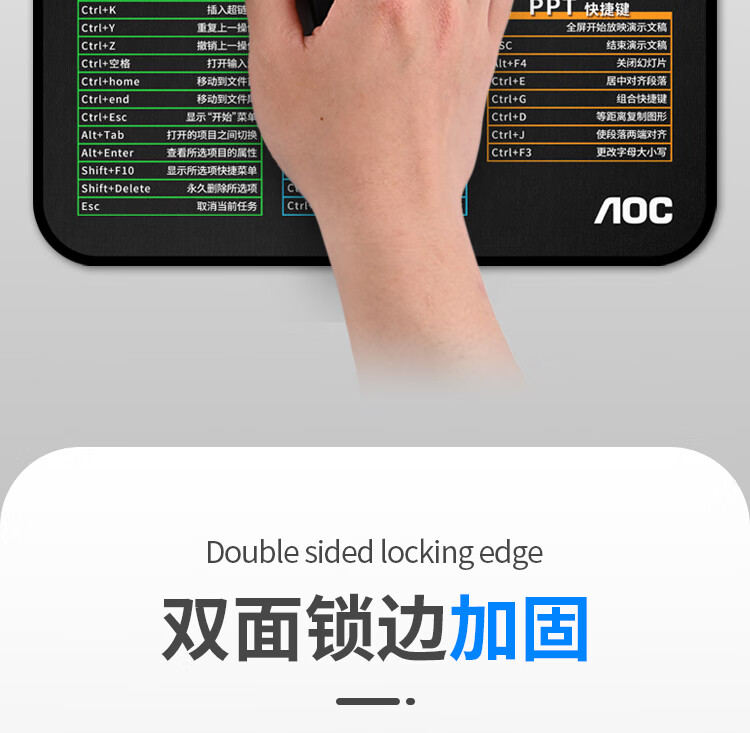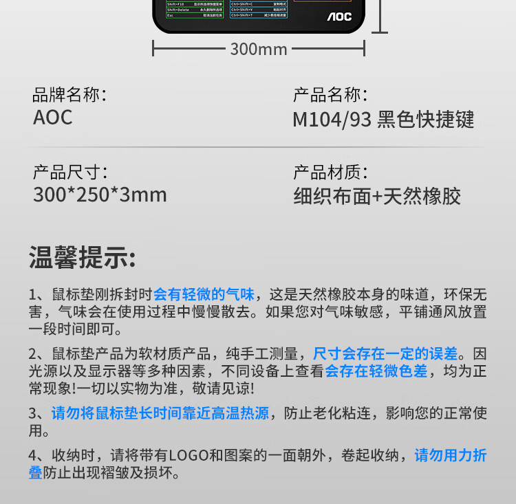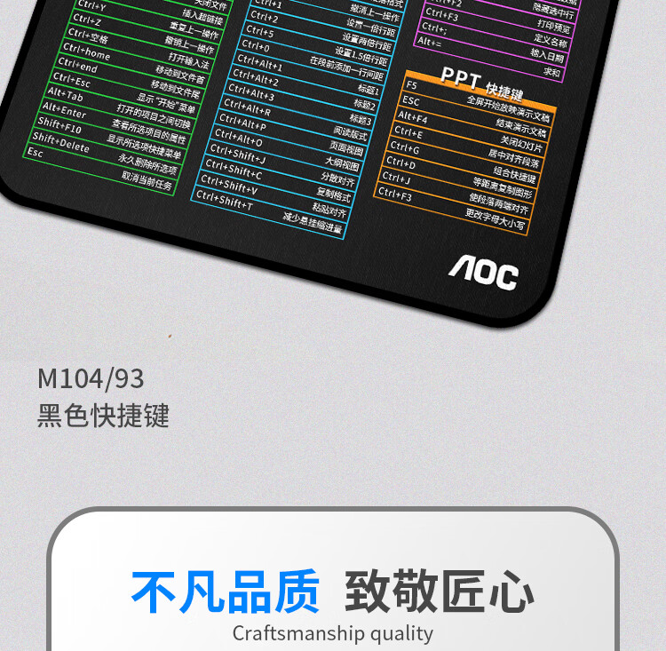 AOC full attribute series e-sports game mouse pad small size 300*250*3mm thickened edge office keyboard computer desk pad M104/93 shortcut key black