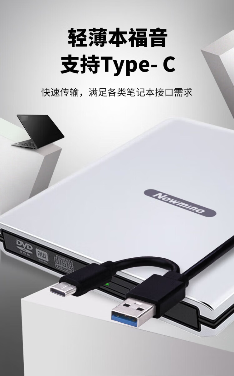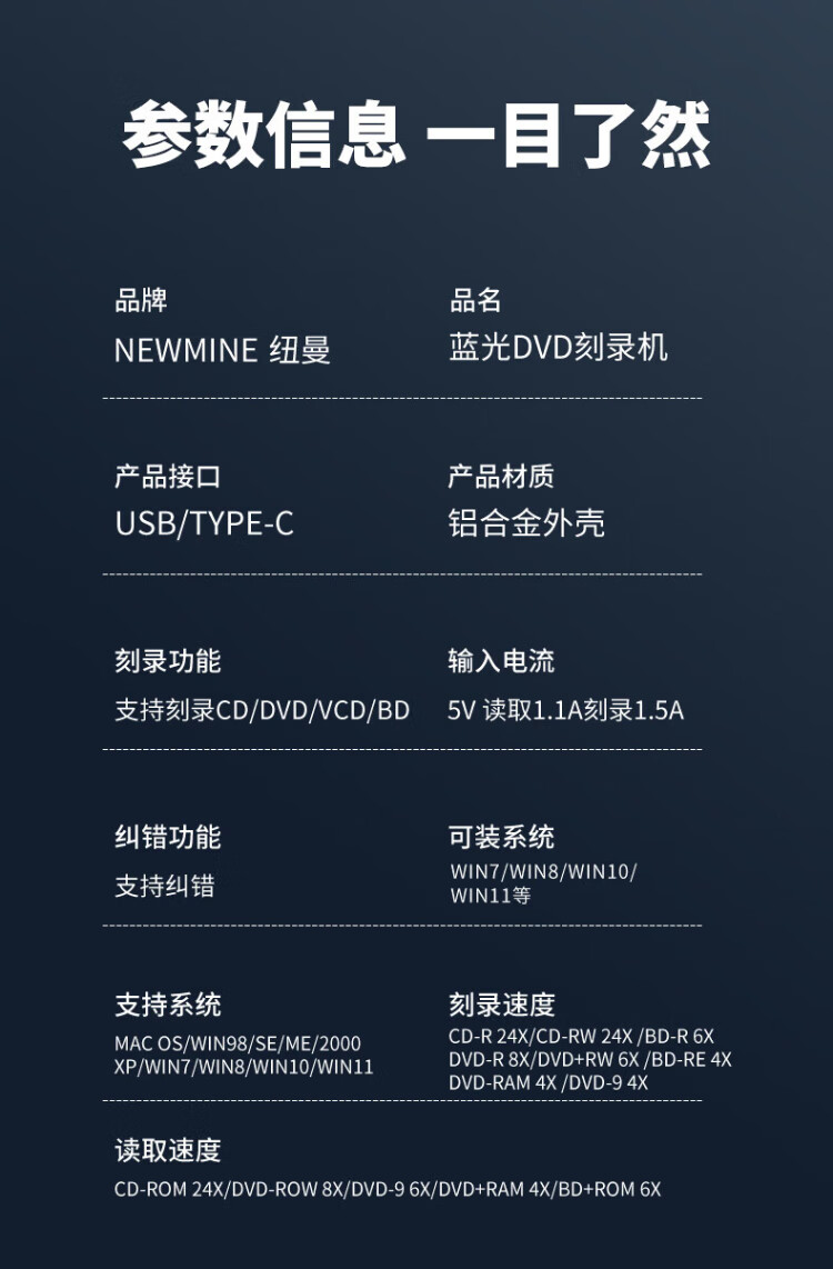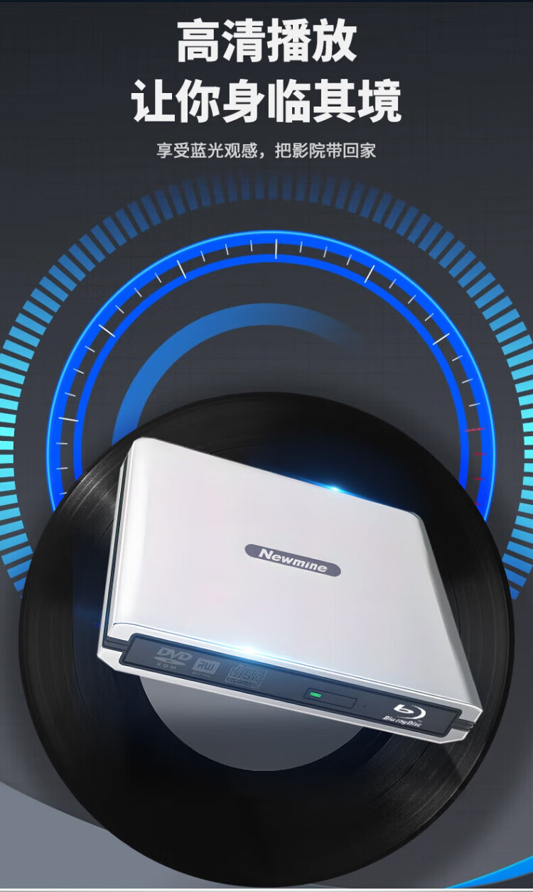 纽曼(Newmine)DRW-801 外置蓝光USB3.0光驱高速外接移动DVD刻录机支持3D蓝光播放机蓝光dvd播放电脑通用