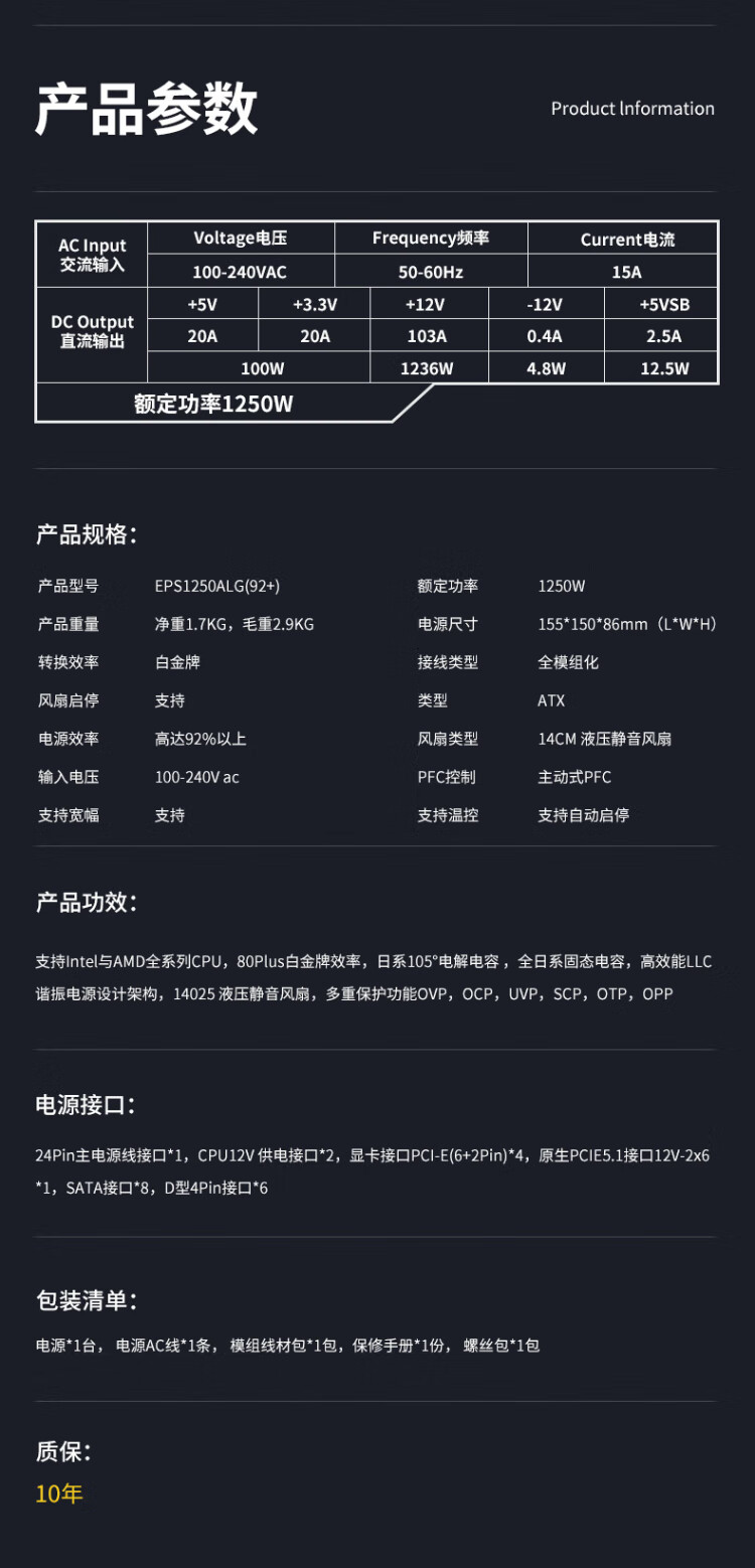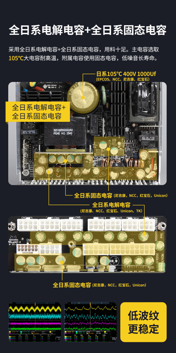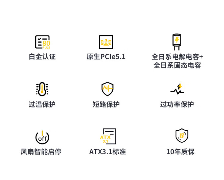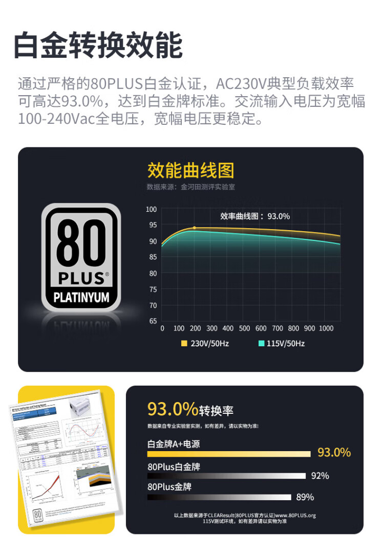 Golden Field Platinum A+1250W reinweiße Version des ATX3.1-Computer-Netzteils mit Platin-Zertifizierung/vollständiger japanischer Kondensator/12V2*6/10-Jahres-Ersatz/stabilisierte Spannung 5090/weich geprägter Draht